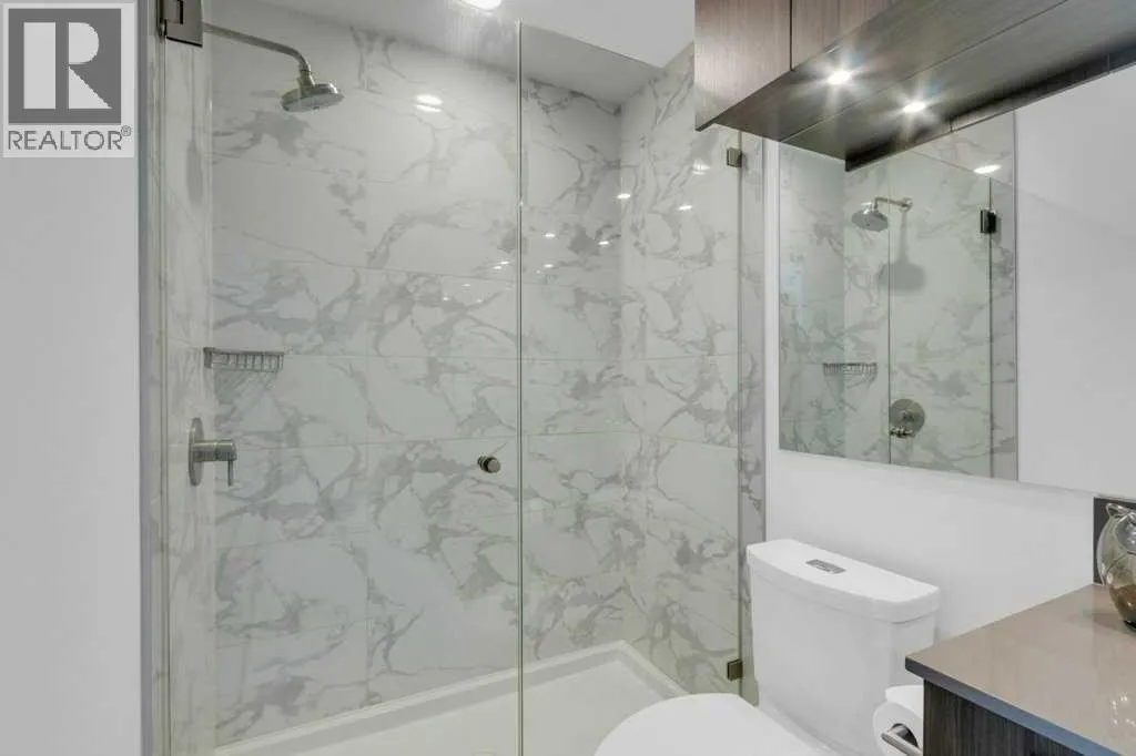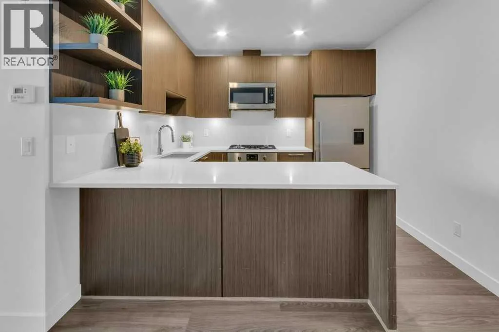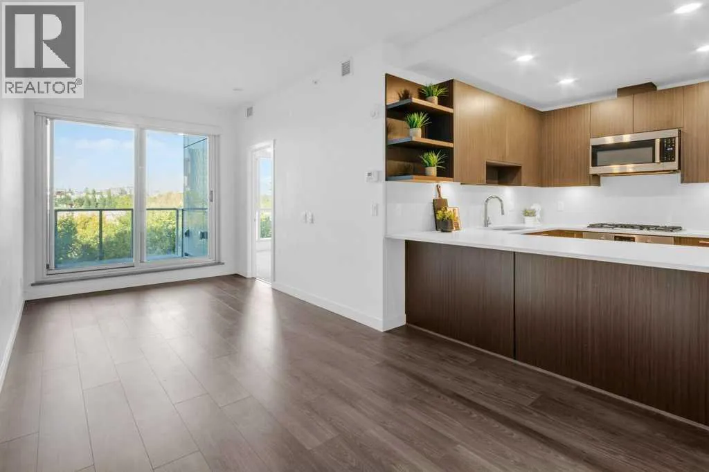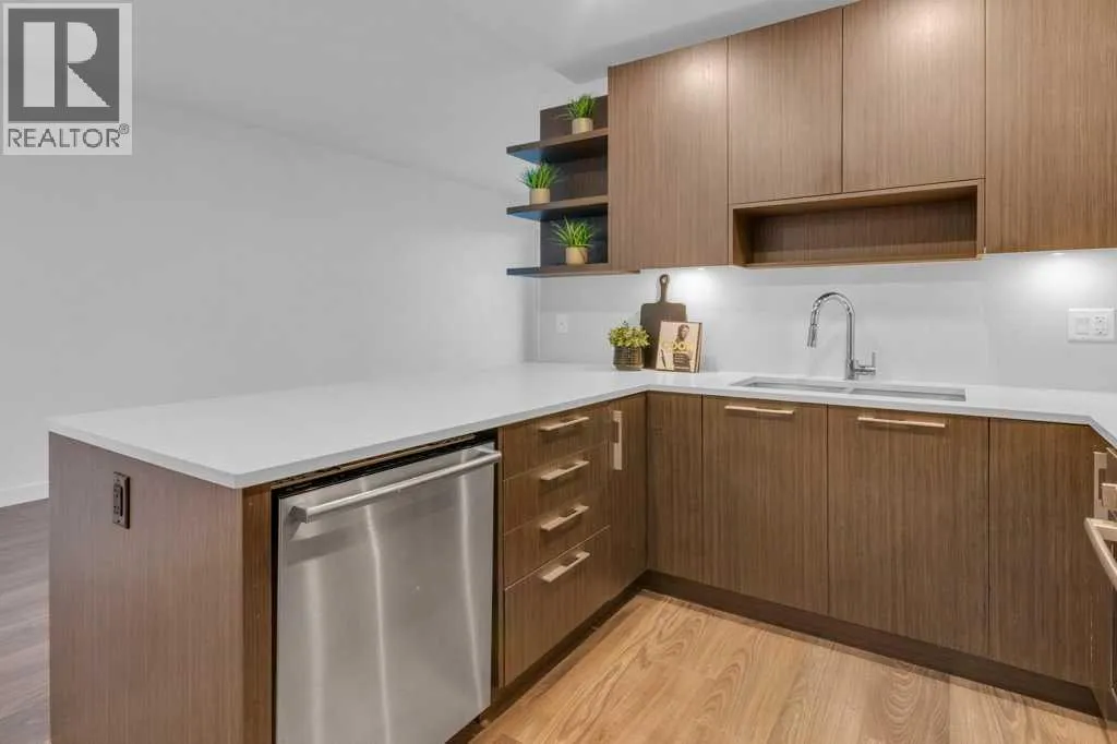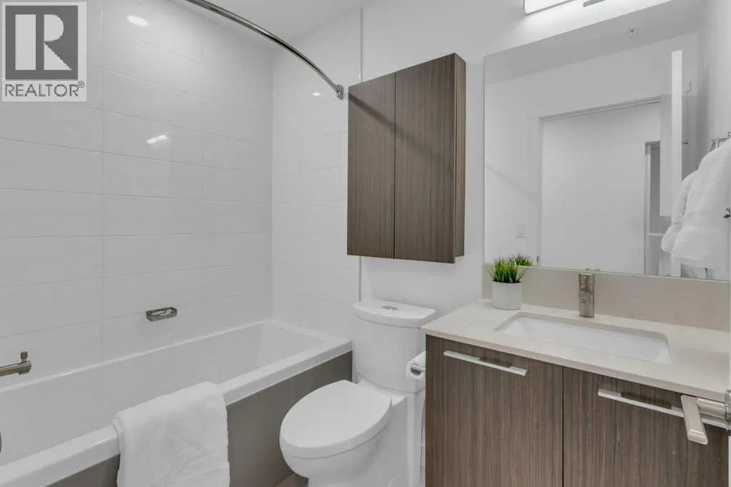 Welcome to Radius in Bridgeland, a modern, trendy, concrete, pet-friendly building! This west-facing 2 bedroom, 2 bathroom condo offers 634 sq ft of modern living space and features an unobstructed view of Murdock Park across the street and downtown view! Thoughtfully designed condo with open-concept living. The kitchen features modern cabinetry, quartz countertops, breakfast bar seating and sleek premium stainless steel appliances including a gas cooktop. Private balcony facing Murdoch Park with BBQ gas hook-up Bright, west-facing primary bedroom with ensuite bathroom, and 2nd bedroom with it's own bathroom across the hall. Vinyl plank flooring through main living space and 2nd bedroom, carpeted primary bedroom, and tiled bathroom floors. In-suite laundry, underground titled parking stall and an assigned storage locker included. Radius is a LEED Platinumâcertified, concrete building built by Bucci withs many amenities including daytime concierge, several fitness facilities including 2 gyms, bike studio, & yoga studio, massive rooftop patio with gardens and modern furniture, bike storage room, bike workshop, dog wash & grooming area, and car wash. Steps to parks, pathways, shops, transit and all that Bridgeland has to offer, this is the perfect blend of inner-city living and trendy living space. Very well run stylish building in a great urban location check this one out! Up to 2 pets allowed with no size restriction! (id:27476)