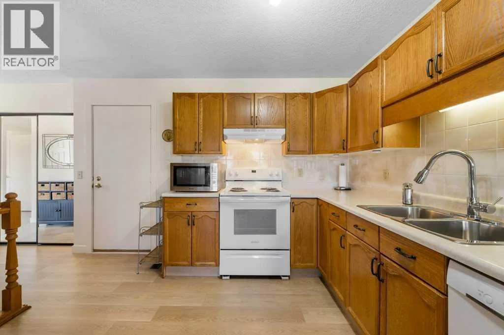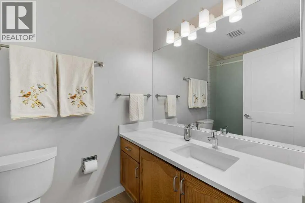 SUBSTANTIALLY RENOVATED VILLA! Are you looking for a QUIET RENOVATED BUNGALOW VILLA with no homes behind? Do you want a location where grandkids have plenty to do? Do you love TENNIS or PICKLEBALL? How about a 55+ VILLA on a LARGE GREENSPACE, with a view of TENNIS & PICKLEBALL (surrounded by mature trees), plus two open soccer fields, a ball diamond & a playground, all visible from your back deck? FANTASTIC VIEW for SEVERAL KILOMETERS!! When you move into a HORIZON VILLAGE community you gain a whole new lifestyle with plenty of new friendships centered around the COMMUNITY CLUBHOUSE for social events (both organized and spontaneous). Are you thinking of doing fewer chores and having more fun? You can THROW AWAY YOUR LAWNMOWER and your SNOW SHOVEL. Come see 83 Macewan Park Heights, an END-UNIT in a fantastic location! The front of this home is welcoming, NICE CURB APPEAL and nicely landscaped with an attractive sandstone retainer and a patio to sip your morning coffee. Step in the front door to this beautiful BUNGALOW with ATTACHED GARAGE. This villa is wide, giving lots of windows at the back of the home for PLENTY OF NATURAL LIGHT. AMAZING UPGRADES! You will love the vinyl plank flooring - durable and attractive! How about CENTRAL AIR CONDITIONING and TRIPLE PANE WINDOWS which are great for ENERGY EFFICIENCY (and QUIET). GREAT FLOOR PLAN. Two bedrooms on the main level, one with a built-in hide-a-bed so you can use the space for an office or a guest bedroom. The PRIMARY BEDROOM has an ENSUITE BATHROOM that you don't find in many villa floor plans. The SPACIOUS U-SHAPED KITCHEN has open sight lines to the dining and living rooms, plus the outdoor deck, and the green space out back! You will love sitting on the PARTIALLY COVERED back DECK with a privacy wall, and aluminum railing with a gate at the stairs to keep the puppies or grandchildren safe. The LOWER LEVEL is FINISHED and has a SPACIOUS REC ROOM with TV area and an ATTRACTIVE CORNER GAS FIREPLACE to keep the basement cozy all year round, plus another full bathroom and a hobby room (or office area if you prefer). The main floor bathrooms have been BEAUTIFULLY RENOVATED! So many updates and upgrades! Recent improvements include: BASEMENT SURROUND SPEAKERS and CENTRAL AIR CONDITIONING in 2016. A major upgrade to TRIPLE PANE PATIO DOOR and TRIPLE PANE WINDOWS throughout the home in 2018 (plus new toilets in 2018). UPGRADED THERMOSTAT and FAN FOR THE FIREPLACE in 2019. VINYL PLANK FLOORING plus a NEW DRIVEWAY in 2020. NEW DISHWASHER and WATER HEATER in 2021. Queen-sized MURPHY BED and a NEW WASHER in 2022. The main and ensuite BATHROOMS were very NICELY RENOVATED in 2021. NEW INTERIOR DOORS, BASEBOARDS and TRIM on the main level (plus new custom HUNTER DOUGLAS BLINDS) in 2023. NEW FRONT DOOR, SCREEN and A SMART LOCK in 2024, plus a NEW ROOF in 2024! Short distance to Macewan Plaza or several major shopping locations. Walking paths connect to Nose Hill Park and more! (id:27476)