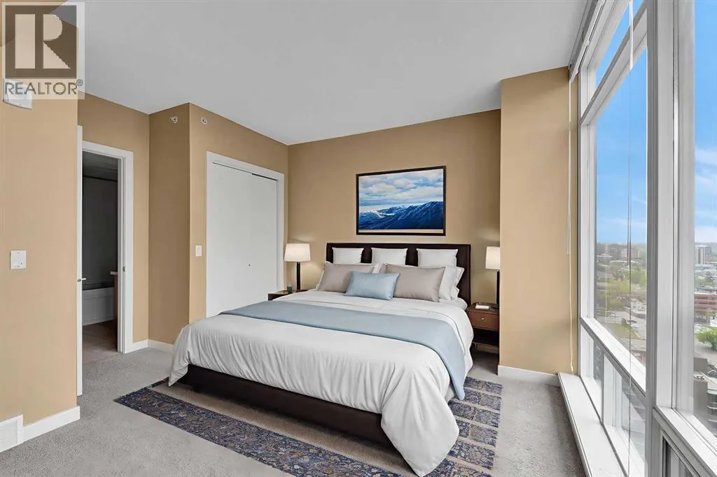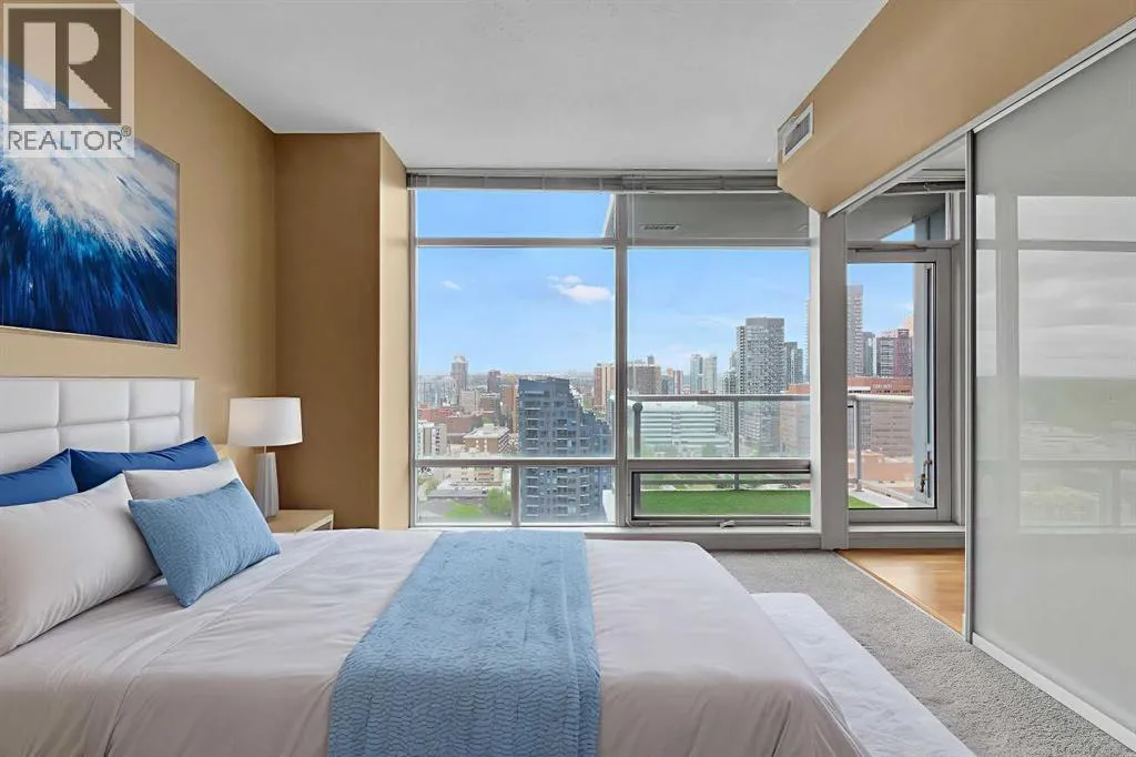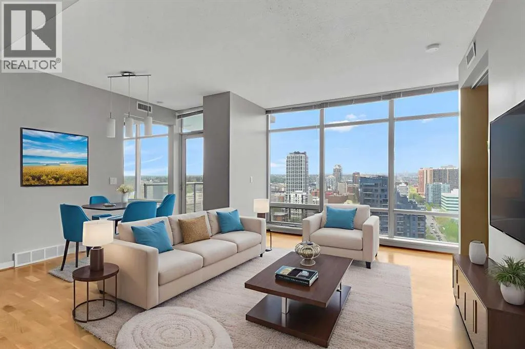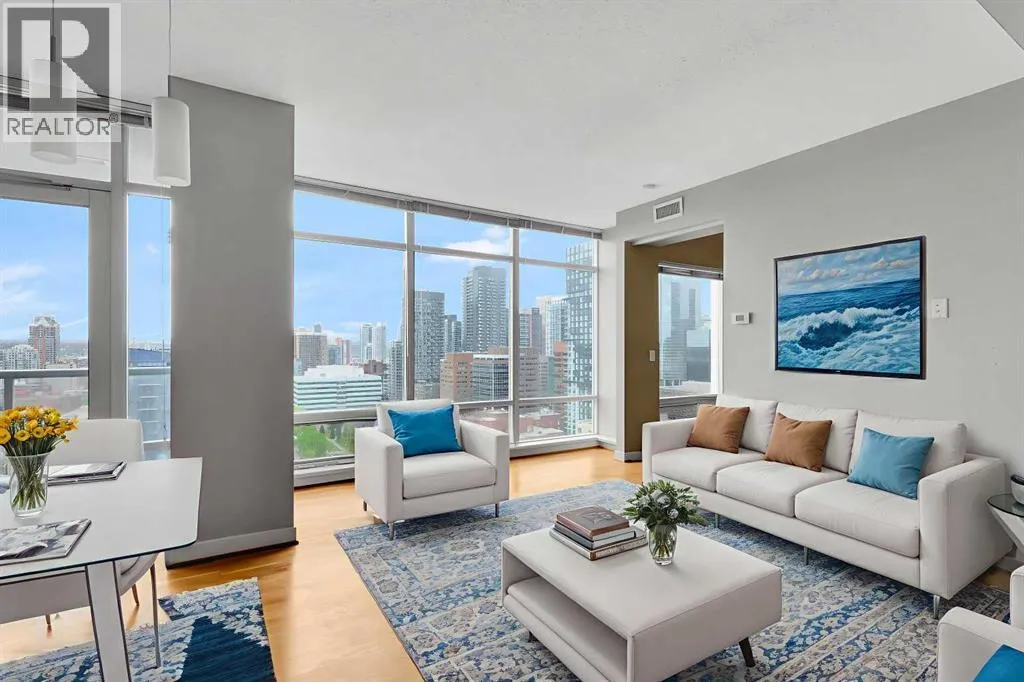 Welcome to Unit 1903 at Union Square, a bright West facing suite with floor-to-ceiling windows with views of Haultain Park, the Rockies, Calgary Tower and downtown. Featuring U/G Parking and Central A/C the open floor plan boasts durable laminate flooring in the living room and kitchen, soft carpet in each bedroom and tile in both bathrooms. Sliding glass doorsâfull height in both bedroomsâlet in plenty of light and place the bedrooms on opposite sides of the suite for extra privacy. The kitchen has stainless-steel appliances, a large island for meals or get-togethers and a built-in nook thatâs perfect for a home office. Step out onto your private balconyâwith gas BBQ hookupâand take in the park below, complete with tennis courts, a playground and mature trees. The primary bedroom includes a walk-in closet and spa-style ensuite, while the second bedroom offers cheater-ensuite access to the other full bath. Youâll also have in-suite laundry, secure underground parking and your own storage locker. Just downstairs, the Union Square Food Hall brings a variety of dining options right to your doorstep. With a Walk Score of 93, youâre steps from the C-Train, river pathways, the Stampede Grounds and all the shops and restaurants downtown. Urban living at its best! (id:27476)