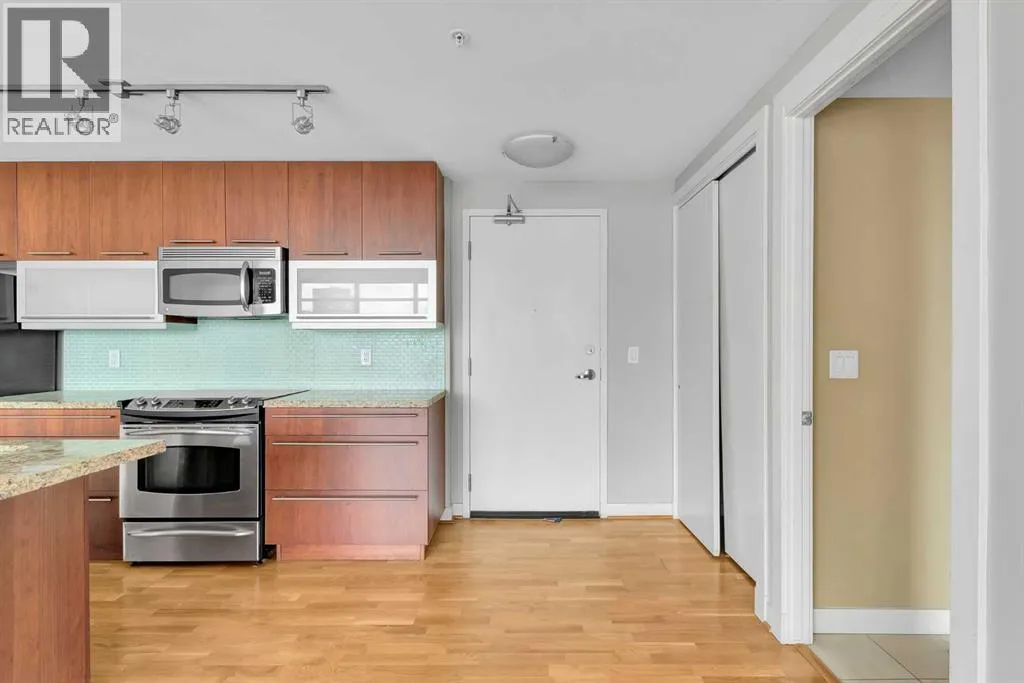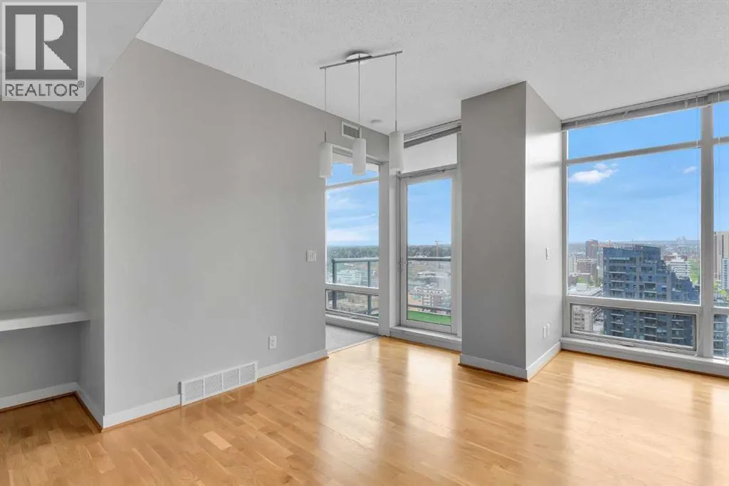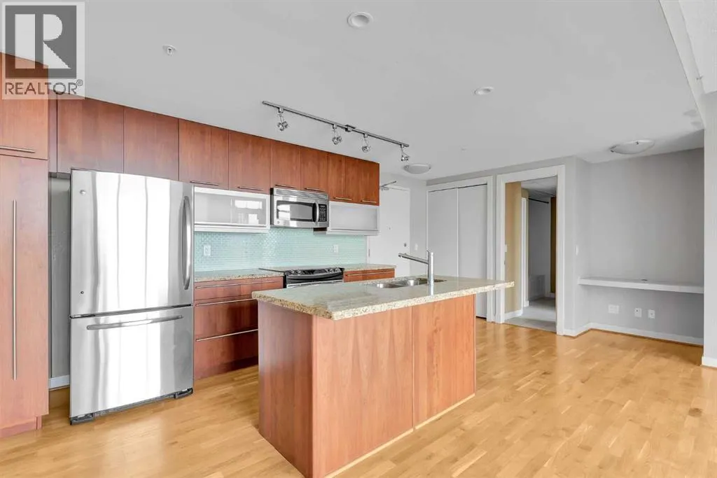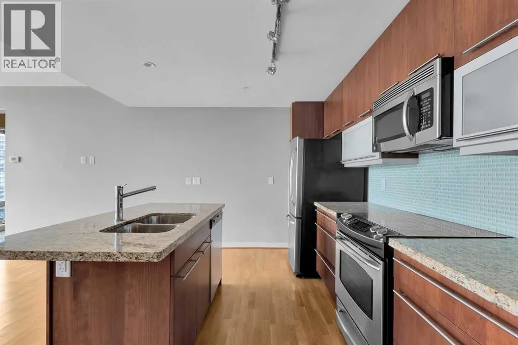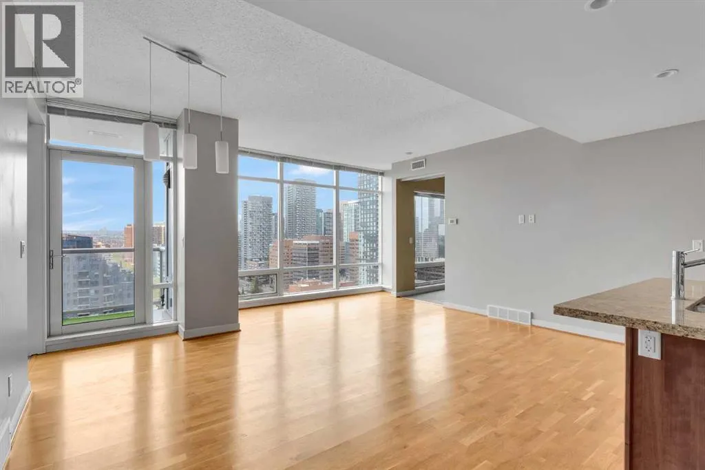 Welcome to Unit 1903 at Union Square, a bright West facing suite with floor-to-ceiling windows with views of Haultain Park, the Rockies, Calgary Tower and downtown. Featuring U/G Parking and Central A/C the open floor plan boasts durable laminate flooring in the living room and kitchen, soft carpet in each bedroom and tile in both bathrooms. Sliding glass doorsâfull height in both bedroomsâlet in plenty of light and place the bedrooms on opposite sides of the suite for extra privacy. The kitchen has stainless-steel appliances, a large island for meals or get-togethers and a built-in nook thatâs perfect for a home office. Step out onto your private balconyâwith gas BBQ hookupâand take in the park below, complete with tennis courts, a playground and mature trees. The primary bedroom includes a walk-in closet and spa-style ensuite, while the second bedroom offers cheater-ensuite access to the other full bath. Youâll also have in-suite laundry, secure underground parking and your own storage locker. Just downstairs, the Union Square Food Hall brings a variety of dining options right to your doorstep. With a Walk Score of 93, youâre steps from the C-Train, river pathways, the Stampede Grounds and all the shops and restaurants downtown. Urban living at its best! (id:27476)