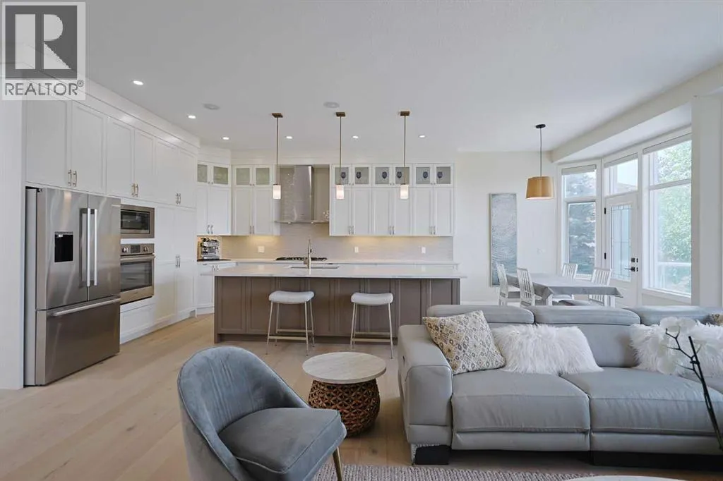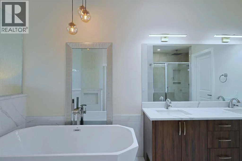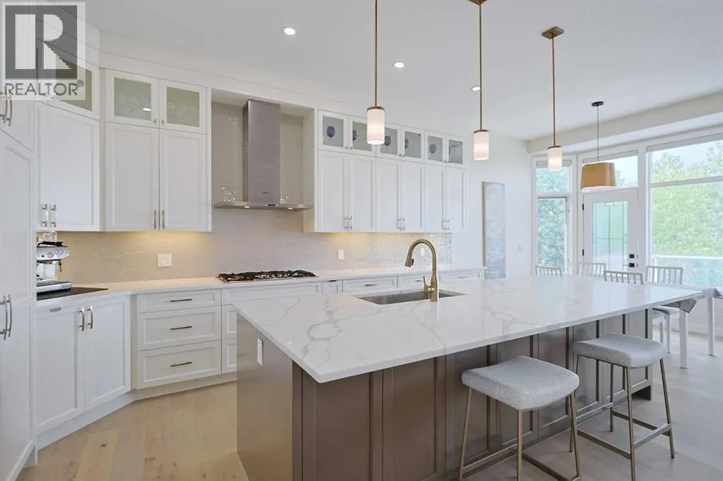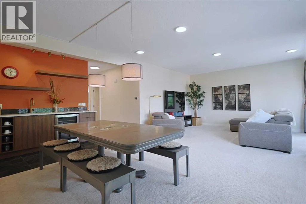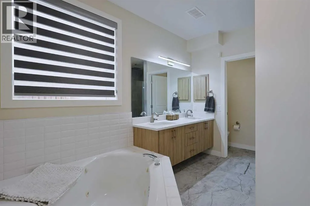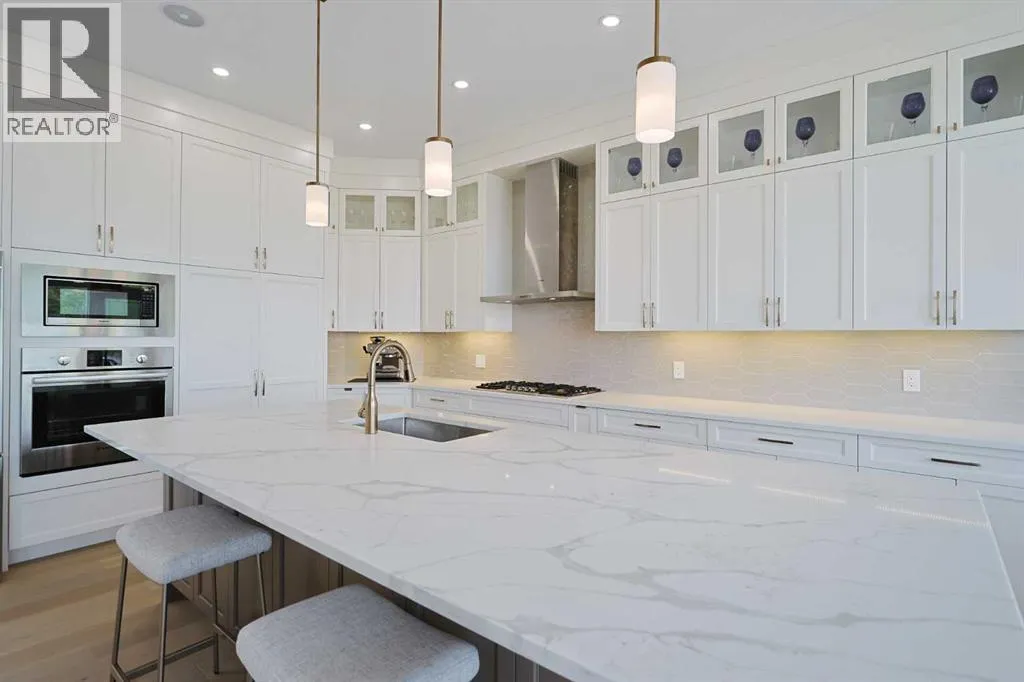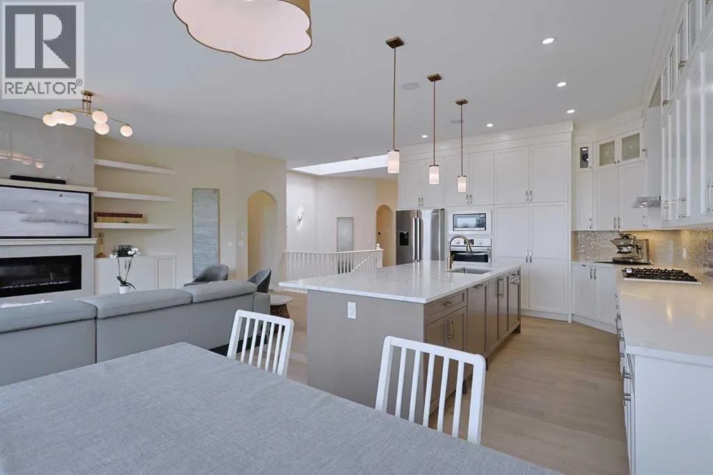 Make your dreams come through when you step through the door of this beautifully renovated home in the sought-after estate community of the Hamptons, nestled here on this quiet crescent surrounded by luxury executive homes. With over 3200sqft of refined living space, this stunning 5 bedroom bungalow enjoys wide-plank engineered hardwood floors & central air, fully-loaded chefâs kitchen with Bosch appliances, upgraded granite countertops & 2 fantastic decks for your outdoor enjoyment. Complemented by soaring 10ft ceilings & natural light, you will be impressed by the free-flowing design of the main floor with its expansive windows, showcasing the gracious sun-drenched living room with its sleek contemporary fireplace & built-in shelving, elegant formal dining room with tray ceiling & custom kitchen with full-height cabinets, undercabinet lighting & the stainless steel appliances include gas cooktop & built-in oven. Main floor has 2 spacious bedrooms & 2 full bathrooms highlighted by the ownersâ retreat with walk-in closet & sensual ensuite with tile floors & skylight, granite-topped double vanities, free-standing soaker tub & oversized walk-in shower. The 2nd bathroom â with shower, is conveniently located next to the 2nd bedroom. The walkout level is beautifully finished with 3 more bedrooms & 2 bathrooms, great storage space & a smashing games/rec room with gorgeous wet bar with granite counters. And 1 of the bedrooms would be perfect for your in-lawsâ¦complete with large walk-in closet & its own ensuite with double vanities, jetted tub & walk-in shower. Main floor also has a dedicated home office with glass French door & laundry room with Maytag steam washer & dryer, built-in cabinets & sink. Additional features & extras include PEX pipes, built-in ceiling speakers & custom roller blinds, clay tile roof, 2 hot water tanks & 2 air conditioning units, NEST thermostats & 2 new furnaces in 2024. Walking distance to the golf course clubhouse, Hamptons School & bus stops , this truly amazing home has everything youâve been searching for, in this coveted location only minutes to shopping at the Hamptons Co-op & Edgemont Superstore, & quick easy access to Crowfoot Centre & LRT, major retail centers, top-rated schools & downtown. (id:27476)