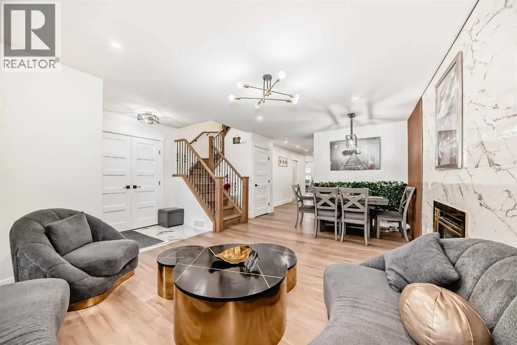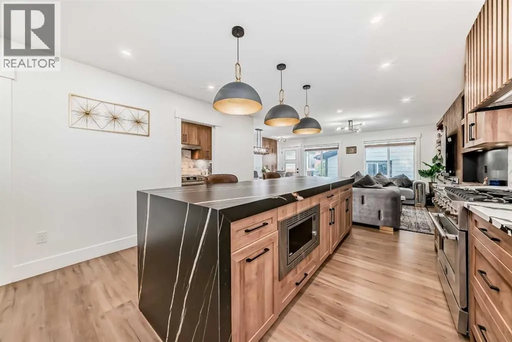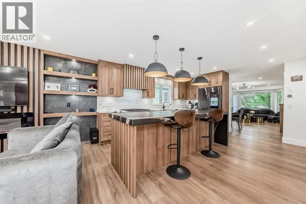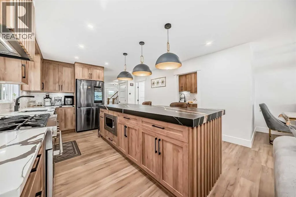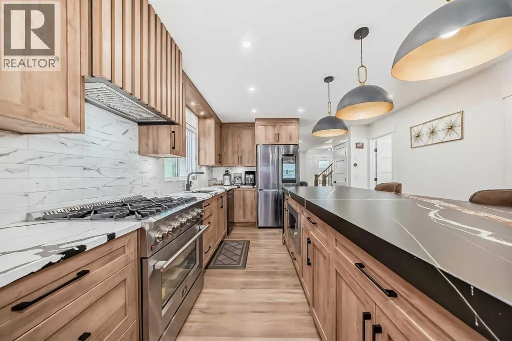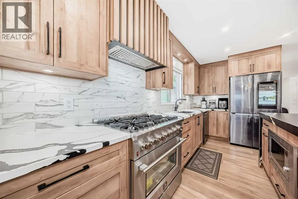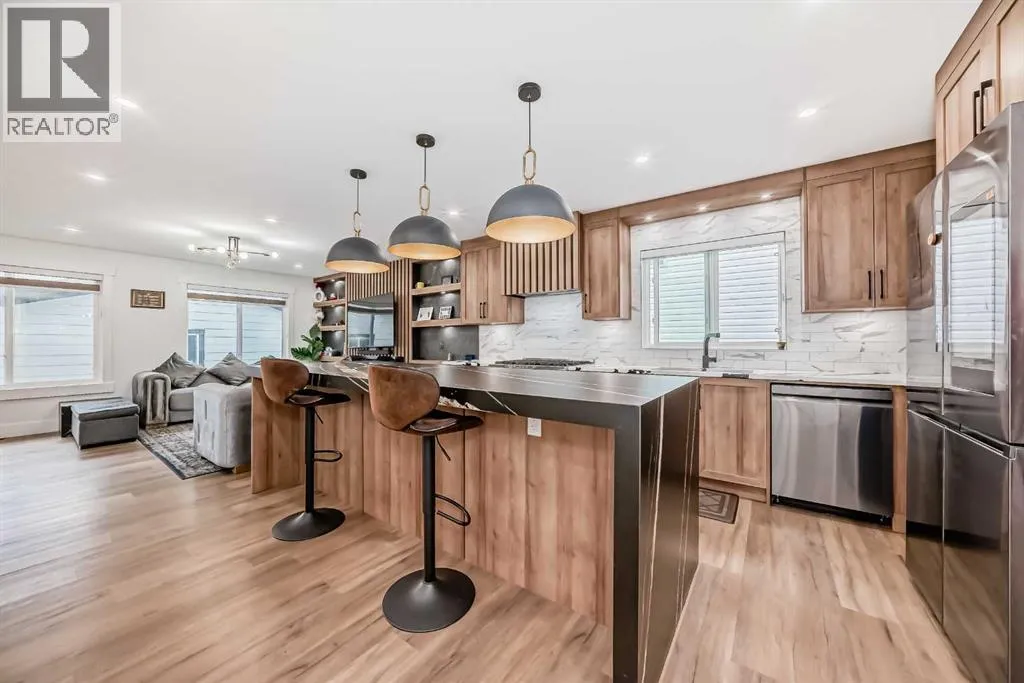 ONE-OF-A-KIND, MAGAZINE-WORTHY HOME WITH HIGH-END LUXURIOUS UPGRADES. This beautiful home will definitely SURPRISE YOU WITH THE AMOUNT OF RENOVATIONS, USAGE OF SPACE AND THE REMARKABLE DESIGN. Welcome to this fully upgraded luxury home where modern elegance meets functional design. Spanning over 2,000 sq ft plus a fully finished basement is a perfect blend of style, comfort, and functionality, ideal for families who want to experience luxury while staying in the well established area close to all amenities. This stunning 6-bedroom, 4.5-bathroom home is packed with high-end finishes and thoughtful upgrades rarely found in this neighbourhood. From the moment you step inside, you'll be drawn to the sleek modern interiors, featuring smooth ceilings, pot lights throughout, brand new flooring, high baseboards and new windows, doors, window blinds and stylish light fixtures and chandeliers. The main kitchen is a showstopper - complete with a huge island with extra thick quartz countertops and premium stainless steel appliances, all complemented by a dedicated spice kitchen to keep your culinary aromas contained. The living room stuns with a custom feature wall, beautifully finished in large-format luxury tiles and wood accents surrounding a modern gas fireplace. While the family room impresses with black tiles, panels, floating shelves with shiny puck lighting and a sleek built-in electric fireplace at the bottom of the TV unit. Fully renovated 4.5 bathrooms feature modern tiles, frameless glass doors, designer faucets and light fixtures. The thoughtful layout includes two spacious primary suites with attached baths, ideal for multi-generational living. Thoughtfully designed built-in cabinets throughout the house provide ample storage space. The basement offers a 2-bedroom illegal suite with a separate entranceâperfect for extended family or rental income. Exterior upgrades include a new roof, strong Hardie board siding and a heated double garage. Located just walking ste ps from schools, parks, shopping and the Sikh Gurudwara, this home isnât just move-in readyâitâs. If youâve been searching for a luxury property in a family-friendly, central location - this is one you have to see in person. (id:27476)