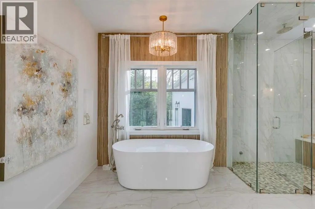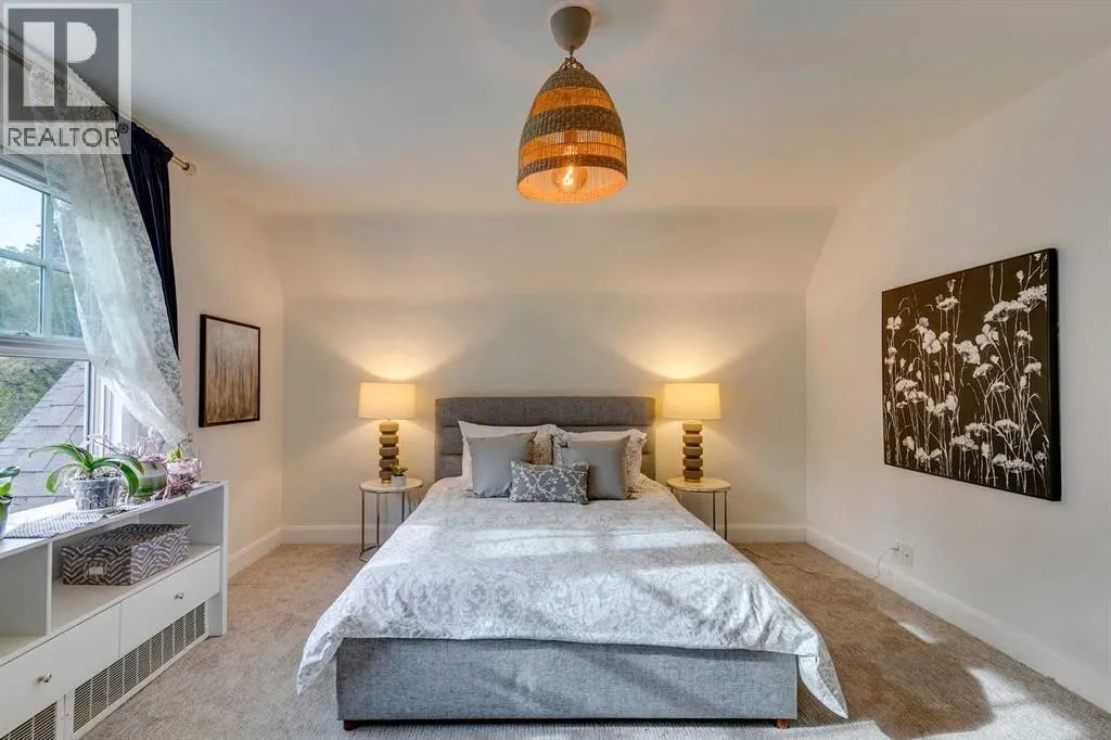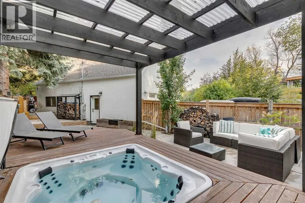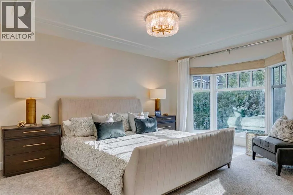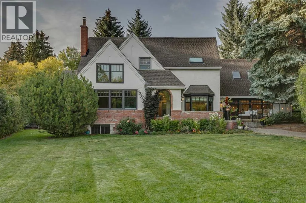 Beautiful luxury home with a total of 5671.48 square feet, situated on a private 1/3 of an acre corner prime lot in the heart of Mount Royal. Extensively renovated + elegantly appointed with a fabulous layout. The main floor offers a main floor primary suite with spacious walk in closet + spa ensuite bathroom. With 2676.54 square feet on this level, the other principal rooms are also all substantial in size. Lovely formal living room with wood burning fireplace, large dining room for intimate gatherings or family dinners. Stunning chefs kitchen with beamed ceilings, massive island, loads of cabinetry + open to comfy family room with wood burning fireplace. Laundry room + well thought out mud room complete the main level + lead to the attached triple tandem garage with high ceilings which could accommodate lifts + additional vehicles. The upper bedrooms are practical in design + share a renovated family bathroom. Easy downstairs living with a movie room with large projector screen. Bonus room to use as a wine cellar or for additional storage. Sizeable guest room + bathroom with full shower. Highly functional built out wet bar + additional living space for either your home gym or a games room for friends + family. Pie shaped lot with mature hedges creates a park feel + there is also a quiet secure backyard retreat with hot tub, pergola which is accessible through private entrance via the garage. Walk to excellent schools of all levels, parks, 17 avenue, Marda Loop shopping + more. (id:27476)
