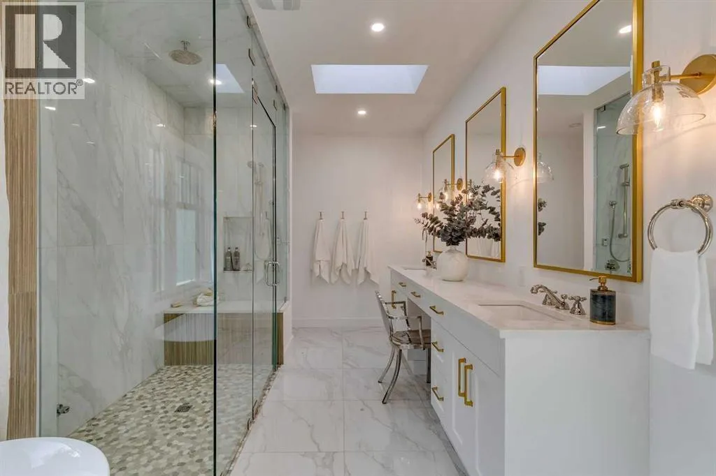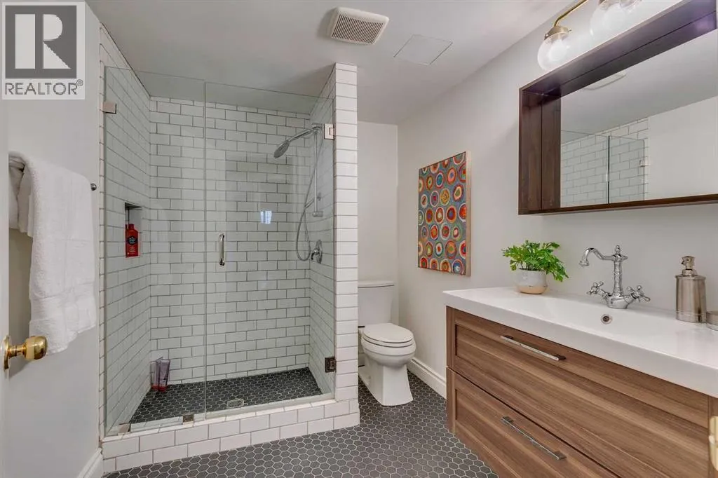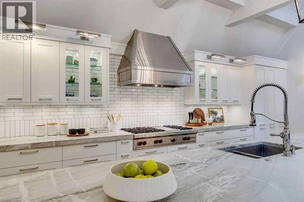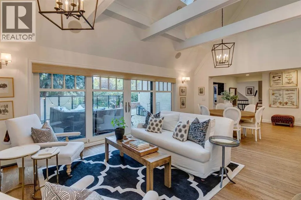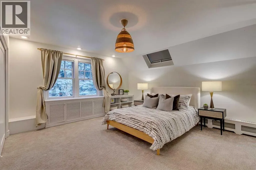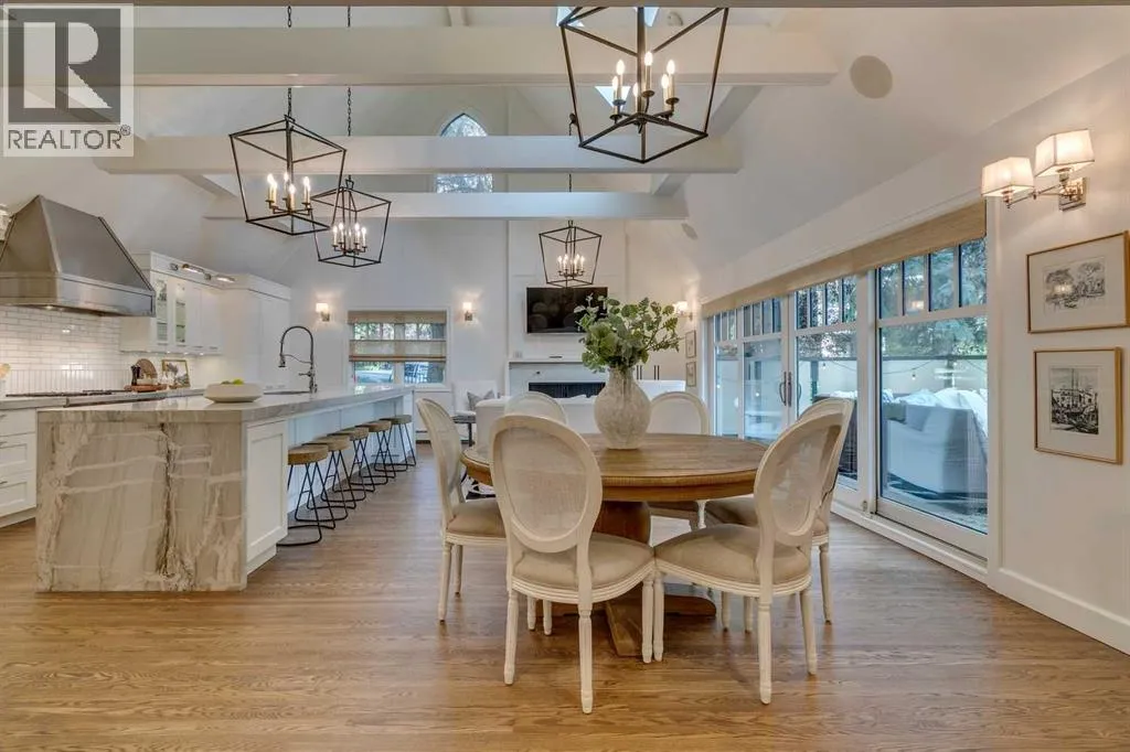 Beautiful luxury home with a total of 5671.48 square feet, situated on a private 1/3 of an acre corner prime lot in the heart of Mount Royal. Extensively renovated + elegantly appointed with a fabulous layout. The main floor offers a main floor primary suite with spacious walk in closet + spa ensuite bathroom. With 2676.54 square feet on this level, the other principal rooms are also all substantial in size. Lovely formal living room with wood burning fireplace, large dining room for intimate gatherings or family dinners. Stunning chefs kitchen with beamed ceilings, massive island, loads of cabinetry + open to comfy family room with wood burning fireplace. Laundry room + well thought out mud room complete the main level + lead to the attached triple tandem garage with high ceilings which could accommodate lifts + additional vehicles. The upper bedrooms are practical in design + share a renovated family bathroom. Easy downstairs living with a movie room with large projector screen. Bonus room to use as a wine cellar or for additional storage. Sizeable guest room + bathroom with full shower. Highly functional built out wet bar + additional living space for either your home gym or a games room for friends + family. Pie shaped lot with mature hedges creates a park feel + there is also a quiet secure backyard retreat with hot tub, pergola which is accessible through private entrance via the garage. Walk to excellent schools of all levels, parks, 17 avenue, Marda Loop shopping + more. (id:27476)