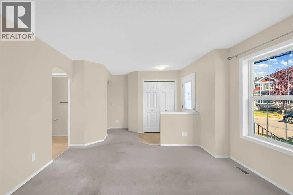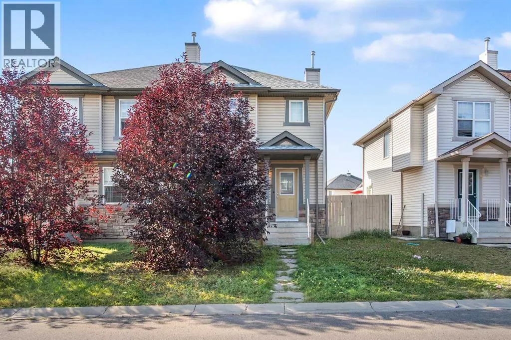 Welcome to this beautifully maintained semi-detached home ideally located near major shopping centres, schools, parks, and the C-Train station. Perfect for families and commuters alike, this home combines convenience with comfort.The main floor features a bright, open-concept design with a spacious living area, dining room, and functional kitchenâperfect for entertaining or everyday living. Fresh paint throughout gives the home a modern, turn-key feel. Carpet will be professionally dry-cleaned and replaced if required before possession, ensuring a move-in ready experience.A unique open-to-above basement design creates an airy, connected atmosphere unlike typical layouts. Large windows flood the lower level with natural light, making it feel like part of the main floor. Half the basement is already developed, while the other half includes rough-in plumbing and is ready for your visionâwhether additional bedrooms, a rec room, or future development to suit your needs (subject to municipal approvals).?? Unbeatable Location: Just steps from a green space with a playground and basketball court, plus access to an extensive bike and walking path stretching for miles. Behind the home, a newly built playground offers a mini enclosed soccer field, zip line, and picnic areaâperfect for families and active lifestyles. Quick access to Stoney Trail, Calgary International Airport, schools, shopping, and transit completes the package.Donât miss this rare opportunity to own a stylish, versatile home in a vibrant, family-friendly neighborhood. Book your showing today! (id:27476)