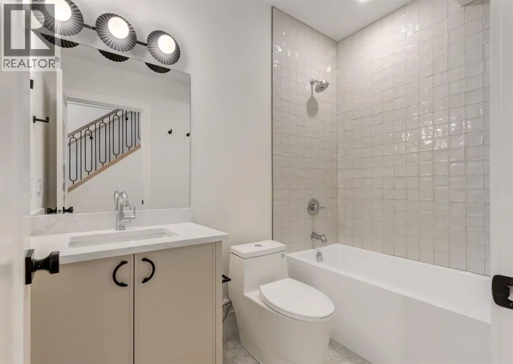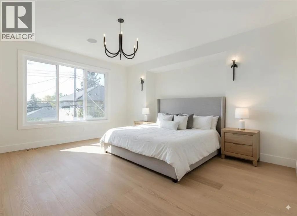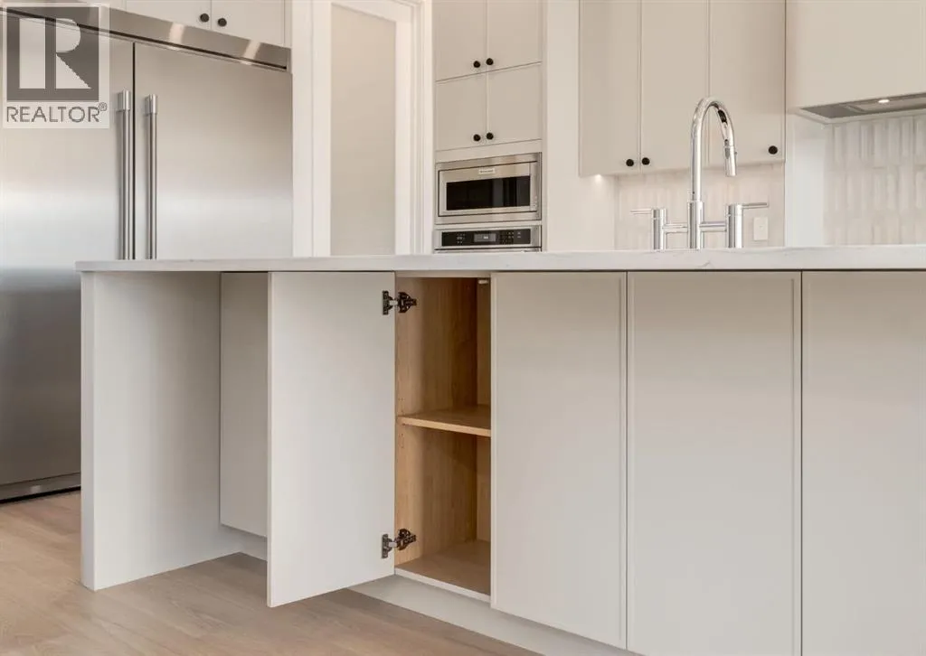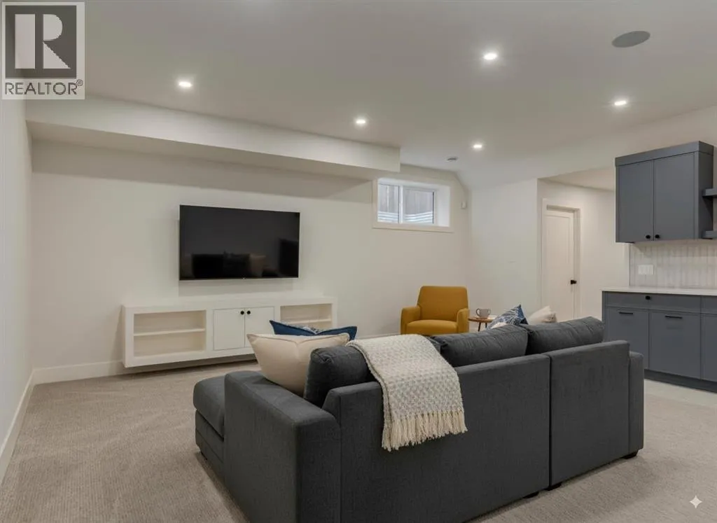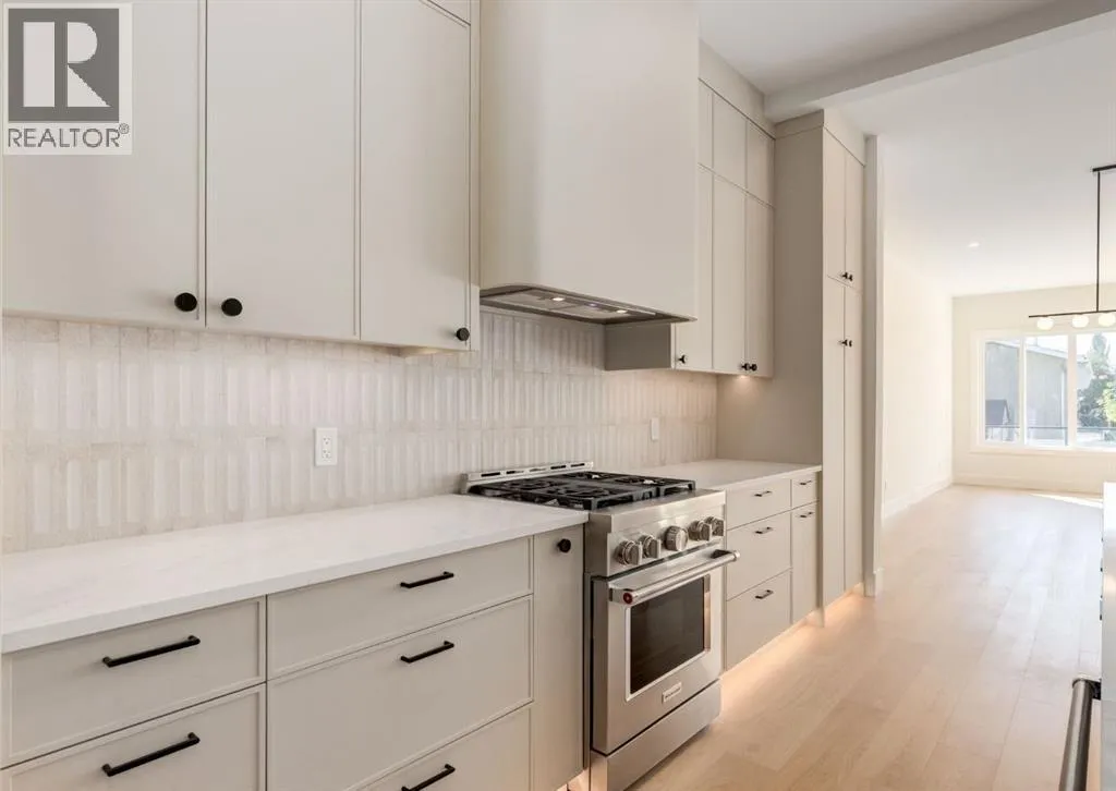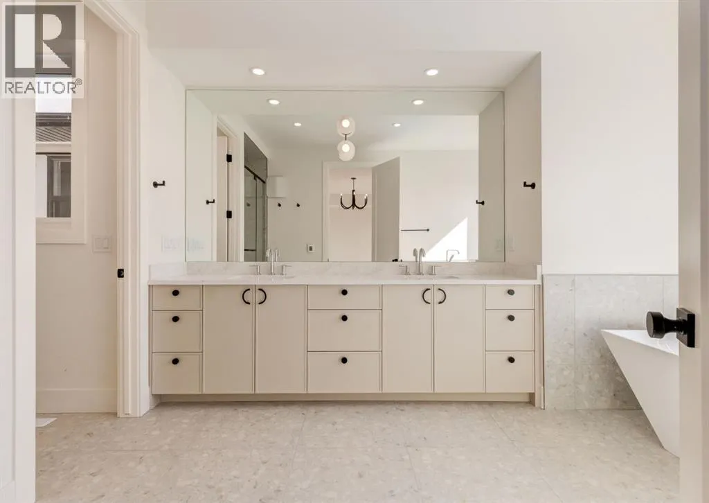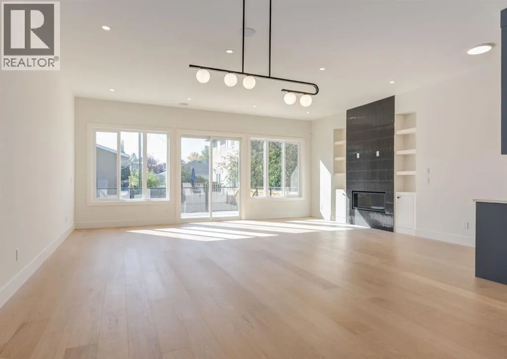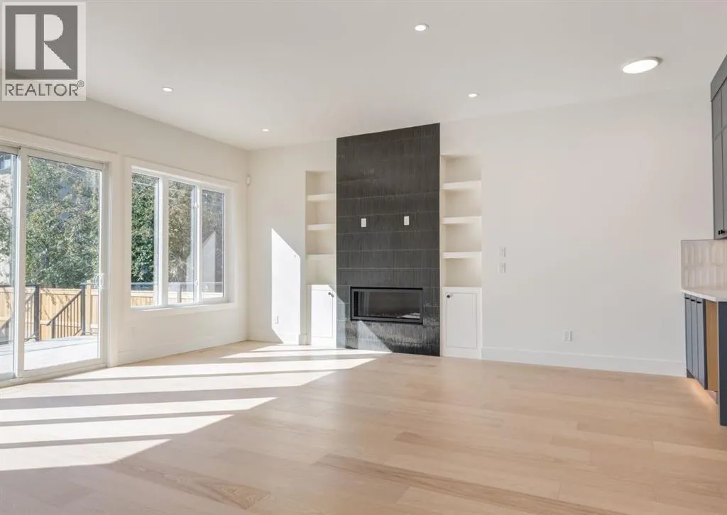 Spectacular custom built home situated on a WIDE 30+ foot lot in the heart of Winston Heights with over 3750 SF of living space. This stunning new build combines thoughtful design, high-end finishes, and a sun-filled south-facing backyard. The open-concept main floor showcases engineered hardwood, a chef-inspired kitchen with curved island and hood fan, striking quartz countertops, designer tile backsplash, 30â commercial gas range plus an additional wall oven with built-in microwave, 65â of refrigeration, a walk-in pantry, and custom locally made cabinetry with undercabinet and toe-kick lighting. The full-width family room is anchored by an inviting gas fireplace, and large windows frame views of the backyard. Upstairs youâll find three bedroomsâeach with a walk-in closetâplus a bright bonus room, convenient laundry with sink, and hardwood throughout. The primary suite is designed for relaxation, featuring a spa-inspired ensuite with heated floors, freestanding tub, oversized shower with bench, large format tiles, and dual vanities. The fully finished basement offers a spacious rec room with wet bar, guest bedroom with walk-in closet, dedicated gym, guest bath, and is roughed-in for hydronic floor heating. The oversized ATTACHED double garage impresses with 14â1â ceilings, insulation (ceiling is spray foamed), drywall, gas heater, and aggregate concrete driveway. Enjoy Calgaryâs sunny days in the landscaped backyard featuring lush grass, and a full-width Dura Deck with glass railings. Move-in ready and backed by new home warranty, this home blends luxury, functionality, and peace of mind â walk to The Winston Golf Club, Linaâs Italian Market, Co-op, local school, and so much more. Floor plans and a 3D tour are readily available, providing a glimpse into this stylish home! (id:27476)
