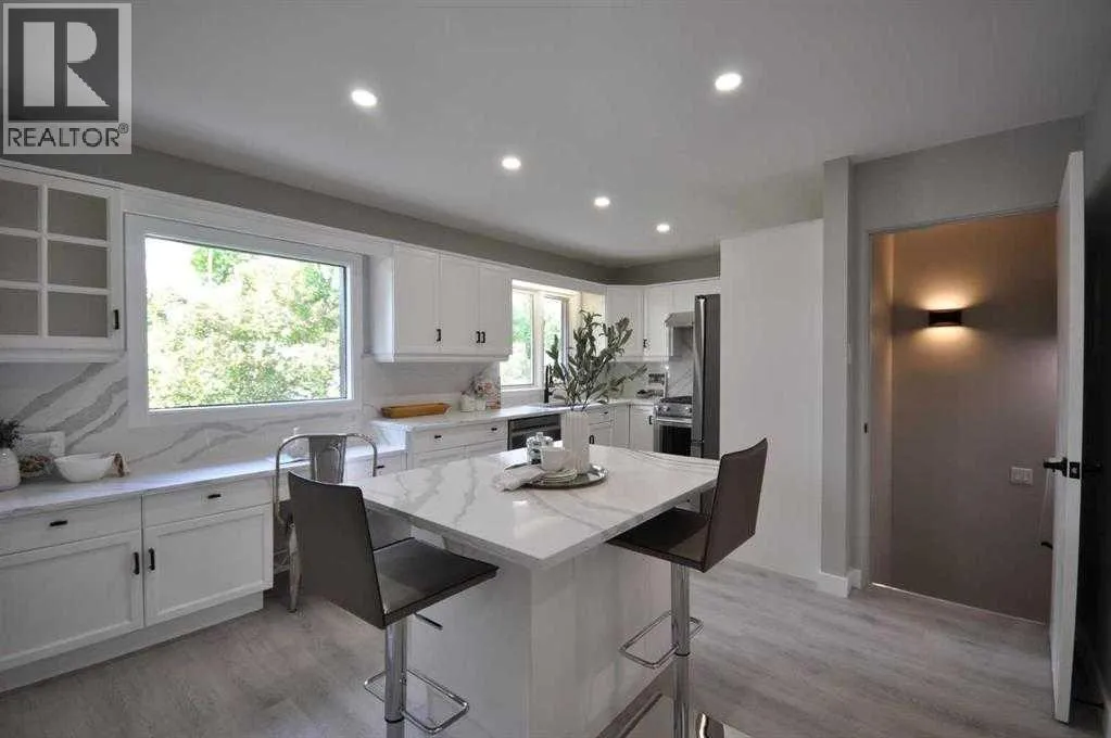 Beautiful quiet location for this spacious renovated unique 5 bedroom home. New front west veranda is perfect for enjoying a good book and the last rays of sunshine AS you enter you will see a large living room to the right and kitchen to the left complete with new appliances, quartz counters, and eat up island. This room flows nicely into the dining room and main floor family room and the easy access to the fenced yard. Very generous primary bedroom has double closets and a large 4 pc ensuite. The second bedroom has a cheater door to the main bathroom and stand alone closets . Upstairs there are 2 good sized bedrooms and on the lower level is the 5th bedroom and 3 pc bathroom. There are 2 rec room areas and large storage /laundry room. New vinyl flooring throughout, new light fixtures and additional pot lights, freshly painted inside and out make this house move in ready. Lovely tree lined street, easy walking distance to the university, shops and transportation. (id:27476)