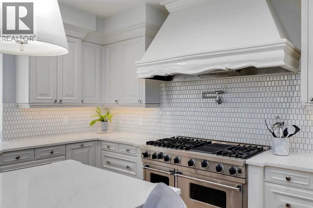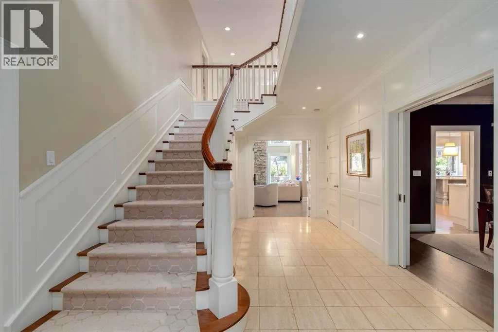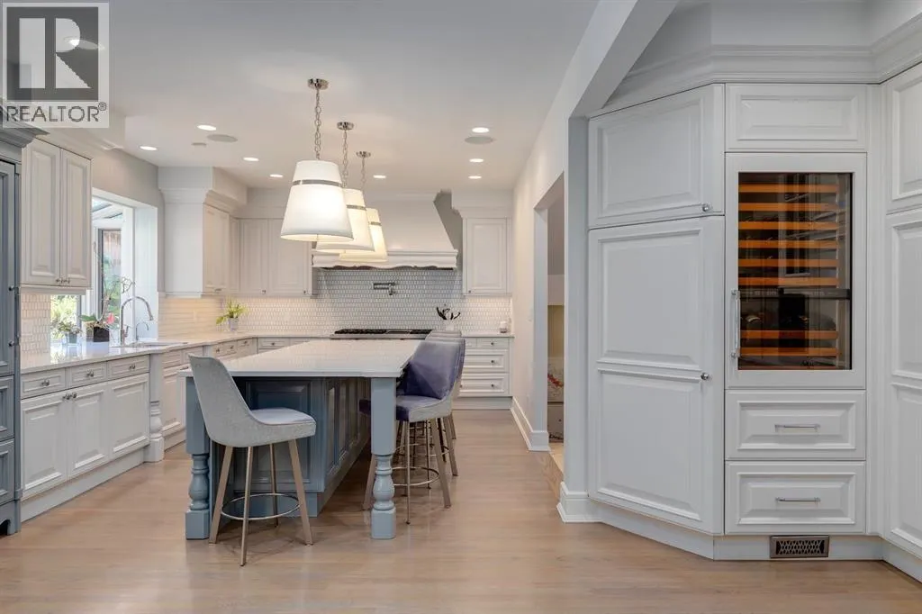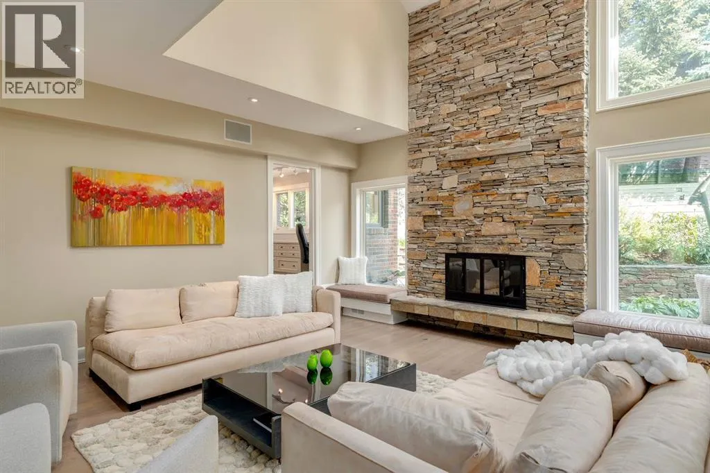 Step into a beautifully transformed post-modern home, originally built in 1983, where contemporary elegance meets timeless charm. This expansive residence boasts 6 bedrooms, a gym, a main floor office, 2 staircases, a formal dining room, 5 fireplaces, and a versatile basement bedroom with a 3-piece ensuite, perfect for family or guests.With over 4,626.99 sq ft of above-ground space and an additional 2,594.84 sq ft in the basement, this home is designed for both family living and entertaining.Each of the 6 bedrooms offers ample space, ensuring comfort and privacy. The primary suite features a luxurious 5-piece ensuite, including a steam shower, his and her sinks, a large closet, and abundant storage. Enjoy the open-to-below feature from the second floor, enhancing the sense of spaciousness.Two upper balconies provide serene spots for morning coffee or evening relaxation, seamlessly blending indoor and outdoor living.At the heart of the home, the newly renovated kitchen is a chefâs dream. Featuring a built-in Wolf gas range, pot-filling tap, filtered water tap, built-in refrigerator, expansive island with breakfast bar, and a wine refrigerator with two beverage drawers, this kitchen is both functional and stylish. Its open layout flows effortlessly into the dining and family room, where a floor-to-ceiling wood-burning fireplace sets the mood for cozy evenings.Retreat to the cozy library for relaxation or entertain guests in the elegant formal living area, designed for style. Work from home in the thoughtfully designed private main floor office, accommodating multiple desks. The formal dining room invites lively dinner parties, while a practical laundry chute adds convenience to your daily routine.The basement is perfect for entertaining, featuring a wet bar with a beer fridge, a versatile gym space, and plenty of storage, including a wine room. T.V area. The basement bedroom includes a 3-piece ensuite, providing comfort for guests or family.This home pr ioritizes comfort and security with an air purifier, humidifier, and security system. Heated floors in the bathrooms and back mudroom provide warmth during chilly months, while five fireplaces, three furnaces, and two hot water tanks ensure efficiency and peace of mind.The spacious 30.4 x 24.4 sq ft triple detached garage offers ample storage, ideal for hobbyists or families with multiple vehicles.The backyard features a built-in BBQ and fire pit area, perfect for gatherings, and ample space for a future pool, creating your outdoor paradise.This home offers more than impressive features; it embodies a lifestyle. Imagine cozy family evenings, vibrant celebrations, and peaceful mornings on the balconies. Every detail has been thoughtfully considered to cater to modern needs while providing comfort and style.Donât Miss This Opportunity! Schedule your tour today! (id:27476)