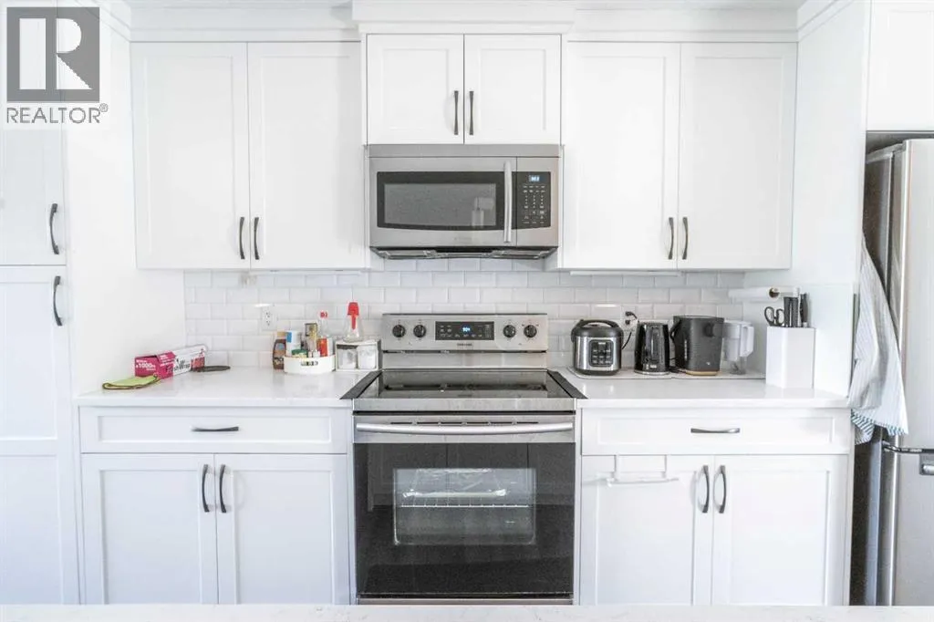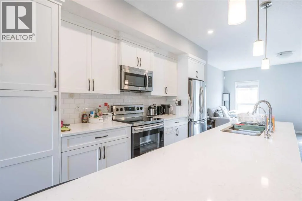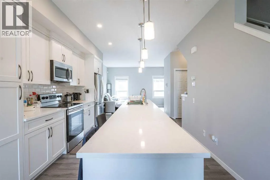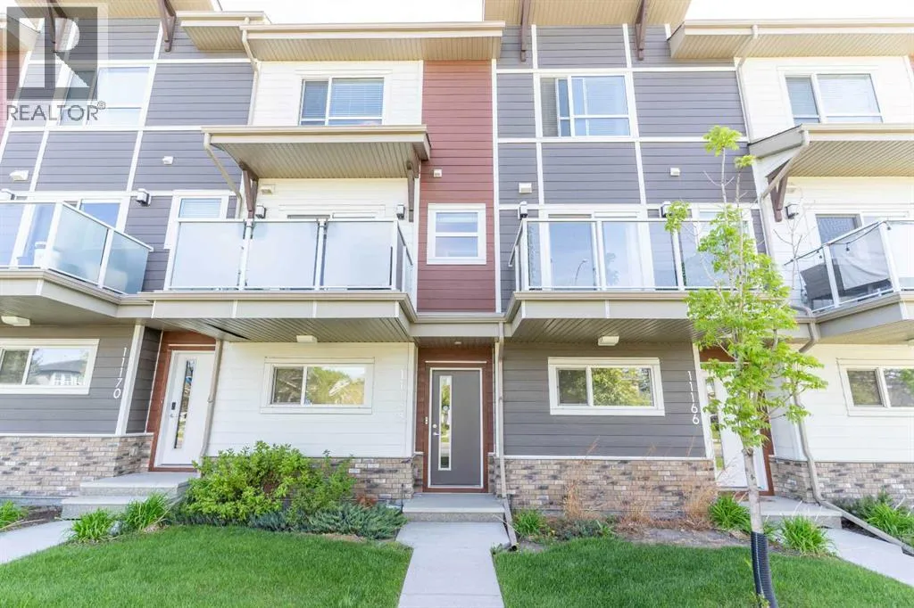 UNBELIEVABLE VALUE! 2-CAR INDOOR PARKING! MODERN TOWNHOME IN HARVEST HILLS!Welcome to this beautifully designed 3-storey townhome located in the vibrant and established community of Harvest Hillsâjust steps from schools, parks, transit, shopping, and scenic walking paths!The ground floor features a spacious front entry and a tandem double-car garage, offering secure parking and extra storage.The main level boasts 9â ceilings, rich engineered hardwood laminate flooring, and an open-concept layout perfect for entertaining. The stylish kitchen includes white shaker-style cabinetry, subway tile backsplash, stainless steel appliances, and ample counter space. Just off the dining area, enjoy a large balconyâideal for BBQs and outdoor relaxation.The upper floor showcases a rare double primary bedroom layout, each with its own private ensuite and walk-in closetâperfect for shared living or guest flexibility. Upper-level laundry with stacked washer and dryer adds extra convenience.This home offers a functional layout, beautiful finishes, and an unbeatable locationâmaking it a perfect choice for first-time buyers, professionals, or investors. Contact your favorite REALTOR® today to schedule your private viewing! (id:27476)