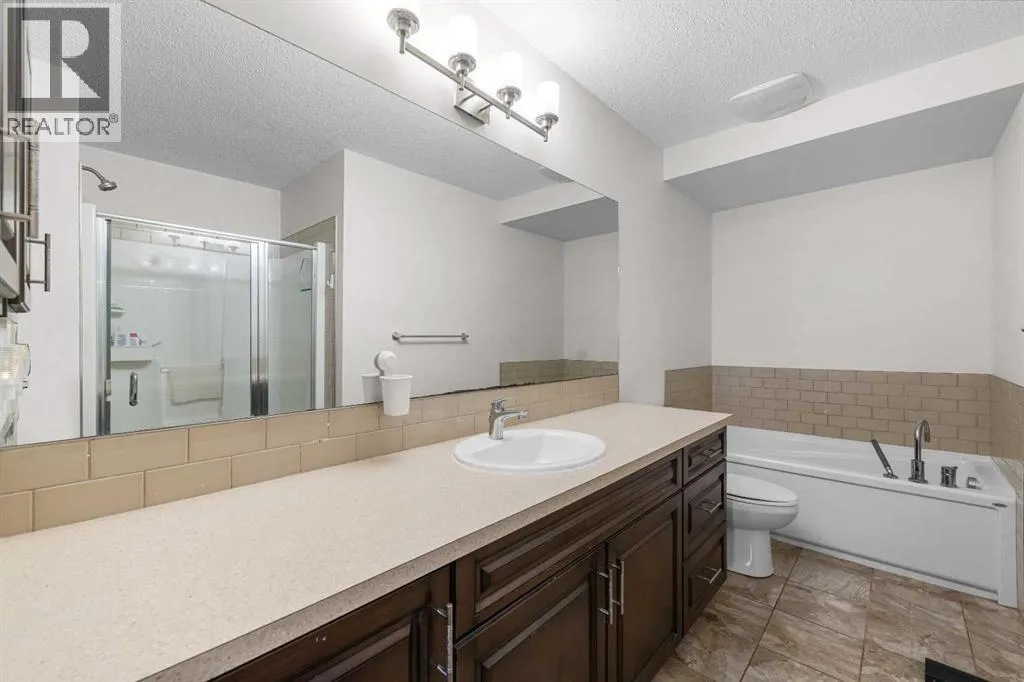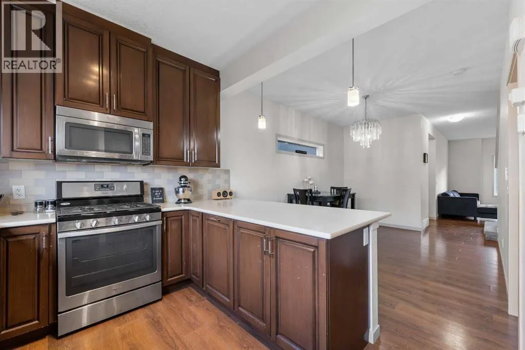 Welcome to the lifestyle youâve been waiting forâwhere comfort, function, and community come together in perfect harmony. This beautifully maintained and thoughtfully upgraded home(2300+sqft) is nestled on a quiet, tree-lined street in the highly sought-after lake community of Mahogany. Surrounded by young families and just minutes from the wet lands, beach club, shopping, dining, schools, and parks, this is the kind of place where memories are made. From the moment you arrive, the curb appeal sets the toneâwith a gorgeous landscape framing the front yard and a charming front elevation that welcomes you in. Step inside to discover a sunny, open-concept main floor with 9 feet ceilings designed for everyday living and easy entertaining. The front living room is bright and spacious, featuring oversized windows and a cozy electric fireplace framed by an exceptional media consoleâa perfect spot to gather and unwind. Centrally located, the dining room can comfortably fit a large table and sits beneath a modern light fixture, seamlessly connecting the living room to the heart of the home: the U-Shaped Gourmet kitchen. With dark brown cabinetry, white quartz countertops, a stylish mini brick subway backsplash, stainless steel appliances, and a sleek microwave hood fan, this kitchen checks all the boxes. LED lights and rich LVP floors run throughout the main floor, adding warmth and elegance. Tucked away just off the stairs, youâll find a smart and efficient pocket officeâthe ideal space for a home office, study area, or creative studioâproviding flexibility for todayâs work-from-home lifestyle.Upstairs, the primary bedroom is a peaceful retreat with a generous walk-in closet, and a spa-inspired ensuite featuring a soaker tub and a walk-in shower. Two additional bedrooms overlook the nicely landscaped backyard and are serviced by a full bathroom and a convenient upper floor laundry room. Downstairs, the professionally developed, fully legal basement suite offers incredib le flexibility with a separate entrance, two bedrooms plus an additional den, a modern kitchen, private laundry, and a full bathroomâideal for multigenerational living, guests, or income potential. Step outside and enjoy a two-tiered backyard experience: a raised deck for BBQs and lounging, and a lower fully fenced and landscaped yard ideal for evening fires or summer dinners under the stars. Additional outdoor features include an oversized double detached garage with storage trusses above, giving you even more benefits.This home offers a functional floor plan with features that blend timeless style & modern convenience. Whether itâs the prime location close to the lake, schools & all amenities, the mature street setting, or the cozy, inviting interiorsâthis one is truly special. Itâs the perfect blend of luxury, lifestyle, & investment potentialâall in one of Calgaryâs most prestigious lake communities. Donât miss the chance to make it yours (id:27476)