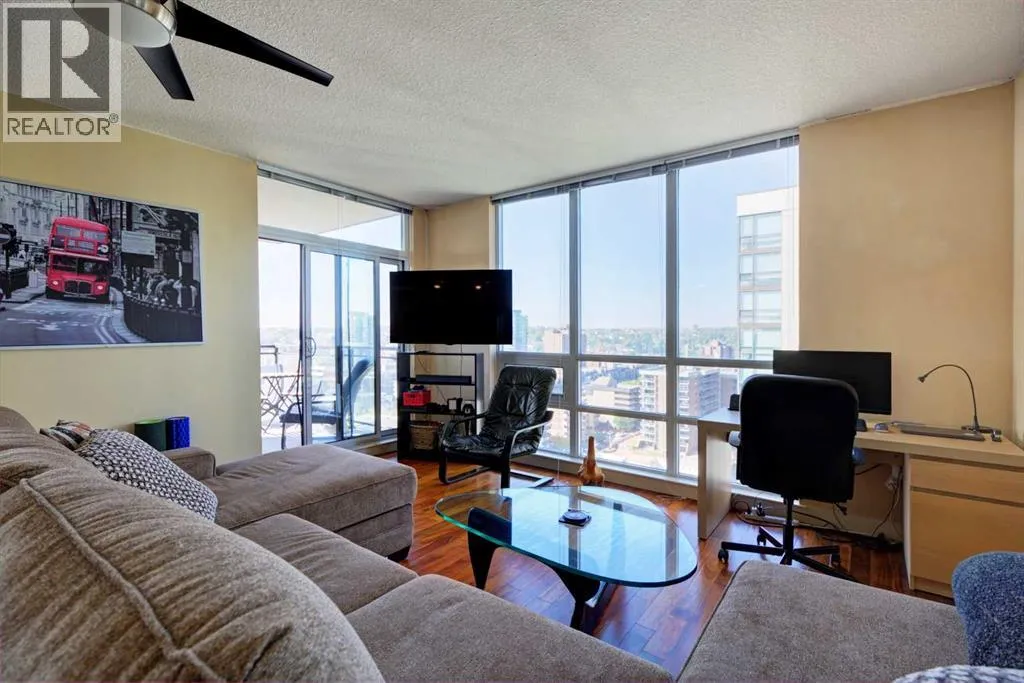 Welcome to this stunning CORNER unit in the heart of the Beltline featuring 2 bedrooms, 2 bathrooms, A/C and a titled underground parking stall (stall is a larger one at the end of a row and is close to the elevator) . Located in the sough-after Stella Nova, this is downtown living at its finest - with countless amenities just steps away including restaurants, pubs, grocery stores, pharmacies and banking services. Commuting is a breeze with transit options, cycle tracks and pathways right out side the door. Residents of Nova enjoy a wide range of amenities including a fully equipped gym with steam sauna, lounge, bicycle storage room, central courtyard, secured underground parkade, visitor parking and guest suites. To top it off this is a pet friendly building (with board approval) with parks, green spaces and an off leash area just 2 blocks away.Inside the unit you're greeted by a bright and spacious entryway with plenty of room to greet guests, durable tile flooring and a large coat closet to tuck away outdoor gear. The open concept kitchen, living and dining area is filled with beautiful natural light and features neutral paint tones and beautiful hardwood flooring. The kitchen is an entertainers dream with quartz countertops, a large island with plenty of seating, a GAS COOKTOP, built-in oven, Fisher and Paykel refrigerator, Bosch dishwasher and an abundance of cupboard space. A versatile built-in quartz counter adjacent to the kitchen makes the perfect coffee station, desk or dry bar. The living room has amazing views and access to a private southwest-facing corner balcony - this is a gorgeous spot for enjoying morning coffee and evening cocktails. The primary bedroom boasts floor to ceiling windows (more beautiful sunshine!), a walk-through closet, and a luxurious 5-piece ensuite complete with tiled surround soaker tub, quartz vanity top and undermount sink. The second bedroom has ample closet space and floor-to-ceiling windows on BOTH SIDES with fantastic vie ws. There is a second 3-piece bathroom nicely tucked away from the main area featuring an oversized shower with tile surround and a modern glass vanity top. Completing the unit is a large laundry room with full sized stacked washer/dryer and plenty of storage and shelving.BONUS - All household items, furniture (brand new couch and mattress!), kitchen wares etc. are negotiable!!This building is fully equipped with a 24/7 fire monitoring system, 24/7 security/building concierge service for resident assistance, as well as a site office open Monday to Friday during business hours. Happy viewing! (id:27476)