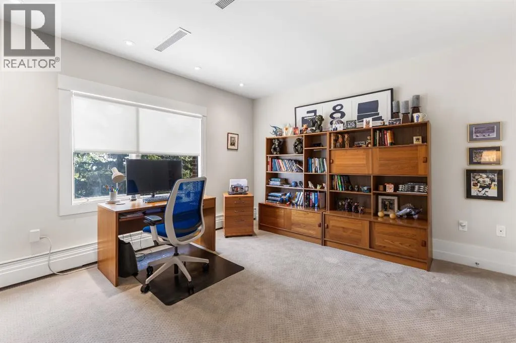 Enjoy unrivalled panoramic mountain & reservoir views from this expansive 2-bedroom plus den, 2-bath condo, offering over 2,000 sq. ft. of thoughtfully designed living space in an intimate 10-unit building in coveted Eagle Ridge! This spacious & airy home features hardwood floors & an abundance of natural light, highlighting the living roomâs triple-pane picture windows, tray ceiling & feature fireplace. The living room seamlessly connects to the dining area that provides ample space for family gatherings or elegant dinner parties. Just steps away, the well-appointed kitchen boasts granite countertops, ample storage, stainless steel appliances, & cozy breakfast nook. A walk-in laundry area with countertop space adds convenience. A private den/family room with balcony access is tucked away just off the living roomâan ideal work-from-home space with more breathtaking reservoir views. The primary retreat features a walk-in closet & luxurious 5-piece ensuite with dual sinks, separate vanity, tranquil soaker tub & walk-in shower. A generously sized second bedroom and 3-piece bath provide comfortable accommodations for guests. Additional highlights include a custom-made unit entry door, TWO UNDERGROUND PARKING STALLS, an assigned storage room, self-contained guest suite & an ultra-convenient elevator that takes you directly to your front door. The prime location canât be beat with Heritage Park & Glenmore Reservoir pathways minutes away, plus amenities such as shopping at Glenmore Landing, schools, public transit & Rockyview Hospital. Enjoy easy access to 14th St, Heritage Drive & Glenmore Trail. (id:27476)