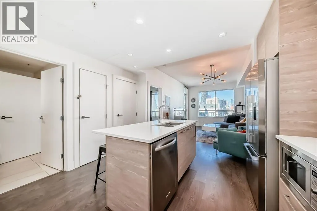 Welcome to this stylish west-facing 1-bedroom, 1-bathroom condo offering stunning downtown views, ideally located just steps from the C-Train. Whether you're a first-time homebuyer or an investor, this property presents an exceptional opportunity â currently operating as a successful short-term rental with a 30-day minimum stay.The condo comes fully furnished, with all modern and thoughtfully selected decor included in the sale, making it completely move-in or rental ready. Inside, you'll find a bright and open floor plan that seamlessly connects the living area to a sleek, modern kitchen featuring stainless steel appliances and contemporary cabinetry.Comfort is enhanced with central air cooling, and convenience is at your fingertips with an underground parking stall and a storage locker. The building offers a well-rounded lifestyle with exclusive access to a fully equipped gym, a beautifully designed party room, a comfortable guest suite for visitors, a dog wash station, and a community garden for those with a green thumb. This home effortlessly combines style, comfort, and location â just minutes from the heart of downtown. Donât miss your chance to own this turnkey gem. Call today for your private showing! (id:27476)