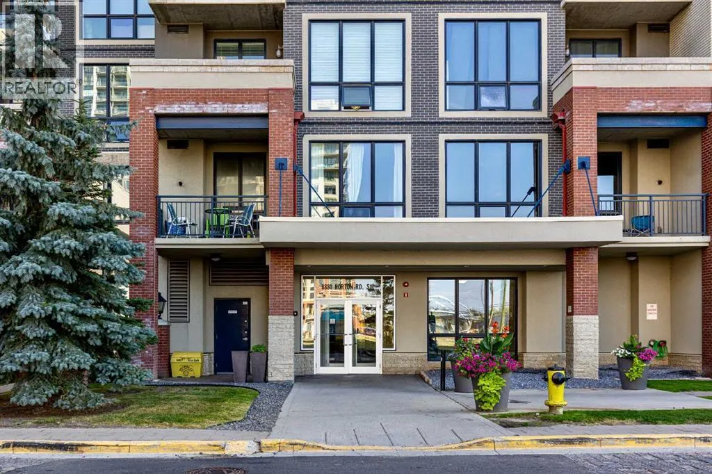 Welcome to Unit 607 â 8880 Horton Road SW, a spacious and sun-filled 2-bedroom, 2-bathroom Dover model in the sought-after London at Heritage Station high-rise community. Offering 969 sqft of well-designed living space (iGuide measured), this move-in ready, vacant unit is perfect for both first-time home buyers and savvy investors looking for unmatched convenience and rental potential in Calgaryâs southwest. The open-concept floor plan features large windows in every room, flooding the space with natural light and offering a bright, airy feel throughout. The kitchen is both functional and stylish, complete with granite countertops, full-height tile backsplash, dark maple cabinetry, and a raised eating bar â ideal for everyday meals or casual entertaining. Step out onto your private balcony equipped with a gas line for BBQs and enjoy quiet evenings overlooking the vibrant urban surroundings.The primary bedroom includes a 4-piece ensuite, while the second bedroom offers flexibility as a guest room, office, or shared living space. In-suite laundry with a stacked washer/dryer adds everyday convenience, and the unit comes with 1 assigned underground parking stall in the secure parkade. Unique to London at Heritage Station, each unit features its own hot water on demand heating system, meaning residents only pay for what they use â a major efficiency and cost-saving benefit, with all utilities individually metered.This pet-friendly, concrete high-rise offers 24/7 security and concierge services, promoting a safe and welcoming environment for owners and tenants alike. Residents also enjoy exclusive access to the newly renovated rooftop terrace and sunroom on the 17th floor â a perfect retreat with stunning downtown skyline and mountain views. Unbeatable location: directly connected to Save-On-Foods via a heated parkade and just steps from Tim Hortons, boutique shopping, dining, and direct access to the Heritage C-Train Station via pedestrian bridge â making commuting d owntown or anywhere in the city a breeze. These well-managed condos offer some of the best value in Calgary with strong rental demand and everyday amenities right at your doorstep. Quick possession available â donât miss your chance to own in one of Calgaryâs most connected communities! (id:27476)