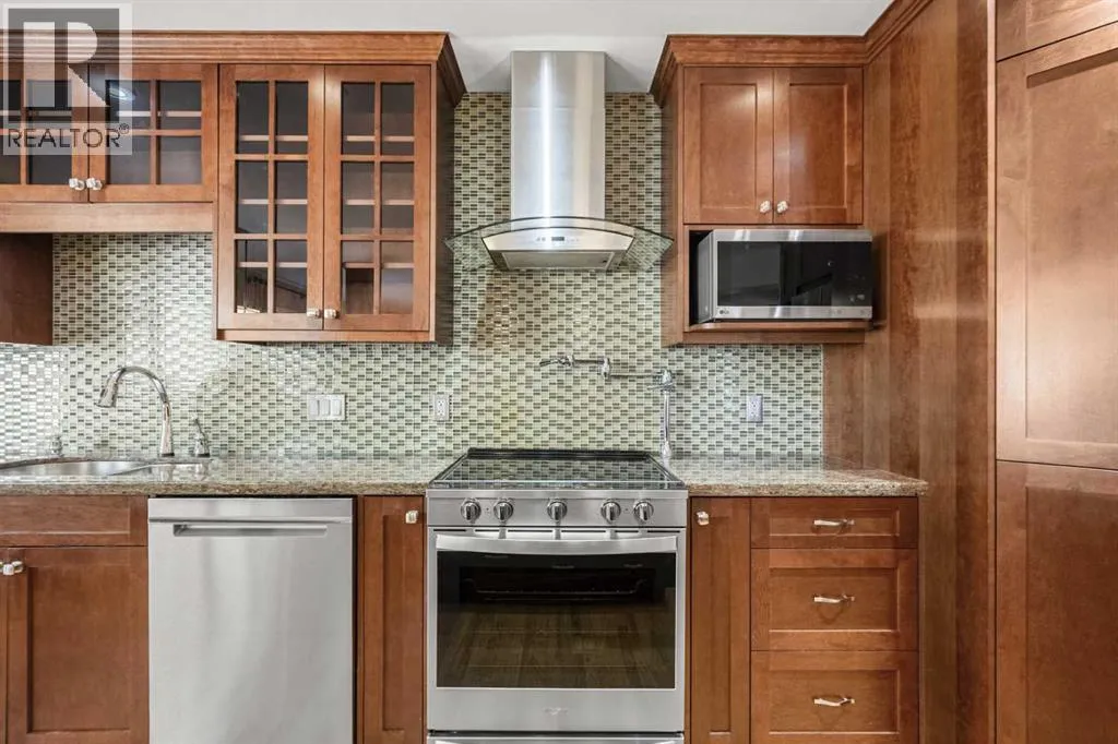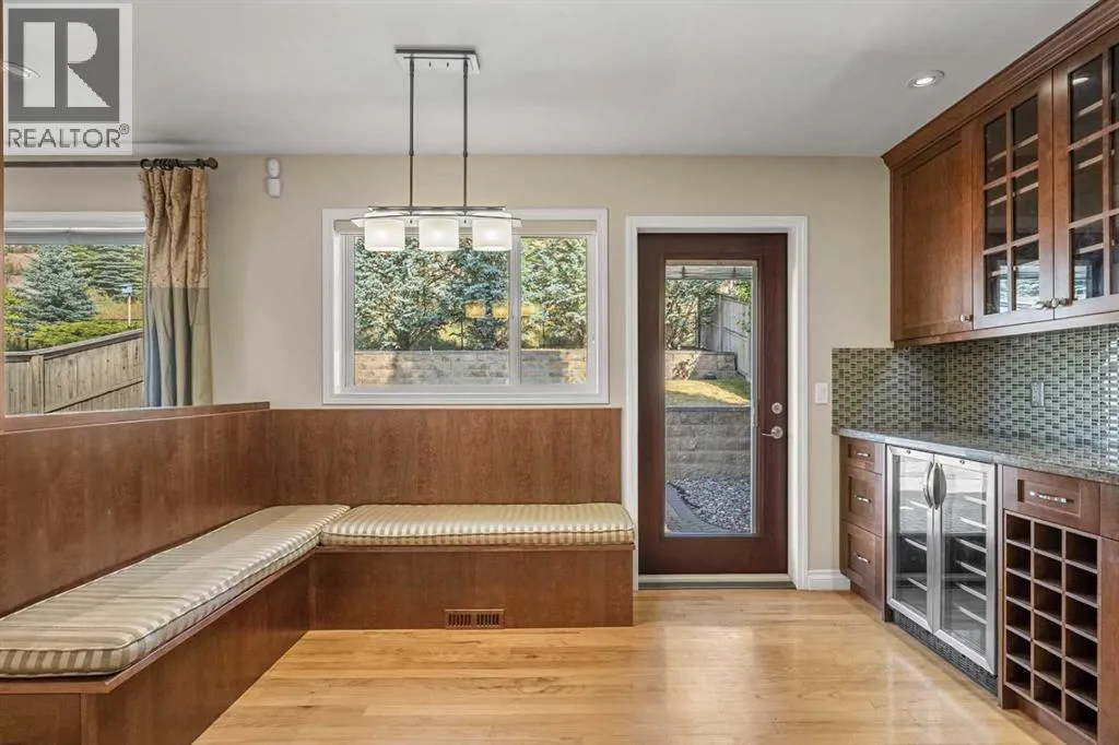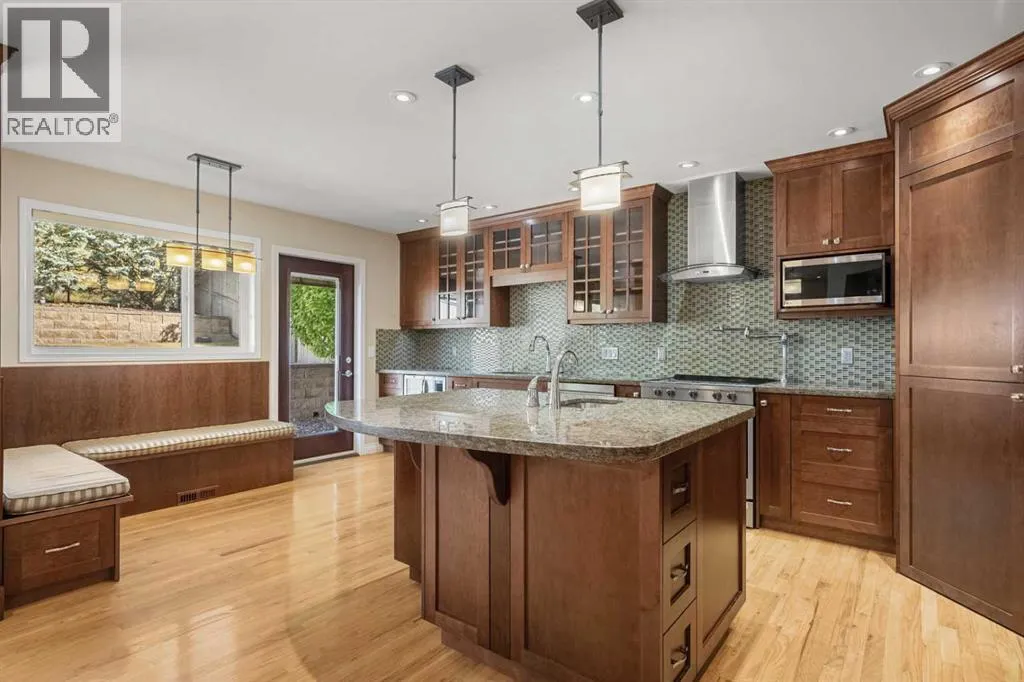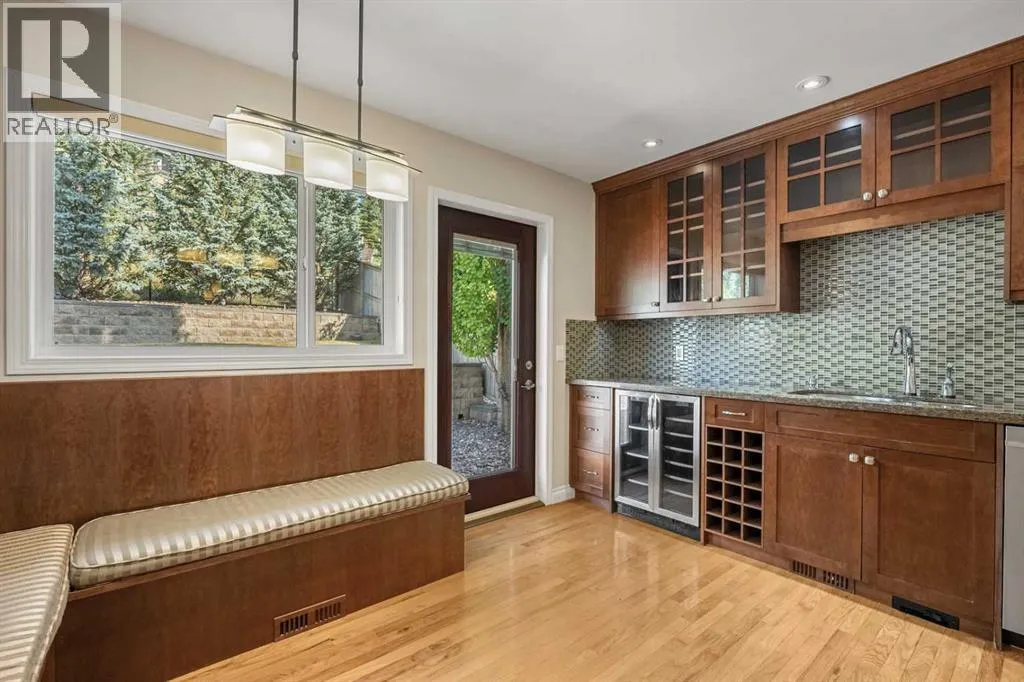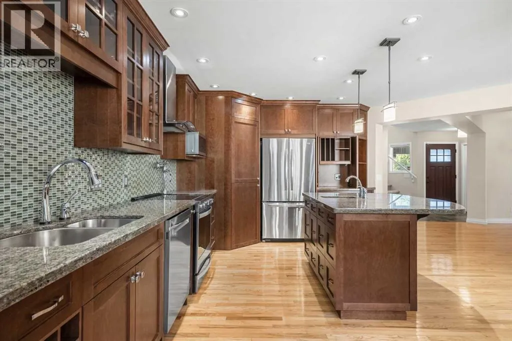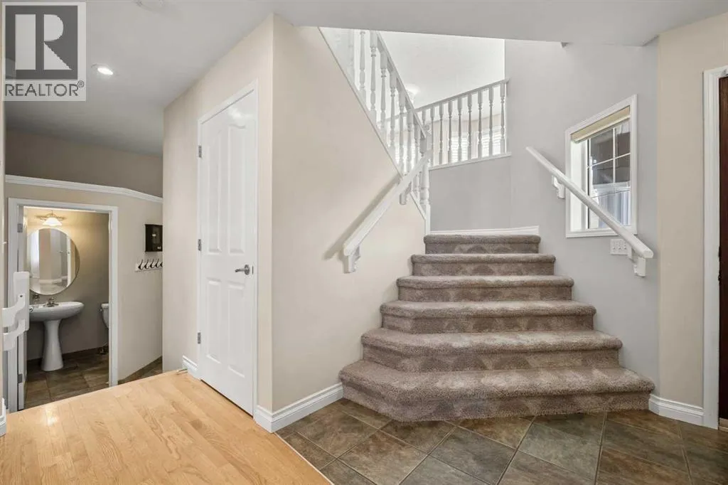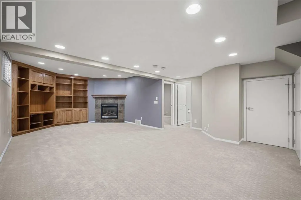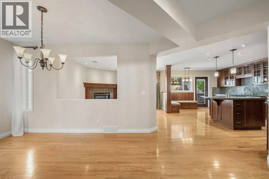 *** $30,000 PRICE IMPROVEMENT!!! *** Exuding timeless elegance and modern refinement, this meticulously renovated Jayman-built residence in the prestigious community of Springbank Hill offers over 2,600 sq.ft. of beautifully curated living space with 4 bedrooms and 3.5 baths. A custom front door opens to a welcoming tiled foyer, where hardwood floors set the tone for the homeâs luxurious interiors. To one side, a formal dining room flows seamlessly into a spacious living area, anchored by a granite-surround gas fireplace with bespoke wood mantle. The showpiece of the main floor is the exquisitely updated chefâs kitchen, showcasing full-height custom cabinetry, a built-in wine fridge and rack, coffee bar, spice drawers, sheet pan storage, Delta touch faucet, electric range stove with pot filler, and a thoughtfully expanded corner pantry with maximized shelving. A large kitchen island with secondary vegetable sink provides additional storage and seating, while the built-in banquette (with pull out storage) breakfast nook adds charm and functionality. Tucked discreetly away is a built-in office space with folding doors, alongside hidden bins for compost, garbage, and recycling. From here, step outside to the professionally landscaped backyard featuring stonework, retaining walls, a gas line for BBQs, with direct access to a scenic walking path. A powder room, laundry room, and extra storage complete the main floor. Upstairs, a sun-drenched south-facing bonus room, with custom wooden shutters, offers the perfect retreat for family movie nights. Two secondary bedrooms with custom built-in closets and wooden shutters share a newly renovated bathroom with heated floors, expanded counter space, and abundant storage. The tranquil primary suite overlooks the manicured yard and boasts a walk-in California Closet, wooden shutters, and a spa-inspired ensuite with heated floors, an oversized glass shower, standalone tub, and custom vanity storage. The fully finished basement is b rightened by expanded windows and features a spacious games area, a second family room with fireplace, a large guest bedroom with egress window, and a full bath. Even the under-stair storage is finished and lit, doubling as the perfect childrenâs hideaway or play space. Additional highlights include Hunter Douglas blinds, designer Hubbardton Forge lighting, built-in vacuum, Kinetico water softener, humidifier, and central A/C. Recent updates ensure peace of mind, including a newer hot water tank (2018), dishwasher (2021), washer/dryer (2019), and NO Poly-B plumbing. This is an exceptional opportunity to own a fully upgraded, move-in ready home in one of Calgaryâs most coveted communities! (id:27476)