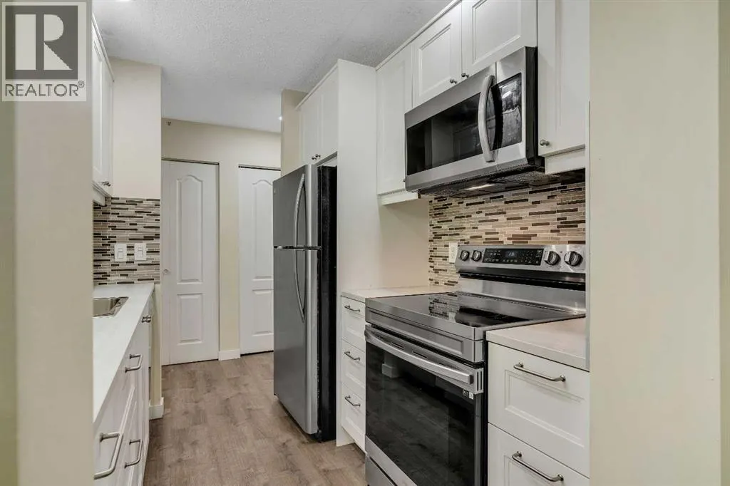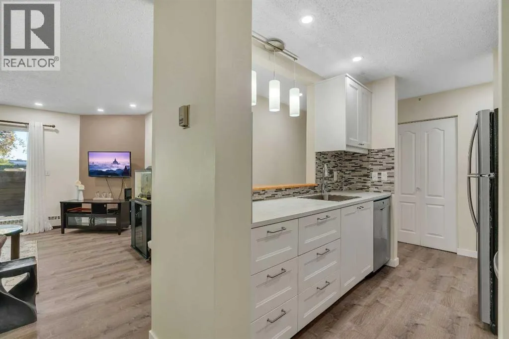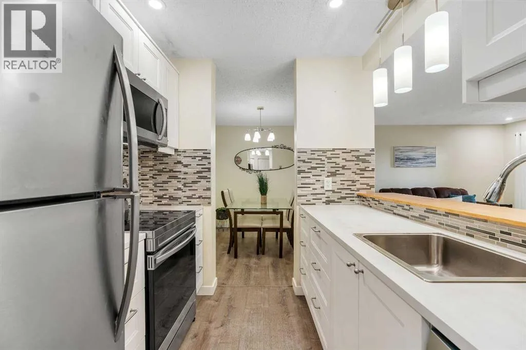 Step into comfort and convenience with this well-appointed ground floor unit in the Pointe of View complex in Dover. Designed for practical living, the home opens into a bright and functional kitchen freshly updated in 2022. With an installed breakfast bar, new cabinetry and dimmable lights, this space is perfect for everyday cooking or entertaining guests. The open-concept layout connects seamlessly to a spacious dining and living area, where large patio doors bring in natural light and lead to your own private outdoor space. Two generously sized bedrooms offer excellent closet space and bright windows, while a freshly updated bathroom (2022) adds a modern, refreshed feel. With a walk-in shower, and new sink/toilet, the bathroom provides peace of mind. A large in-suite laundry/storage room adds to the functionality of the unit. Durable vinyl plank flooring flows throughout the main living areas, and your assigned parking stall is just steps away for added convenience. Condo fees cover several amenities, making this an easy property to own and enjoy.Located in the established community of Dover, youâll enjoy quick access to Deerfoot Trail, beautiful parks, walking paths, schools, and shopping. Dover is known for its family-friendly vibe, strong transit connections, and close proximity to downtown Calgaryâmaking it a smart choice for both owners and investors. (id:27476)