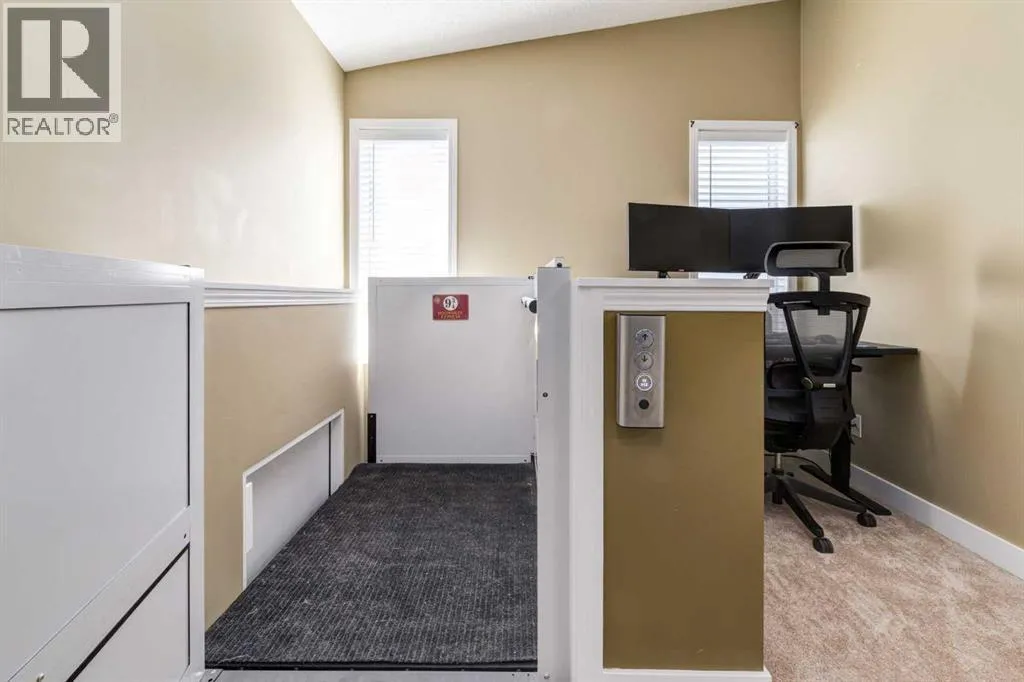 Welcome to this thoughtfully customized 3 bedroom bi-level home, perfectly situated in the family oriented community of Coventry Hills. Designed with comfort and versatility in mind, this unique, one of a kind home offers enhanced accessibility for those that may need; ideal for families who may have individuals with mobility challenges, or seniors seeking stair free living options. Step inside and youâre greeted by a bright, open concept living room featuring soaring vaulted ceilings, expansive windows, and a neutral colour palette that creates a warm and inviting atmosphere. The spacious kitchen includes a generous pantry, a designated dining area, and French doors that open to a large deck; perfect for entertaining or enjoying the fully fenced backyard. This level features a spacious primary bedroom with double closets and direct access to a well appointed 4 piece bathroom. A second bedroom, offers additional comfort and flexibility. What was previously a third bedroom has been converted into a dedicated office space and is equipped with a Vertical Platform Lift; providing convenient access to both the garage (featuring a widened door jamb) and the fully developed lower level. To support individuals with accessibility; the home has three ceiling track systems - one located in the upper level bathroom and two in the lower level. The lower level offers exceptional additional living space, showcasing a spacious recreation room with a cozy gas fireplace, a third bedroom and a 3 piece bathroom. A dedicated laundry area and generous storage further enhance the homeâs practicality. This level also includes a separate games/playroom, which offers great flexibility and could be converted into a fourth bedroom to suit your familyâs needs. Numerous recent upgrades, include new shingles (2025), furnace (2023), central air conditioning (2023), 100 AMP electrical panel (2023) and hot water tank (2019). Located in a vibrant, family friendly community, this home is just minu tes from schools, the VIVO Recreation Centre, and a wide range of shopping and amenities. With quick access to both Deerfoot and Stoney Trail, this move in ready home offers the perfect blend of comfort, convenience, and connectivity. (id:27476)