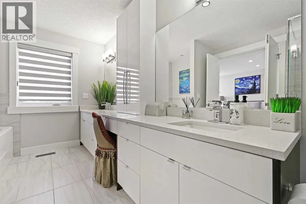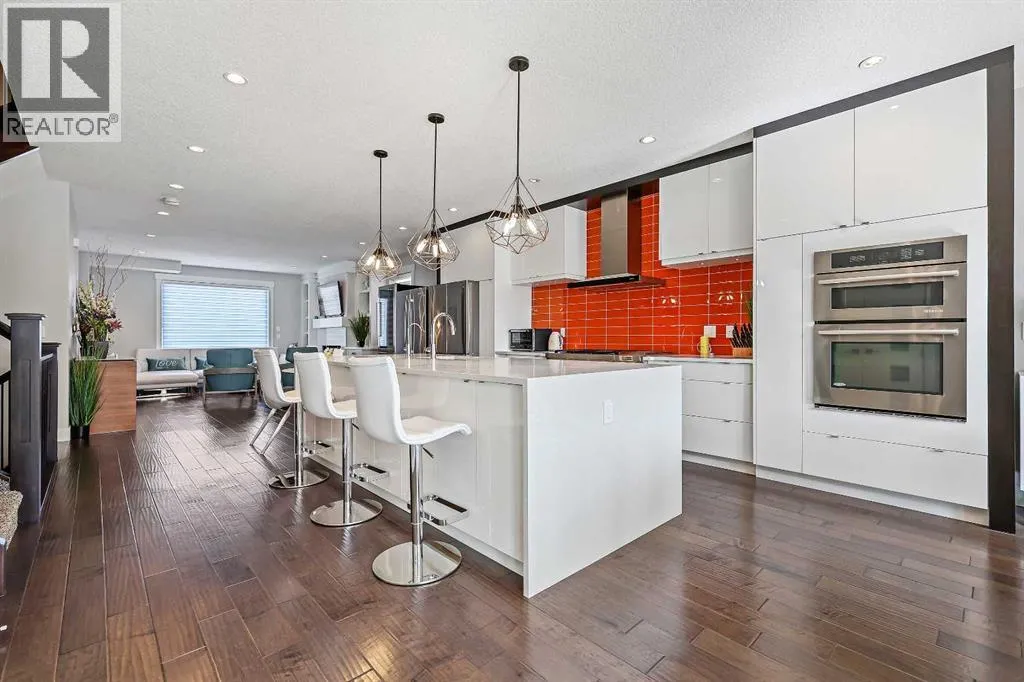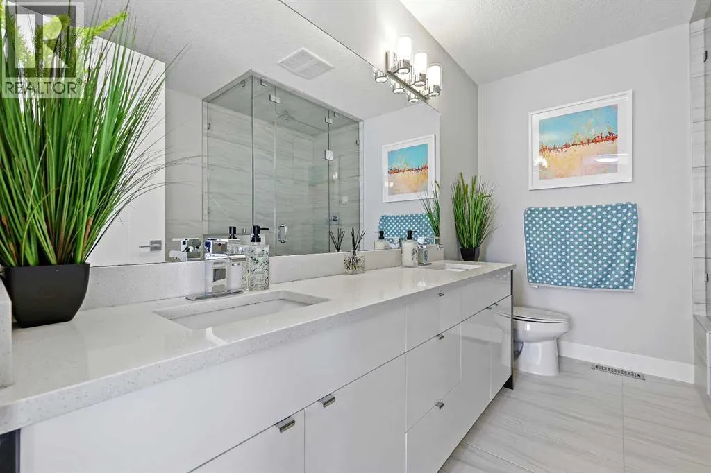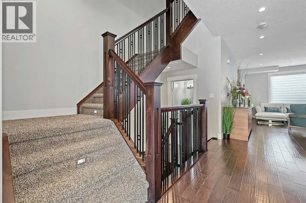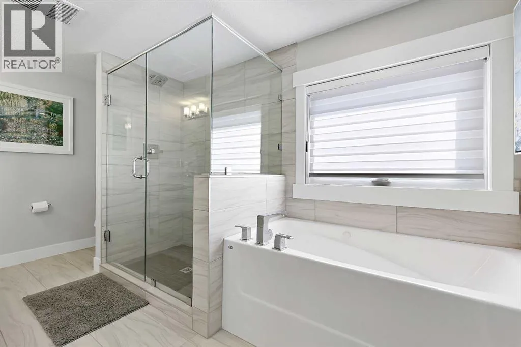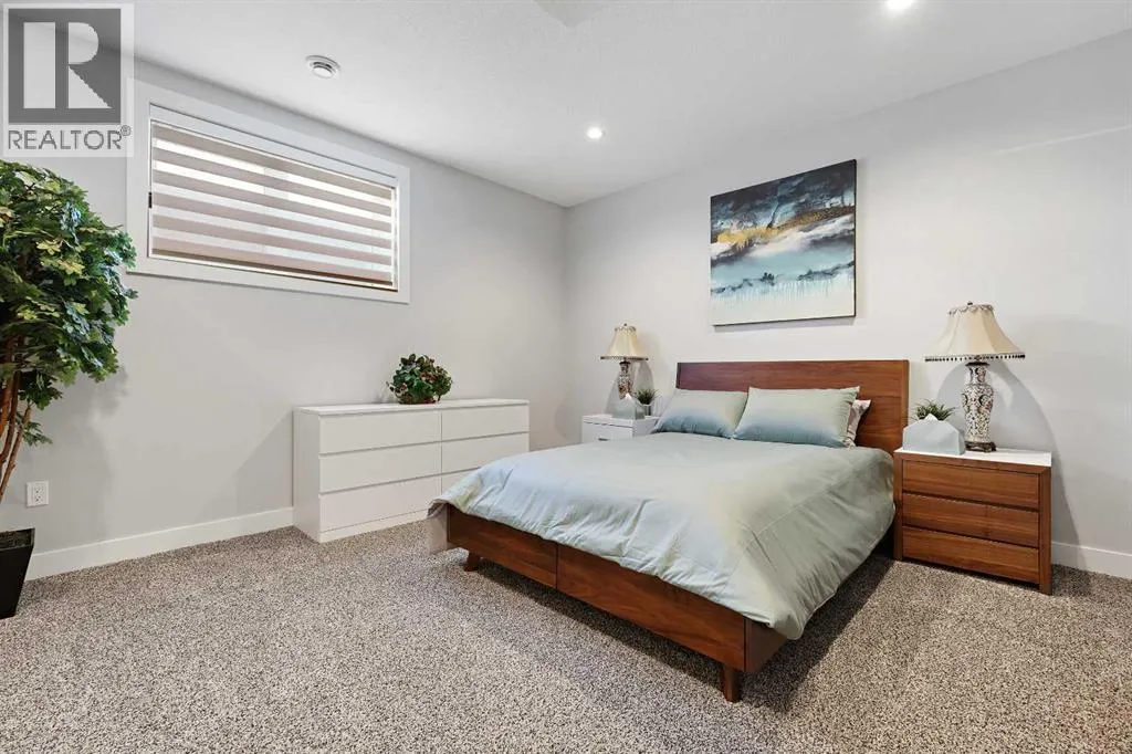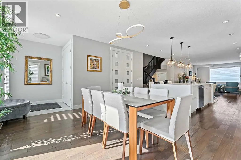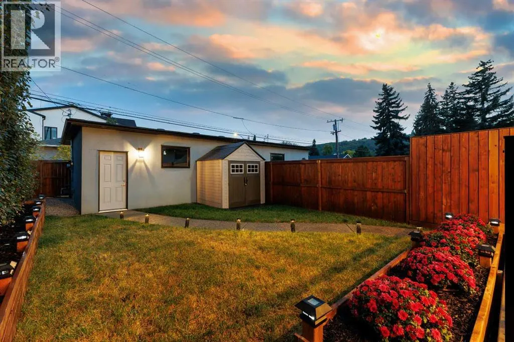 A rare opportunity in Montgomery â semi-detached home stands out with four fully finished levels, nearly 4000 sqft of developed living space, a private balcony, and a long list of premium upgrades. Steps from the Bow River pathway, Shouldice Park, Market Mall, and minutes to both Foothills and Children's Hospital, this location is as connected as it is private. Inside, the home is finished with luxury Canadian maple hardwood on all upper levels, layered lighting (including updated LED fixtures), and fresh paint throughout. The main floor showcases a sleek chef's kitchen with JennAir stainless steel appliances, including a gas cooktop, built-in oven, chimney hood fan, and integrated microwave. A full walk-in pantry, with double doors, and extended island with waterfall quartz complete the space. The spacious living area offers floor-to-ceiling windows and a gas fireplace framed by custom tile. The second level hosts dual primary suites, each with walk-in closets and five-piece ensuites featuring full tile, deep tubs, and separate glass showers. A bonus room with custom built-in shelving and a full laundry room with storage complete this level. On the top floor, a third bedroom, with its own 5 pc ensuite, walk in closet, and dedicated office that's open to a private rooftop balcony with unobstructed views. The fully developed basement includes a fourth bedroom, full bath, in-floor heating, large rec room with wet bar and beverage fridge, and extra storage. Additional upgrades include: newer high-capacity heat pump system, Kinetico water softener, dechlorinator, purified drinking tap, security cameras (x4), dual doorbell cams, Hunter Douglas window coverings and a freshly painted interior. Detached garage and landscaped yard, with a large deck and beautifully tended garden complete the package. (id:27476)