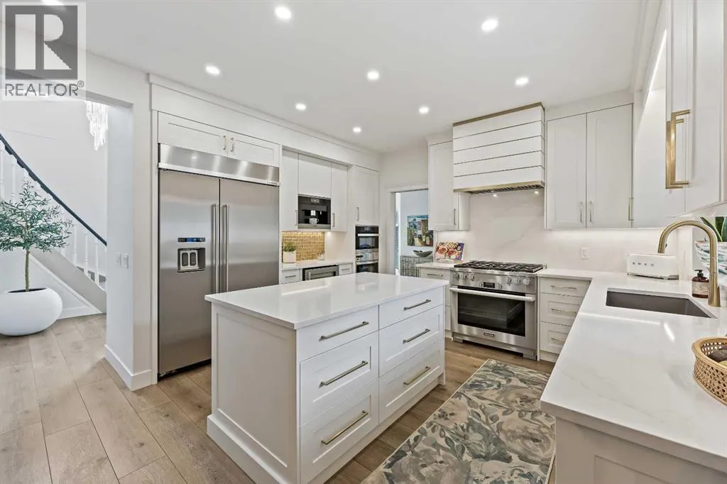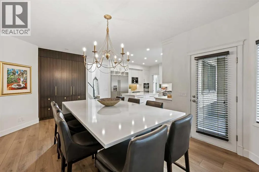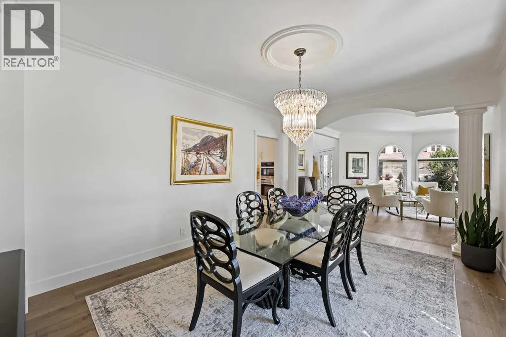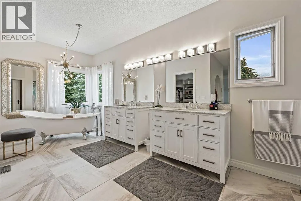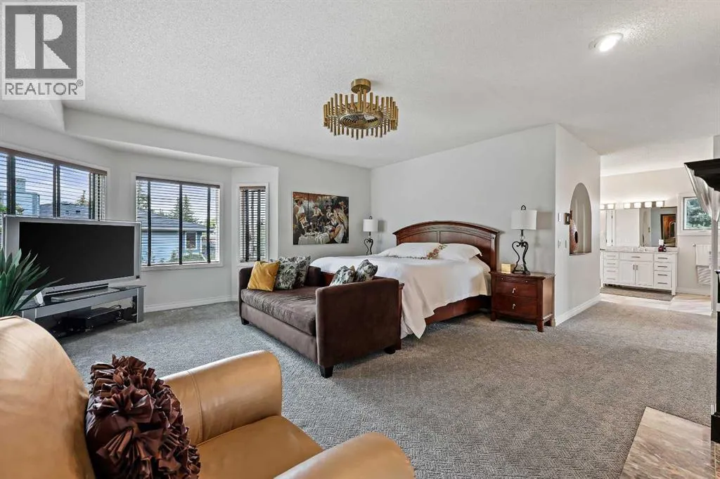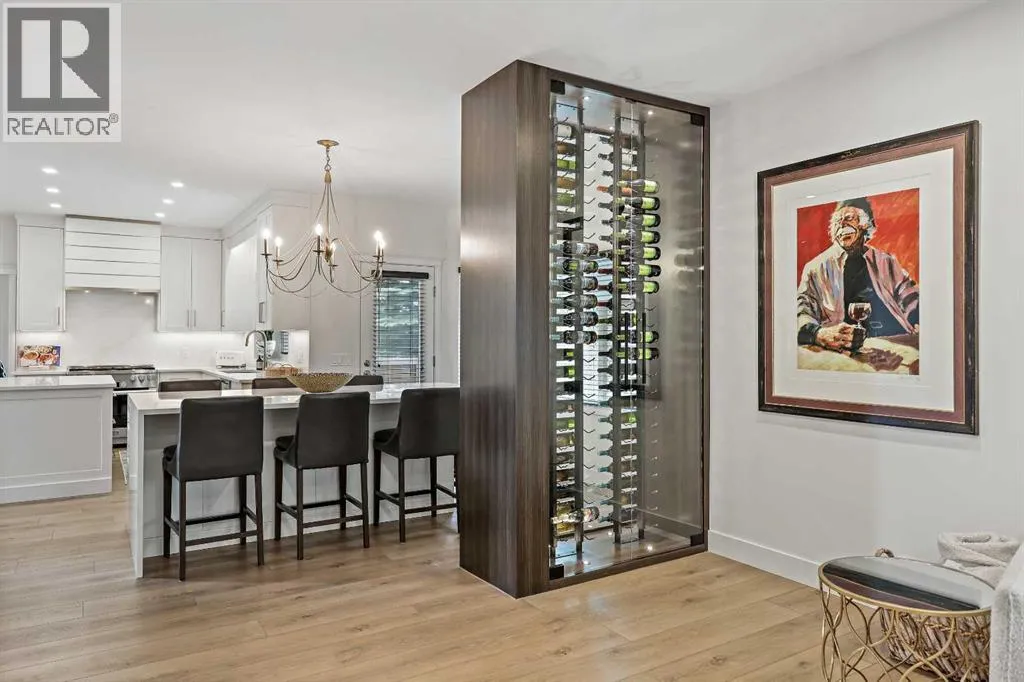 Nestled in the prestigious Uplands at Hawkwood, this custom-built luxury estate has been meticulously renovated, delivering a refined standard of living in one of Calgaryâs most sought-after communities. Located on a serene cul-de-sac corner lot, this home boasts impressive curb appeal with manicured landscaping, a stately oversized triple-car garage, and elegant exterior detailing that sets the stage for what lies within.Step inside the soaring 20-ft foyer, illuminated by a dazzling crystal chandelier, and experience timeless elegance throughout. Gleaming hardwood floors flow seamlessly from the sunlit bay-window living room into a formal dining space framed by crown mouldingâideal for entertaining. A private front-facing executive den provides the perfect work-from-home setting.At the heart of the home is a truly remarkable chefâs kitchen featuring dual quartz-topped islands, a full Miele appliance package including built-in ovens and gas cooktop, an espresso station, a wine fridge, walk-in pantry, and a dramatic floor-to-ceiling glass wine display. The adjacent open-concept family lounge offers seamless access to the west-facing wrap-around new composite deck, ideal for sunset dining and year-round enjoyment.Upstairs, the primary suite is a relaxing retreat complete with a fireplace lounge, a spa-inspired 5-piece ensuite, and a fully customized walk-in dressing room. Three additional bedroomsâone with a private ensuiteâensure space and comfort for family and guests alike.The walkout lower level offers generous living space, featuring a recreation lounge, billiards and theatre area, 5th bedroom, full bath, and a secluded hot tub area tucked under the covered deck. Recent upgrades include two 60-gallon hot water tanks (2024), dual high-efficiency furnaces (2024), an irrigation system, and premium security blinds.Exclusive to Uplands residents is access to the private Uplands Recreation Centre, offering a pool, fitness facilities, and courts for tennis, pickleb all, basketball, and squash. With quick access to John Laurie Blvd and Crowfoot Centre, this is a rare opportunity to own a move-in ready estate home in an exceptional location. (id:27476)
