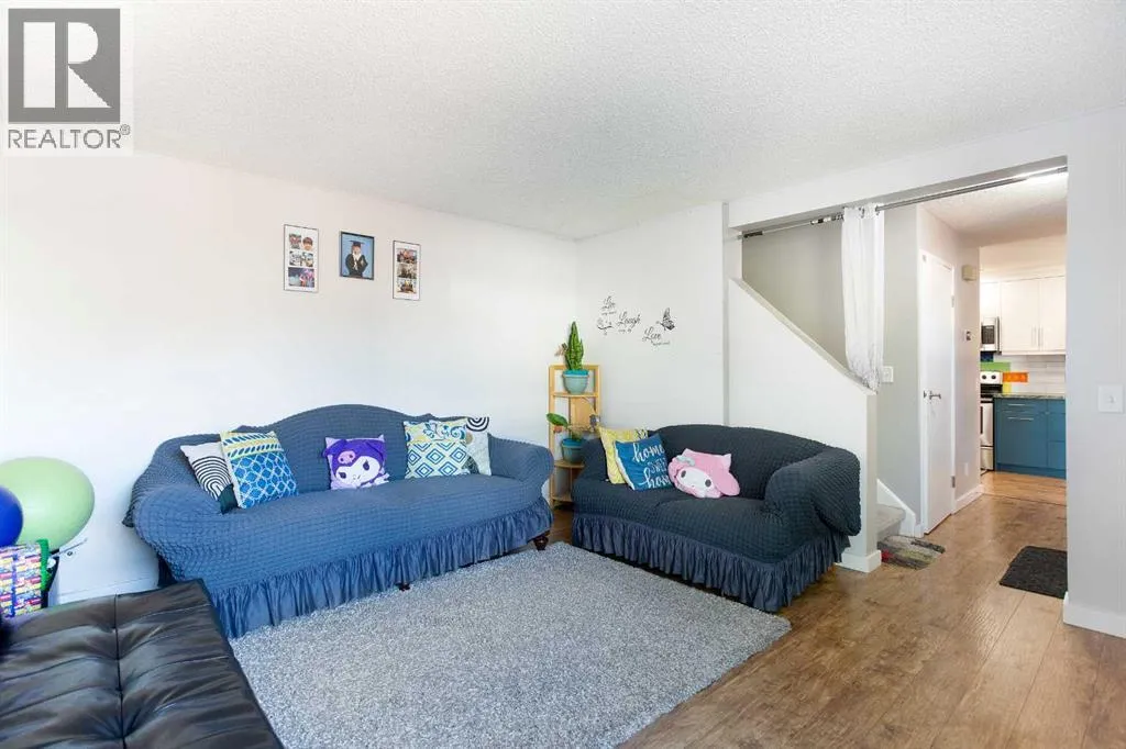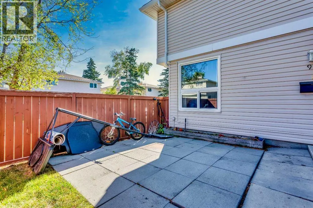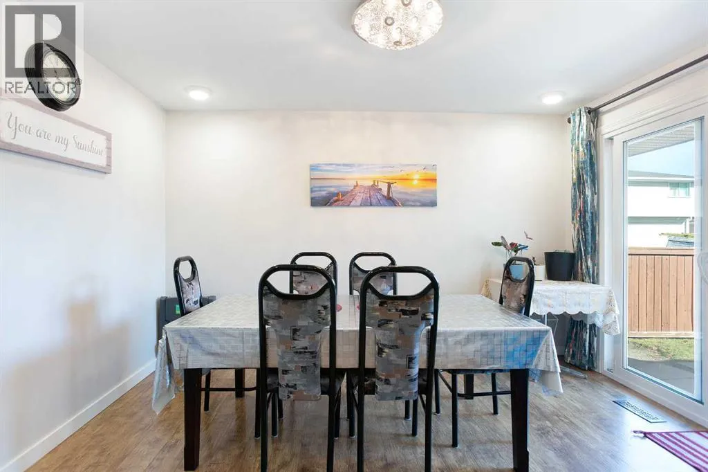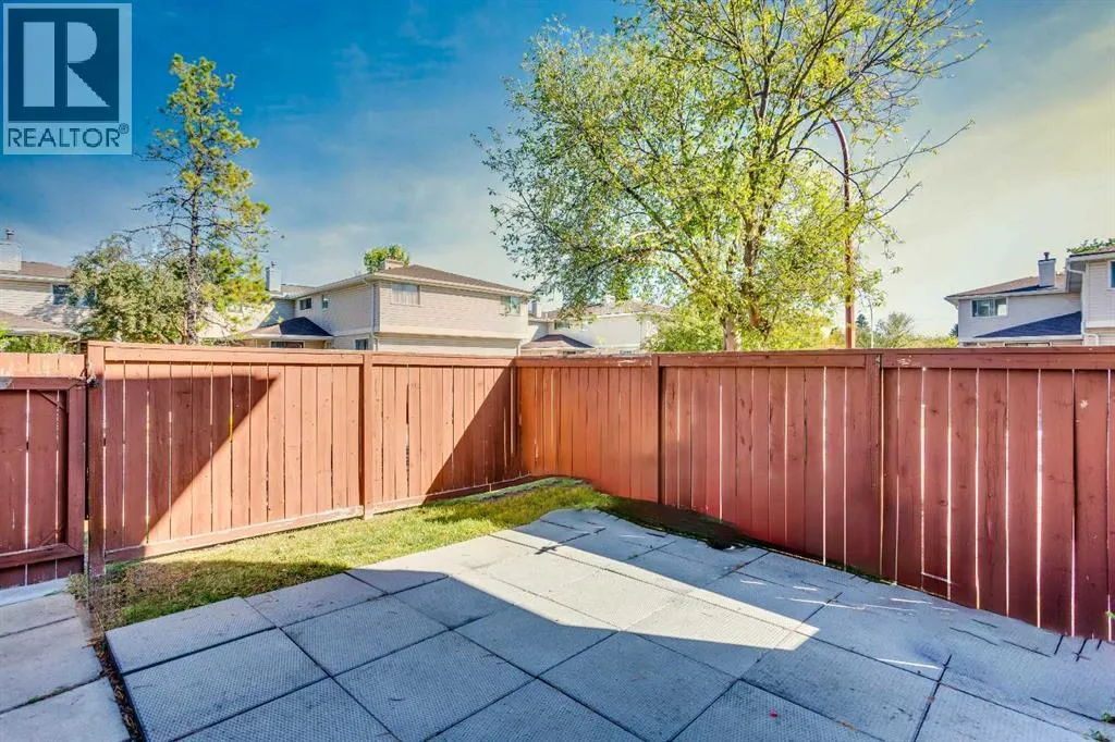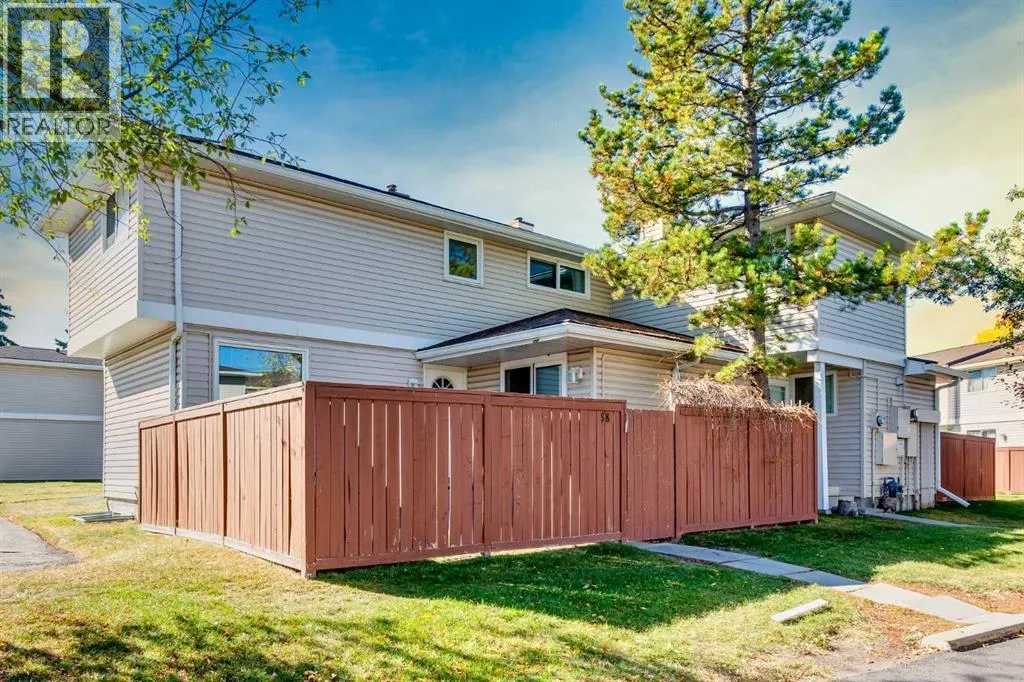 Welcome to Falconridge Estates. This end unit townhome offers an affordable way to stop renting and start building equity. Pride of ownership is clear with many recent improvements including new energy efficient windows throughout and updated laminate flooring on the main level.The refreshed kitchen features stainless steel appliances, custom cabinets, and a stylish backsplash, and opens to a spacious dining area with new sliding patio doors that lead out to the private fenced yard.Upstairs youâll find two generous bedrooms and a full bathroom. The basement adds even more value with an additional permitted bedroom complete with a large egress window, a laundry area, and extra space waiting for future development. This well run complex is close to schools, shopping, and transit, all within walking distance. An assigned parking stall is included, and the fenced yard provides a great outdoor space for kids or adults to enjoy. (id:27476)
