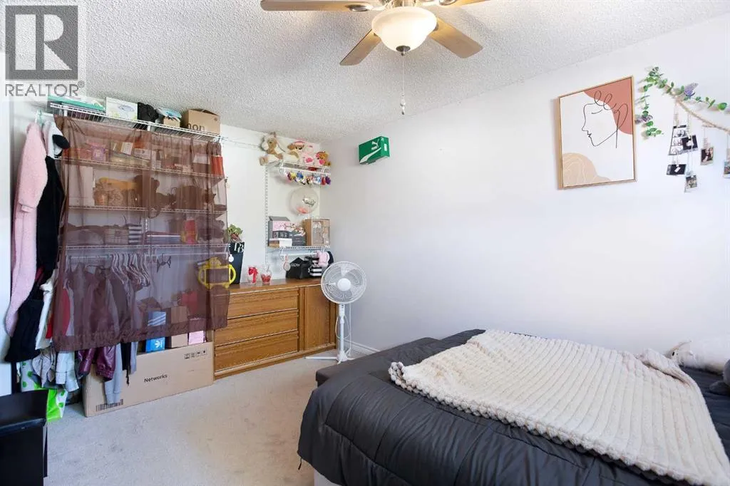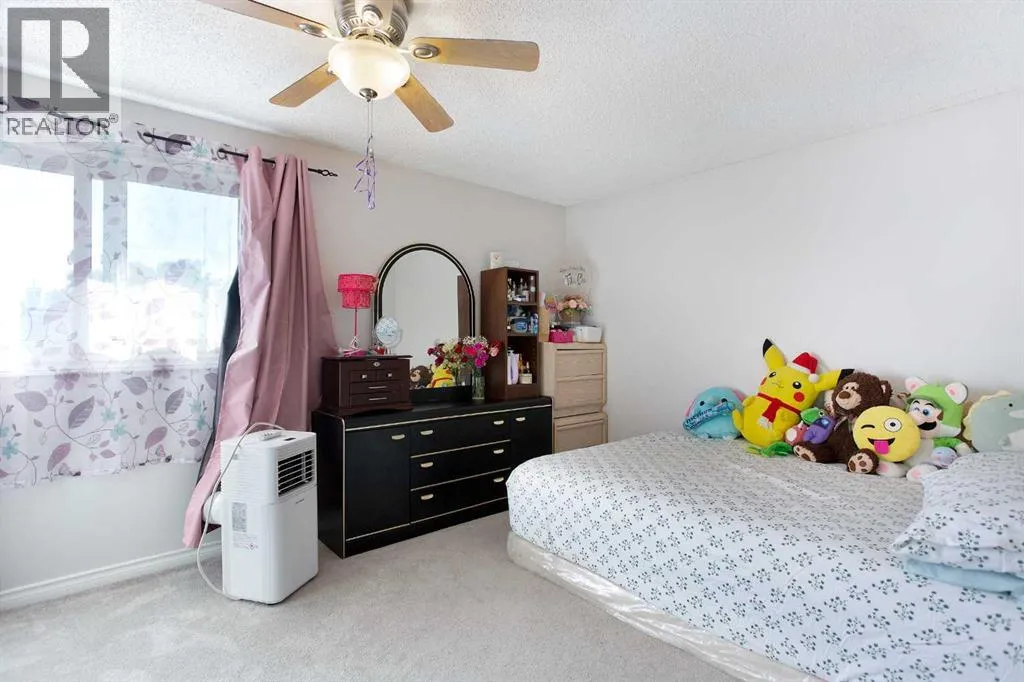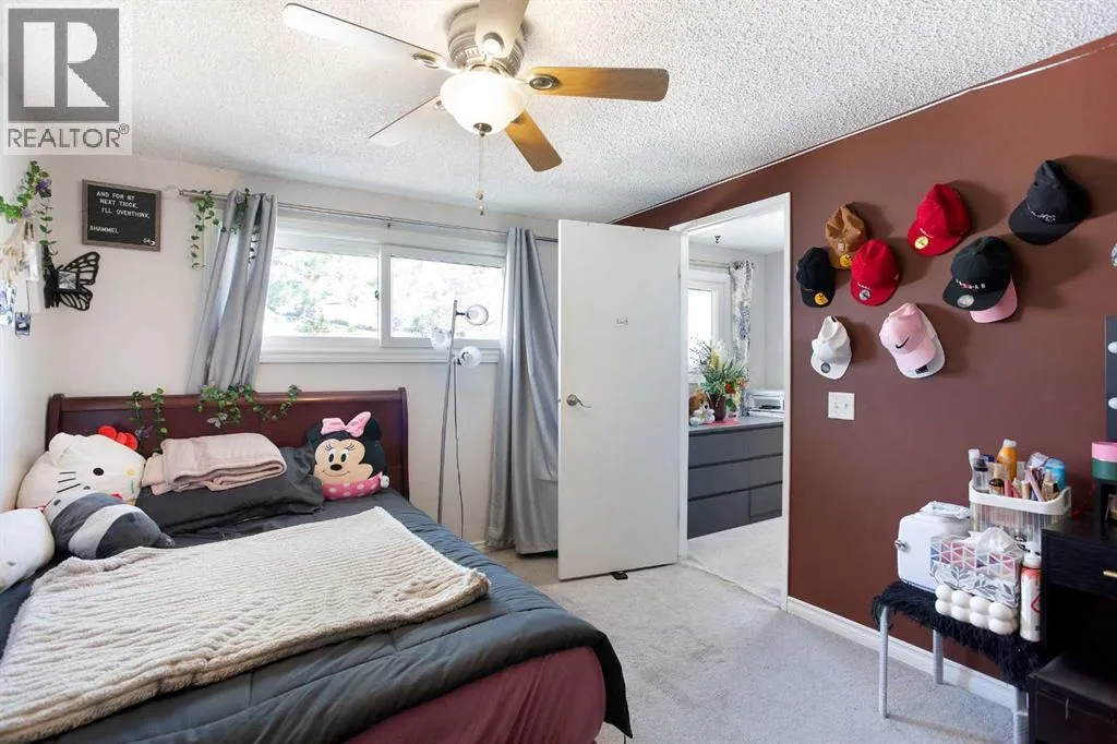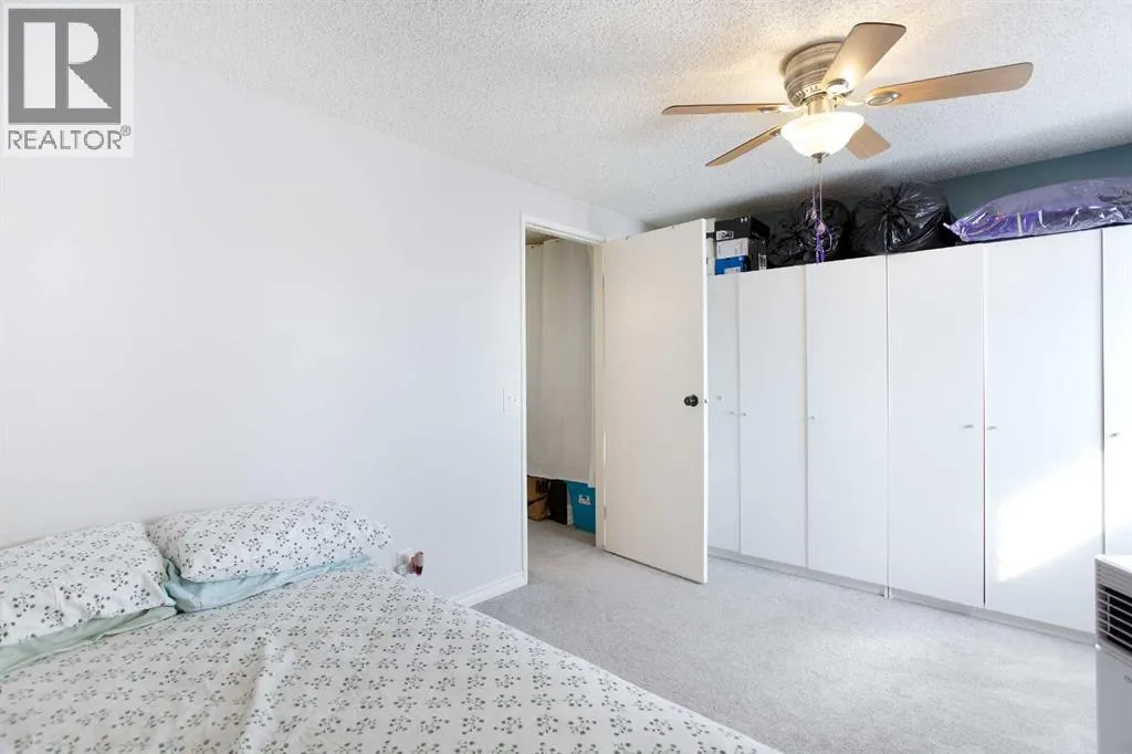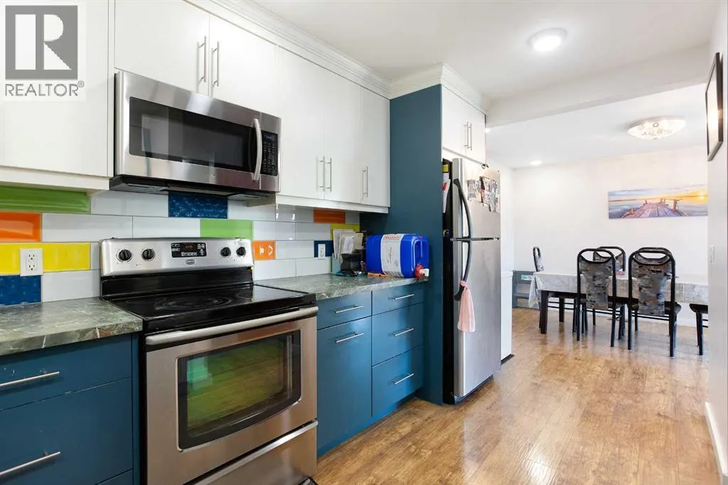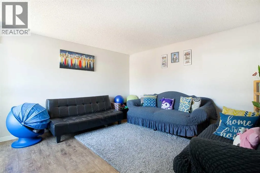 Welcome to Falconridge Estates. This end unit townhome offers an affordable way to stop renting and start building equity. Pride of ownership is clear with many recent improvements including new energy efficient windows throughout and updated laminate flooring on the main level.The refreshed kitchen features stainless steel appliances, custom cabinets, and a stylish backsplash, and opens to a spacious dining area with new sliding patio doors that lead out to the private fenced yard.Upstairs youâll find two generous bedrooms and a full bathroom. The basement adds even more value with an additional permitted bedroom complete with a large egress window, a laundry area, and extra space waiting for future development. This well run complex is close to schools, shopping, and transit, all within walking distance. An assigned parking stall is included, and the fenced yard provides a great outdoor space for kids or adults to enjoy. (id:27476)