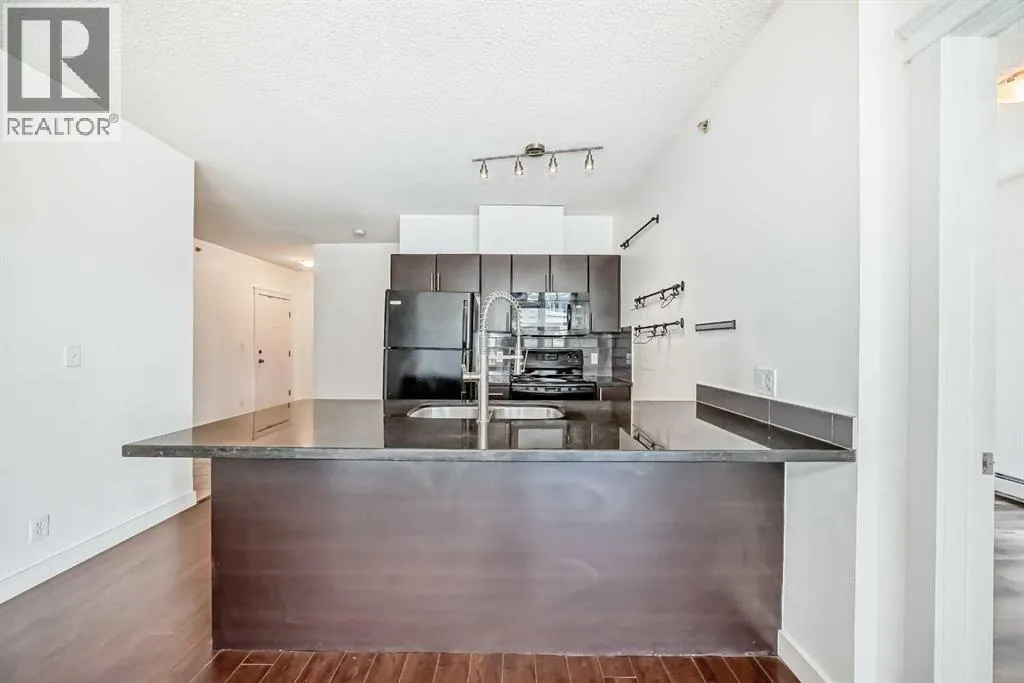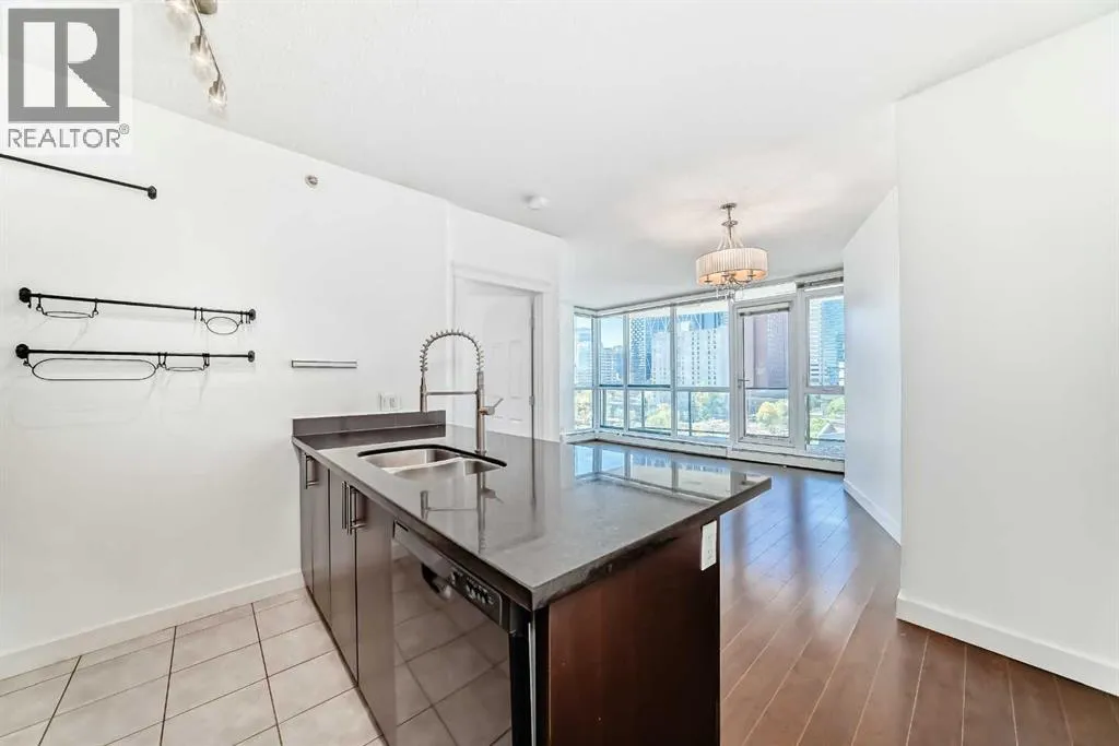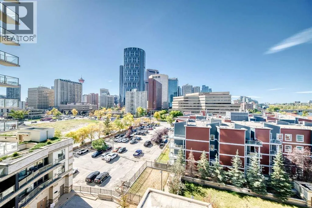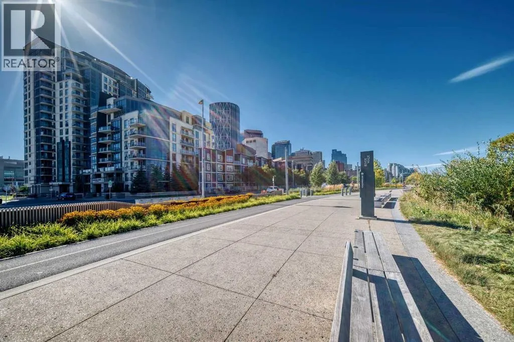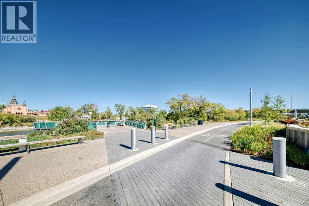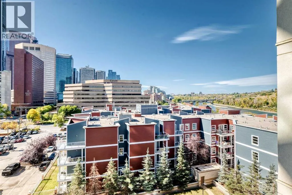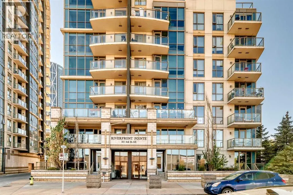 Welcome to Riverfront Pointe! This bright 7th floor west corner suite offers 2 bedrooms, 2 bathrooms + a flex/office area with unobstructed views of the Bow River and Downtown skyline. The open-concept layout features granite counters, designer tile backsplash, black appliances, eating bar, laminate flooring, and floor-to-ceiling windows that flood the home with natural light. The primary bedroom includes a 4-piece ensuite, while the second bedroom and full bath add flexibility for guests or a home office. In-suite laundry adds everyday conveniencBuilding amenities include a fitness centre, landscaped courtyard, concierge service, keyless entry, bike storage, and a titled underground parking stall located just steps from the elevator. Enjoy the ultimate urban lifestyleâwalk to the Calgary Zoo in 10 minutes, City Hall LRT in 2 blocks. Enjoy being steps away from river pathways, parks, Chinatown, Eau Claire, and the best of downtown dining and entertainment.An excellent investment opportunityâprevious tenant paid $2,500/month. Pet-friendly (with board approval). (id:27476)