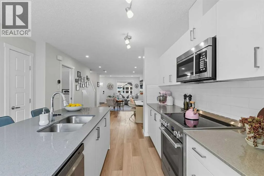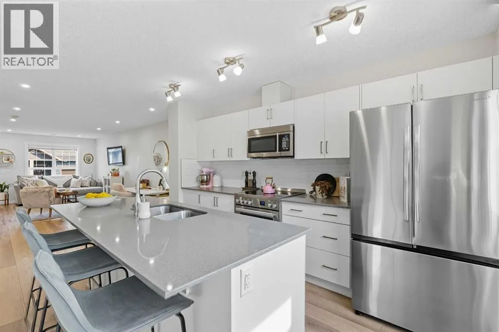 Welcome to your new home in the heart of Cranston Riverstone! This exceptional townhouse offers modern living at its finest. With a bright, sunny interior and pristine condition, it feels fresh and inviting from the moment you step through the door. The expansive living and dining areas create the perfect space for entertaining guests or simply relaxing with loved ones. This area is ideal for a dining area or can be utilized as a bright office space. The main level is enhanced by beautiful luxury vinyl plank flooring throughout, adding warmth and style to the space. At the rear of the home, you'll find a bright kitchen that is sure to impress. It features sleek white cabinetry, elegant grey stone quartz countertops, large white subway tiles, and stainless-steel appliances, including an upgraded refrigerator and dishwasher that offer a touch of sophistication. The large central island and spacious pantry provide plenty of storage and counter space for all your culinary adventures. A convenient 2-piece powder room completes this floor. Upstairs, you'll find two generous bedrooms, each with ample closet space, and two full bathrooms. The primary bedroom includes its own private en-suite, providing a serene retreat. Upstairs laundry facilities make chores a breeze and help keep the living space organized and clutter-free. Located in a prime spot, this townhouse offers easy access to a variety of amenities, including grocery stores and restaurants. For outdoor enthusiasts, enjoy nearby parks perfect for leisurely strolls or outdoor activities. Plus, there's a scenic walkway right behind your home for even more outdoor enjoyment. A true gem in the heart of nature. Your fully fenced southwest-facing backyard offers privacy and a peaceful outdoor space to unwind. And with this complex being pet-friendly, your furry friend will have plenty of room to run and play! Last but not least, the unit boasts a new central AC unit (2024) perfect for year round comfort. Don't miss out on the chance to make this beautiful townhouse your new home. Schedule a showing today and experience modern living at its finest in Zen Riverstone West! (id:27476)
