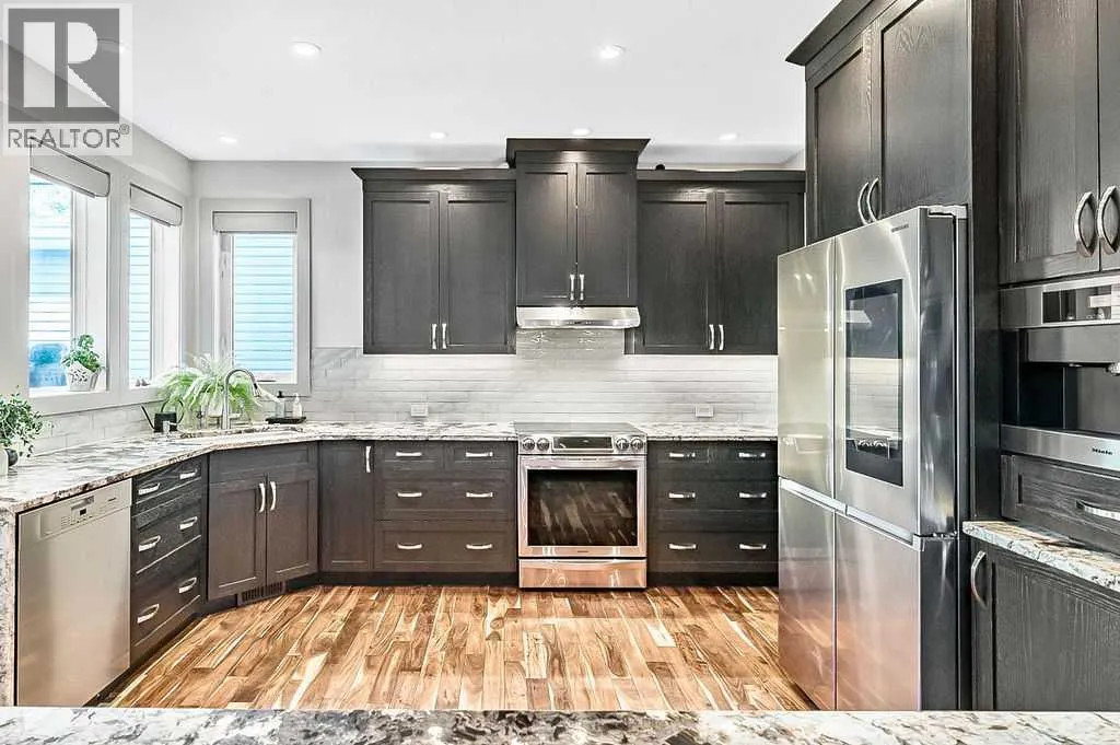 This pristine home is a rare gem and is loaded with character and meticulous details that elevate it above others in its price range. This INCREDIBLE MULTI LEVEL FLOOR PLAN is unique in the most positive ways and must be seen to be appreciated. Over 3,500 sq ft of total living space including over 370 sq ft being approximately 6" below grade - essentially at grade level. The expansive dream kitchen boasts gorgeous granite waterfall countertops, built in Miele coffee maker, built in blender and an ultra convenient walk in butler's pantry with a 2nd fridge and lots of extra cabinetry and counter space - truly a chef's paradise. There is a spectacular bonus room with soaring vaulted ceilings, providing a perfect retreat or entertainment space. Throughout the home, you'll find the state of the art Lutron RA2 lighting system, power blinds, an R/O system, central vac, central air and water softener. For those who love outdoor living, the backyard does not disappoint. Enjoy the seamless indoor outdoor flow with a built in Napoleon BBQ, poured concrete plant bed curbing, patio w/firepit and a covered deck. There is also an 8' x 10' storage shed, an irrigation system, beautiful mature landscaping, GEMSTONE LIGHTING and a heated garage. Situated in a perfect child friendly location, this gorgeous home is just steps from a park and a stone's throw from schools and all essential conveniences. This home promises a lifestyle of luxury, comfort and ease. Don't miss the opportunity to make this exquisite residence your forever home! (id:27476)