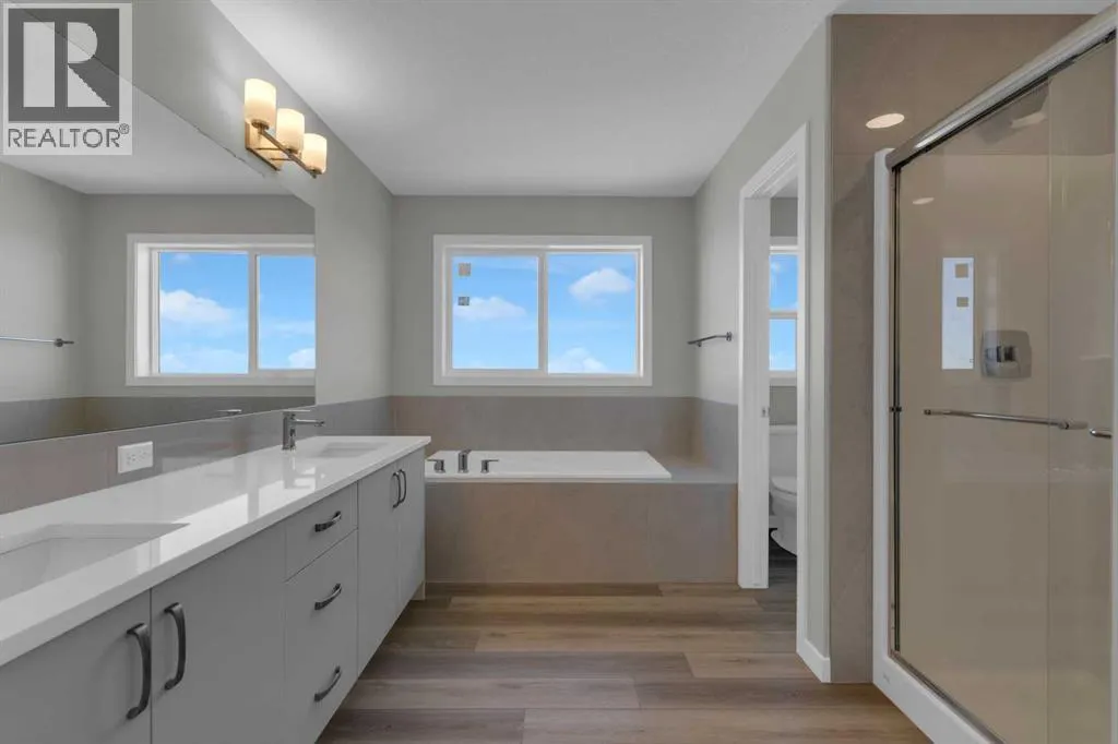 BRAND NEW â NEVER LIVED IN! A gorgeous new home built by Excel Homes! Presenting the Oxford A, this stunning residence offers over 2560 sq ft of above-grade living plus an amazing LEGAL TWO BEDROOM SUITE built to upstairs standards. Perfectly located in Silver Spruce, the newest subdivision in Calgaryâs highly desirable community of Silverado, this home combines modern design with everyday convenience. Youâll love the communityâs established feel, along with easy access to transit, major arteries, golf, shopping, schools, and parks. Even better, this property backs directly onto an environmental reserve, ensuring lasting backyard privacy. Step inside and experience the upgrades everywhere you turn. The main floor is bright and open with oversized windows filling the home with natural daylight. A full 4-piece bath is conveniently located next to the main floor bedroom, perfect for guests or family. The heart of the home is the chef-inspired kitchen with crisp white cabinetry, endless drawers and cabinets, a large walk-in pantry, built-in stainless steel oven and microwave, countertop range with chimney hood fan, and an impressive 9â island for prep and gathering. Adjacent to the family-sized dining nook, sliding patio doors lead to a massive full-width deck overlooking the reserve, while the family room is anchored by a cozy fireplace with floor-to-ceiling tile surround. Upstairs, the layout delivers 4 spacious bedrooms including a serene primary retreat with views of the reserve, a spa-inspired 5-piece ensuite with stone countertops, double wide shower, and a tile-skirted soaker tub. Bedrooms 2 and 3 both feature walk-in closets, while every room is filled with natural light. A central bonus room separates the primary from the secondary bedrooms, creating privacy, and the upper laundry room offers shelving and functionality. The 4-piece family bathroom on this level is designed with dual sinksâperfect for busy mornings. The legal suite is just as impressive, offerin g its own fully equipped kitchen, a spacious family room, 4-piece bath, and two large bedrooms with egress windows. Private storage, under-stair storage, and separate utilities make this a turnkey opportunity for multi-generational living or revenue potential. Certified Built Green, this home is energy-efficient and designed with todayâs lifestyle in mind. Your garage has high ceilings & epoxy floors! With 5 bedrooms above grade plus 2 in the suite, luxury finishes throughout, and quick possession available, this property is an absolute must-see. (id:27476)