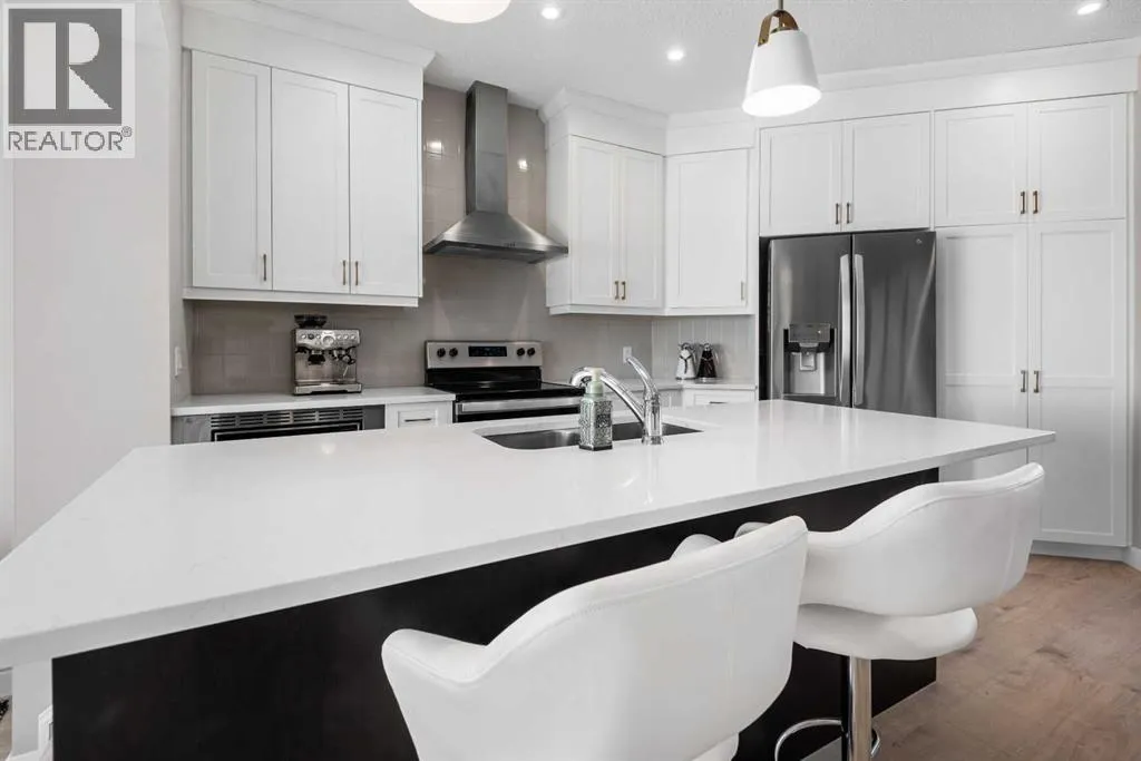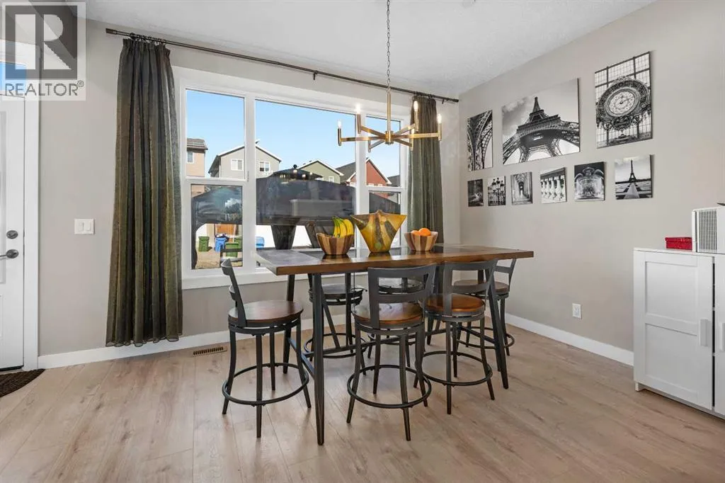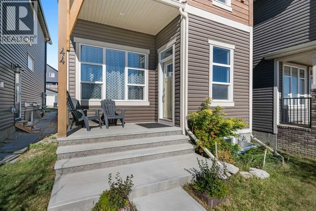 EXTREMELY UNIQUE BROOKFIELD BUILD - BELVEDERE MODEL - TONS OF UPGRADES. Welcome to this exceptional, extremely unique Brookfield built, sought after belvedere model home located right across from a proposed new school, many major bus routes and in the heart of one of Calgaryâs newest and most updated communitiesâLivingston. This beautiful two-storey home is packed with charm and premium upgrades, featuring a thoughtfully designed main floor layout, that showcases a sunken living room and an elegant curved staircase tucked toward the back of the home with dual skylights above, soaring ceilings, a builder upgraded flush-mounted sprinkler fire suppression system, a luxurious lighting package, and premium vinyl plank flooring throughout. The spacious living room is soaked in natural sunlight and anchored by a sleek electric fireplace, creating a cozy yet modern ambiance. Just a few steps up, the elevated kitchen and dining area offers a sense of separation and sophistication, featuring all stainless steel appliances, recessed pot lighting, full-height premium cabinetry, and a large central island perfect for family meals or entertaining guests. From the dining area, step out into your own serene, backyard oasis, complete with covered seating under a charming gazeboâthe ideal spot for relaxing on warm evenings or hosting unforgettable family gatherings. Back inside, head upstairs on your featured curved staircase to find your personal retreat in the large primary suite, which offers a spacious five-piece ensuite with a full standing glass-door shower, separate soaking tub, large vanity, and a walk-in closet that ticks all the boxes. Just off the primary suite, enjoy your morning coffee or unwind at the end of the day on your oversized private balcony, soaking in the peaceful views of your quiet, family-friendly neighbourhood in total comfort and privacy. Across the upper level, youâll find two more generously sized bedrooms that share another full four-piece bathroom, ma king this layout ideal for a growing family, guest space, or a convenient home office or hobby room. Downstairs, the basement offers a blank canvas with bathroom rough-in and two large windows, giving you the freedom to create your dream spaceâwhether itâs a home gym, media room, kidsâ play area, or future development. With this many premium features, smart design choices, and a layout full of unique charm and character, this home is everything youâve been waiting for and moreâbook your private viewing today and see what makes it so special! (id:27476)