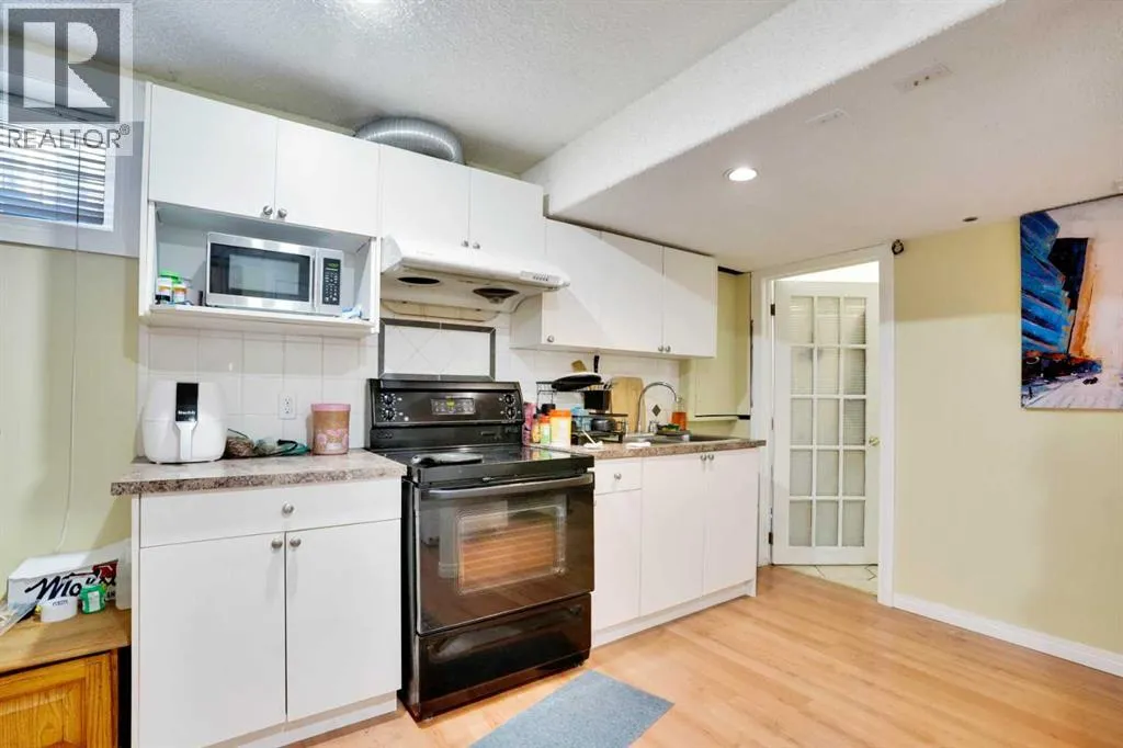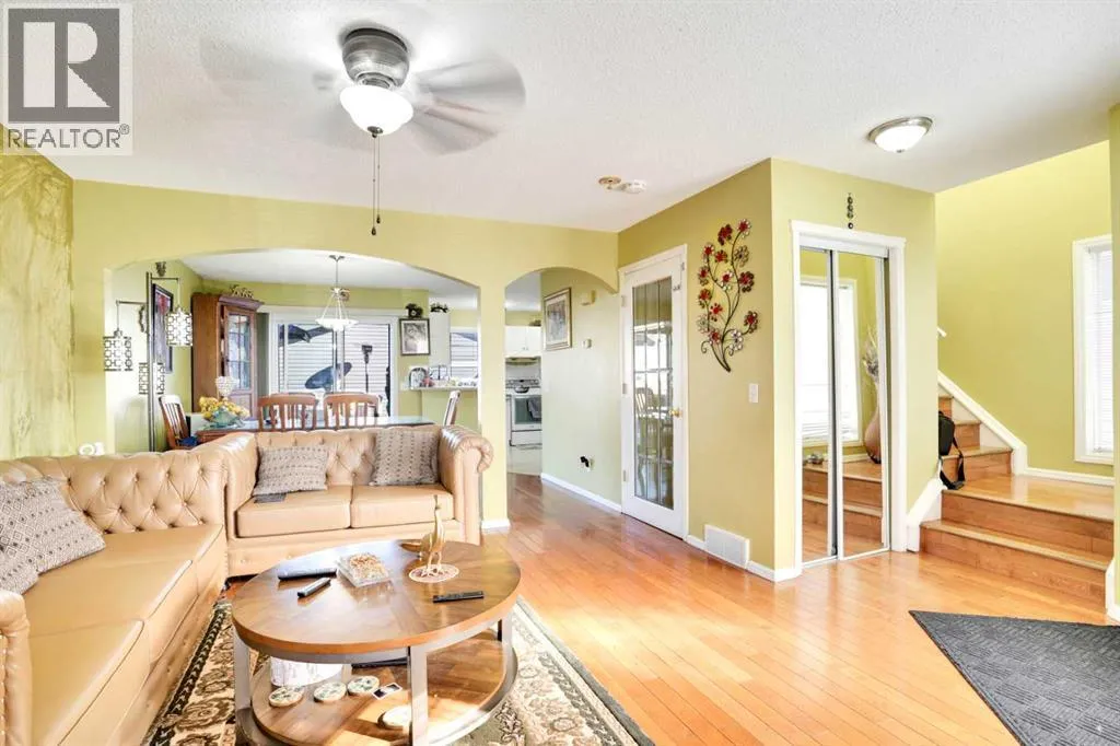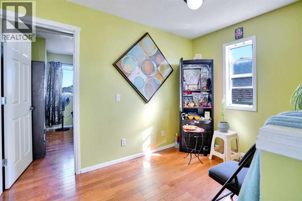Welcome to this well-maintained 4-bedroom, 2.5-bathroom suited home, ideally located on a quiet street with excellent access to schools, shopping, parks, and within walking distance to the CTrain, bus stops, Genesis Centre, and more.The main floor features an open-concept design with gleaming hardwood floors throughout the living area. The bright and functional kitchen is complete with tile flooring, a pantry, and large windows that fill the space with natural light.Upstairs offers three spacious bedrooms with hardwood flooring, a full bathroom, and a versatile office/bonus area. The fully developed (illegal) basement suite with a separate side entrance provides additional living space, including a large recreation room, bedroom, and full bathroom. The suite is currently rented, giving buyers the option to continue with the existing tenancy.Enjoy warm summer days on the oversized deck with a barbecue shed, while appreciating the beautifully landscaped, fully fenced pie-shaped lot. Completing this property is an oversized double detached garage. (id:27476)