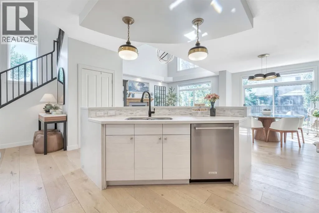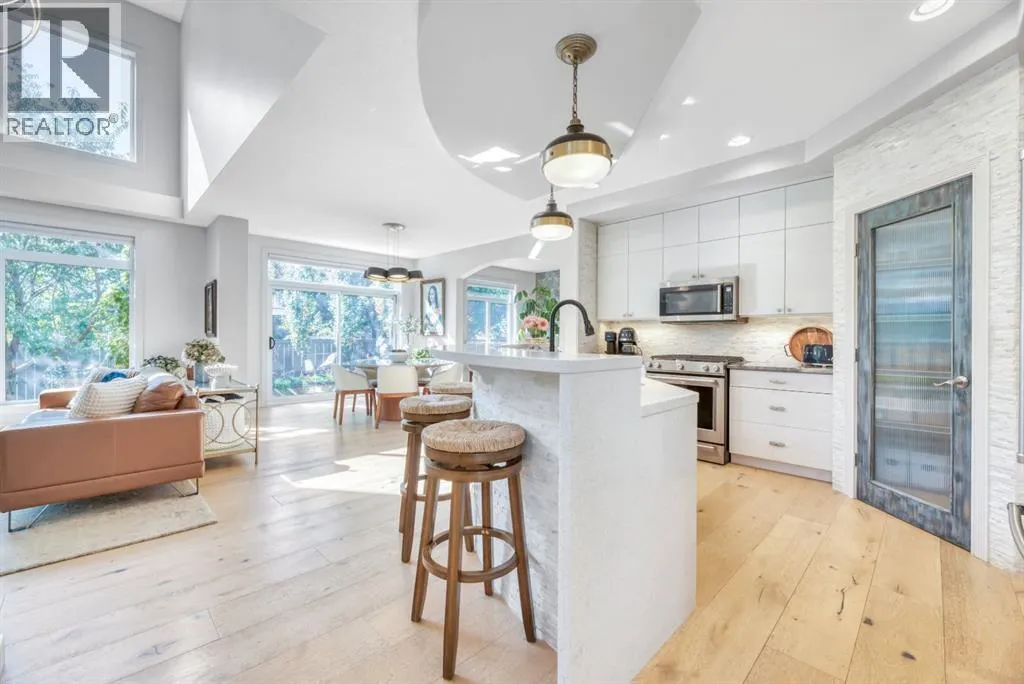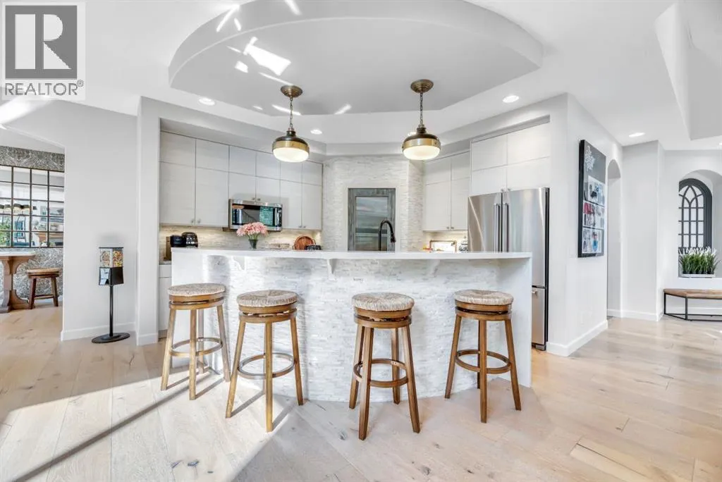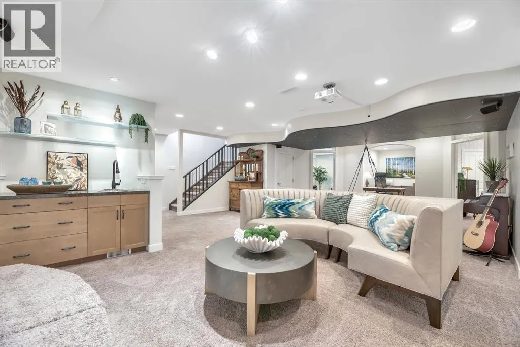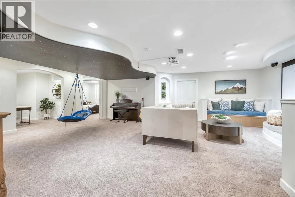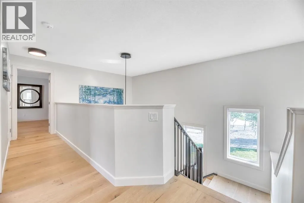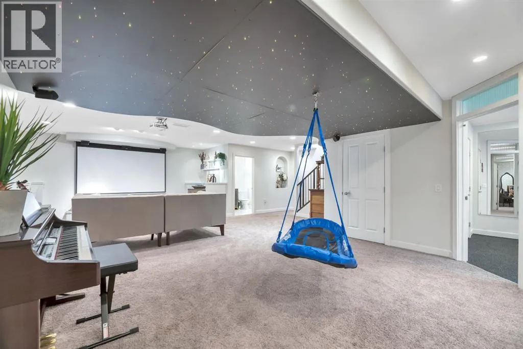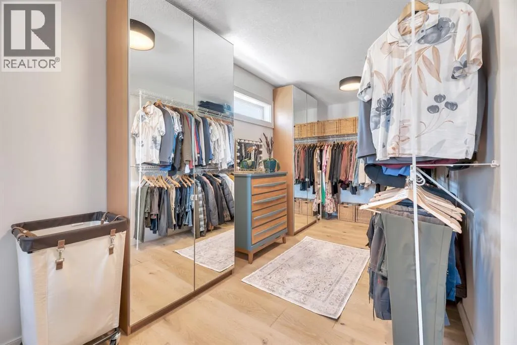 NEW PRICE! If you have been wondering about this home, book a visit and you will be WOWED! Welcome to this stunning custom designed home in the prestigious Estates of Cranston, siding onto green space and play park, surrounded by mature trees and walking distance to the picturesque ridge. From the moment you arrive, the impressive stone exterior and meticulously landscaped yard set the tone for whatâs inside.Step through the front door into a bright, airy foyer with soaring ceilings and a dramatic staircase that immediately draws you in. The open-concept main floor is bathed in natural light from oversized windows, showcasing beautiful wide-plank white oak hardwood floors and thoughtful designer touches throughout.The spacious great room features a modern chandelier, large picture windows with serene backyard views, and a warm yet contemporary design perfect for both relaxing and entertaining. The dining area flows seamlessly into the stylish kitchen and cozy breakfast/study/reading nook, step out to the backyard for easy indoor-outdoor living. Additionally, the main floor offers a full bedroom and a full bathâideal for generational living, guests or a home business. This home also offers the option to be accessible on the main floor - can offer a wheelchair lift from the garage to the main. The beautiful kitchen offers a curved island for people to gather around, gorgeous finishes, newer Kitchenaid appliances (with extended warranty) and a walk-through pantry from the triple heated garage (with double drive door and INDOOR HOT TUB [negotiable] to relax), seamlessly connecting to the dining and living areas. The lighting selections offered in the home is a true DELIGHT!Upstairs, youâll find two spacious bedrooms, a full bath, and a massive primary oasis highlighted by a brick feature wall - industrial yet warm and an enclave vaulted dormer. The luxurious ensuite offers a spa-like experience with dual vanities, soaker tub, oversized shower, and a 21â long walk- in closet with another vaulted dormer. There is definitely not a lack of storage in this home! The finished basement is a true showpiece with a stunning nightfall starry ceiling light feature, large recreation theatre room with projector and power screen, wet bar, home gym (easily converted back to a bedroom), den, additional bedroom, and full bath. So much space for all the activities! Peace of mind is paramount with a newer furnace (1 of 2) and hot water tank as is having summer comfort with Central Air (2 units). Outside, the backyard is a private oasis with lush landscaping, mature trees, and access to nearby walking paths and parks. On the side of the house there is a beautiful courtyard type space to enjoy the sun rise and watch your kids play in the park next to your home. With its prime location, functional design, and high-end renovations, this home delivers the perfect balance of elegance, style and comfort in one of Calgaryâs most sought-after communities. (id:27476)