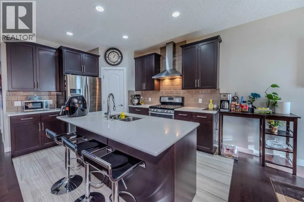 Welcome to this remarkable property in the sought-after community of Savanna NE, offering over 3300 square feet of meticulously designed living space. This stunning home features top-of-the-line finishes, a spacious layout, and an illegal basement suiteâideal for extended family or rental potential.As you enter, youâll be impressed by the soaring 9-foot ceilings throughout all three levels. The main floor boasts a bright, open plan with two expansive living rooms, perfect for relaxing or entertaining. The office/den provides a quiet space for work or study, while the upgraded kitchen is a chefâs dream. With stainless steel appliances, granite countertops, a large kitchen island, and soft-closing cabinets, this kitchen combines both functionality and luxury. A convenient half bathroom rounds out the main level.Upstairs, youâll find two spacious master bedrooms, each with its own private ensuite, offering a peaceful retreat for homeowners. Additionally, there are three generously sized bedrooms with walk in closet and a full bathroom to accommodate all your needs.The fully developed illegal basement suite has a separate entrance, offering two additional bedrooms, a full bathroom, a kitchen, and its own laundry facilitiesâperfect for a tenant or multi-generational living.This home is ideally located in the developed and family-friendly community of Savanna NE, with easy access to bus stops, shopping, the Saddle Town train station, the airport, and Peter Lougheed Hospital.Don't miss out on this exceptional opportunity to own a home that has it all! Call your favorite realtor today to schedule a private showing. (id:27476)