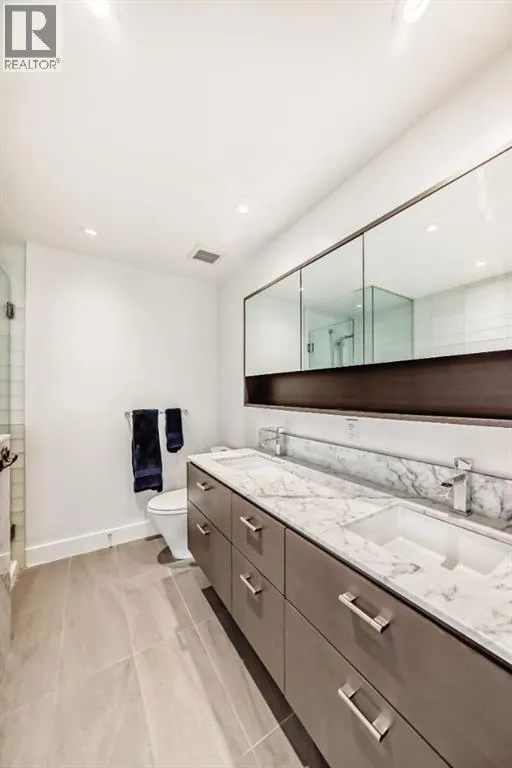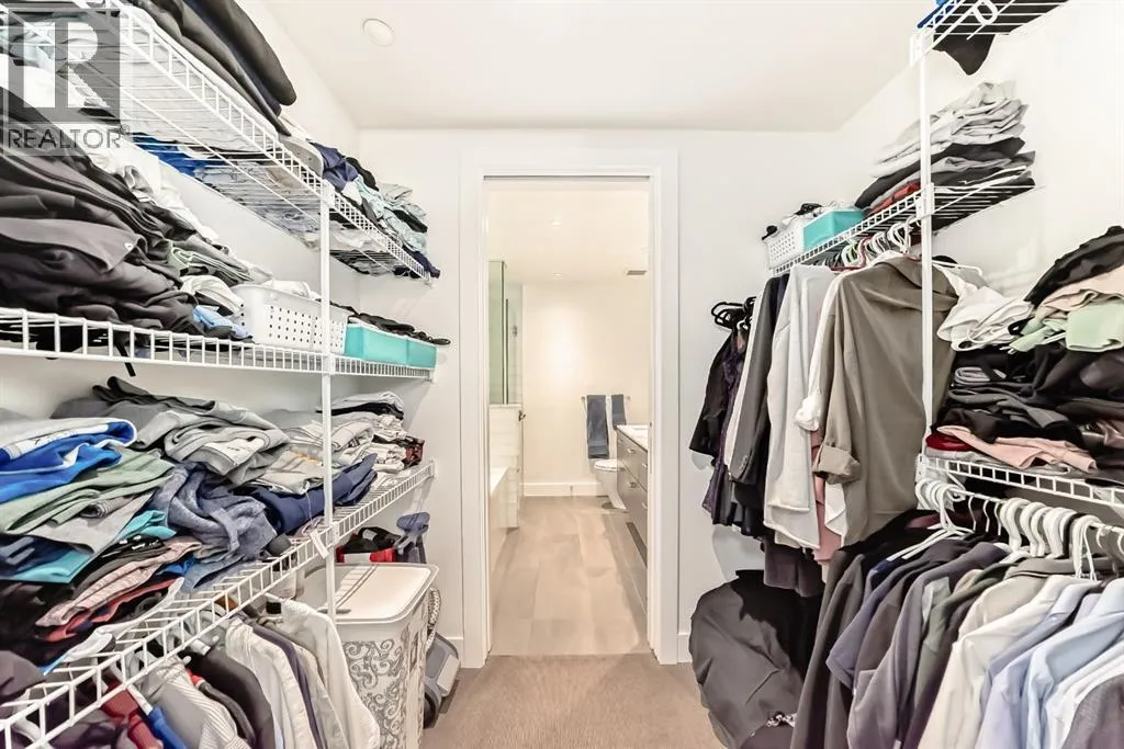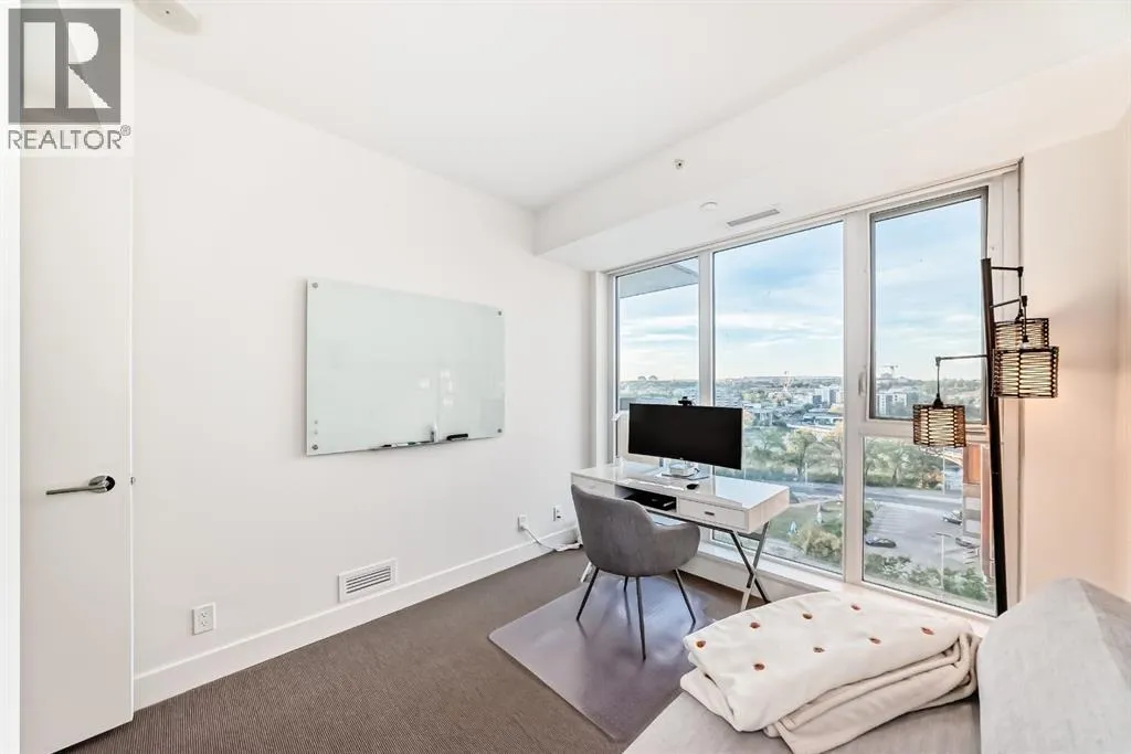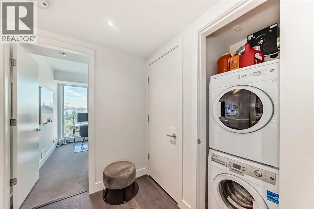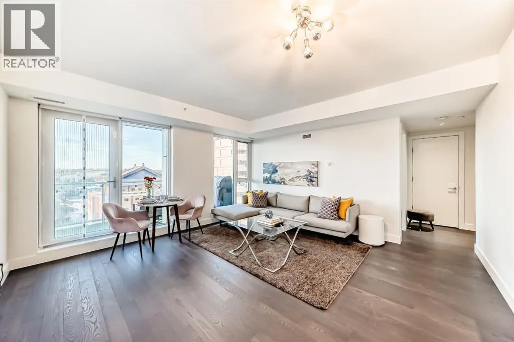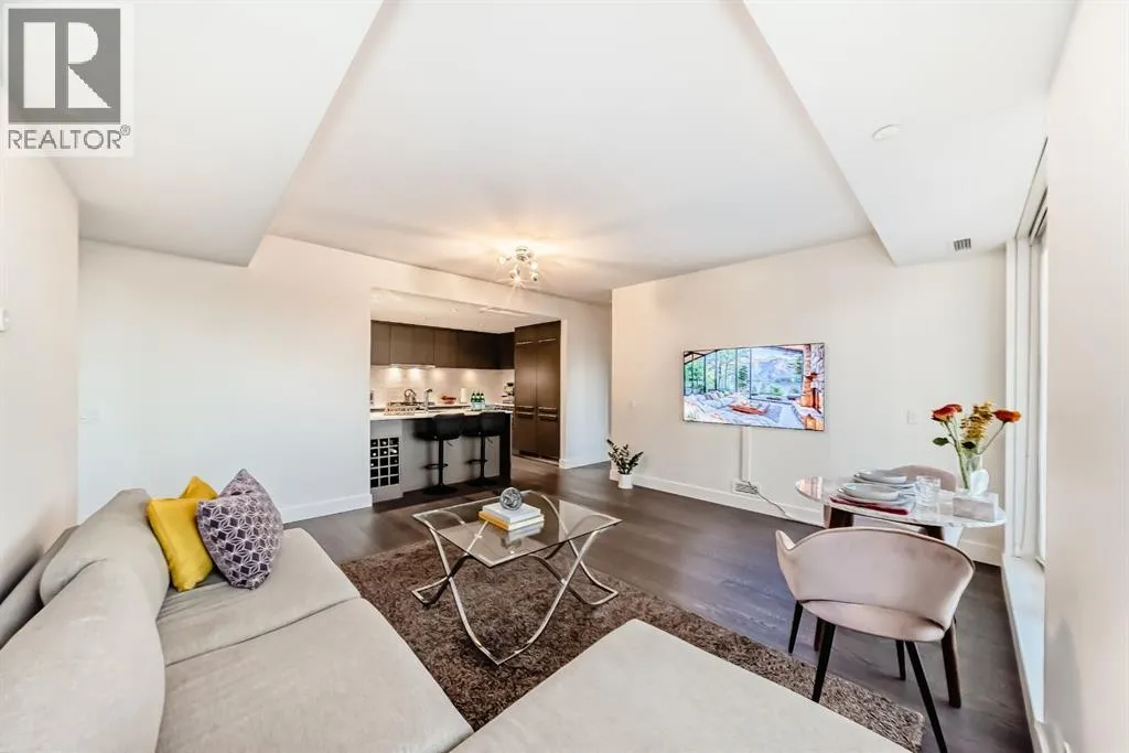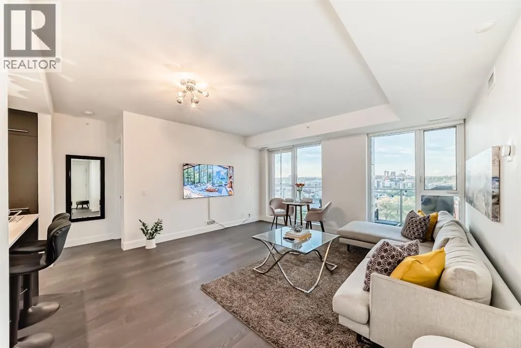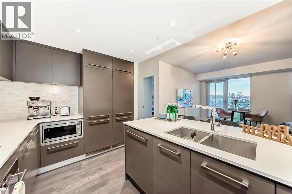 Welcome to this breathtaking 2-bedroom, 2-bathroom residence featuring an award-winning floor plan and unbeatable views from every corner. Step onto your west-facing balcony and take in stunning sunsets overlooking the Bow River and mountains.Inside, youâll find upgraded engineered hardwood floors and a chef-inspired kitchen complete with a panelled fridge, built-in oven, microwave, and a massive islandâperfect for entertaining. The spacious living room includes a cozy nook, while the primary suite offers a generous walk-in closet and a luxurious ensuite with double vanity, soaker tub, and standing shower. The secondary bedroom is ideal for kids, guests, or a home office, with the second bathroom upgraded to a full standing tiled shower.This quiet, non-smoking, pet-free unit is in immaculate condition and comes with in-suite laundry, a titled underground parking stall, and a titled storage unit.Building amenities include:24hr concierge & securityDog wash station & bike workshop in the parkade11 visitor parking stallsDaily professional maintenance & cleaningFitness centre and elegant lobbyMostly resident-owned units (no short-term/Airbnb rentals allowed)Located just a 3-minute walk to the Bow River pathways and 5 minutes to the Downtown West-Kerby C-Train station, youâll enjoy quick access to downtown, dining, shopping, and parks.This is the perfect blend of luxury, lifestyle, and location. (id:27476)