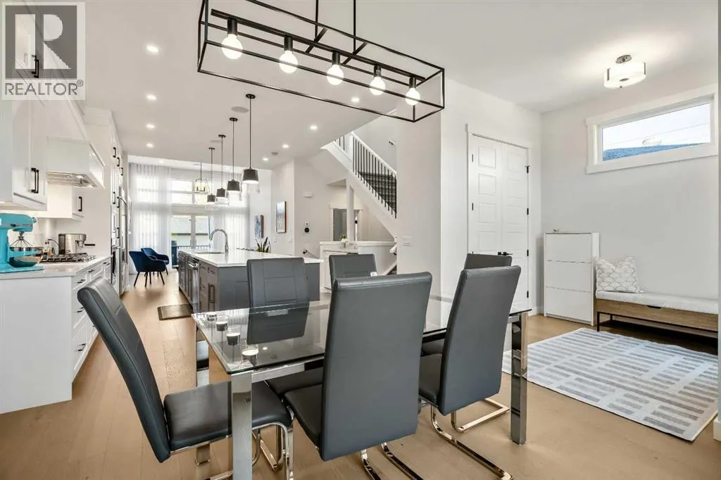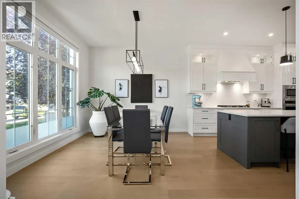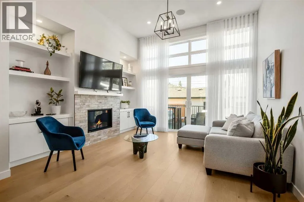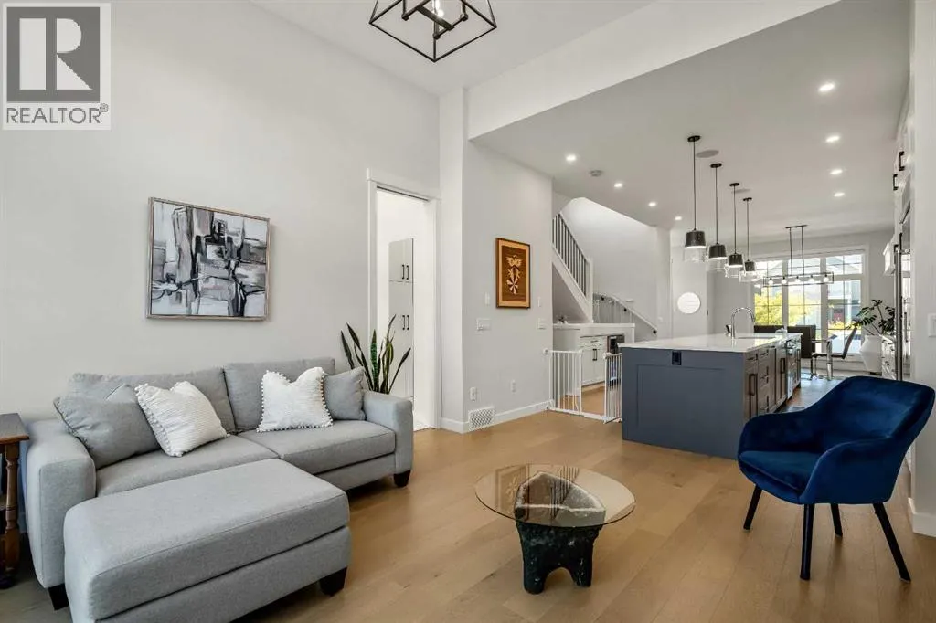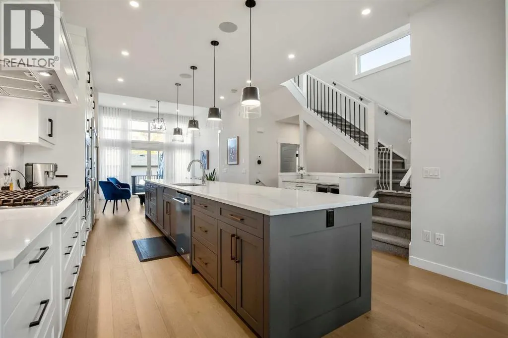Situated on a quiet street in the highly sought-after community of Montgomery. As you enter this stunning home you will notice the abundance of natural light and that no detail was overlooked from the luxurious wide plank hardwood floors, high paint finish ceilings, 8â solid core doors, elegant railing, in ceiling speakers and designer lights. The spacious front dining room opens to the central gourmet kitchen. This is a focal point with an expansive 16â kitchen island, gorgeous quartz counters, a timeless herringbone tile backsplash, SS built in appliances including a gas cook top and wine fridge. All highlighted by a custom wood hood, two-tone cabinets that reach to the ceiling with glass inserts, under-cabinet lights, slow-close cabinet doors, as well as plenty of storage with additional built-in features such as spice racks and pull out details. The kitchen opens to the inviting living room with soaring 12â ceilings, a distinctive gas fireplace with brick surrounds and built ins, plus floor to ceiling patio sliders creating a great indoor outdoor space, making this home ideal for entertaining. The sunny SOUTH backyard has a low maintenance vinyl deck and a BBQ gas line ideal for gatherings. Completing the main living area is a large mudroom with bench detail and private powder room with a full vanity. Upstairs you will find two bright well sized bedrooms, a large 4 pc bath and a convenient laundry room with plenty of storage and a sink. The primary retreat is on its own separate level creating a true oasis with a tray ceiling detail, large windows and a spacious walk in closets with built ins. The spa inspired ensuite includes heated floors, a stunning free standing tub, a massive tile shower, dual sinks with stone counters, and a private water closet. The lower level has a great rec room with a built in media center, a full wet bar including beverage fridge, floating shelves and wine racks. A 4 pc bath and fourth bedroom with a walk in closet perfect for gue sts or hosting gatherings. This home also offers the comforts of air conditioning, a vacu-flow rough in, plus a fully insulated and drywalled double detached garage with gas line rough in for a heater. Steps away from scenic parks, walking trails, cafes, restaurants and shopping. Schedule your private showing or view the virtual tour today. (id:27476)