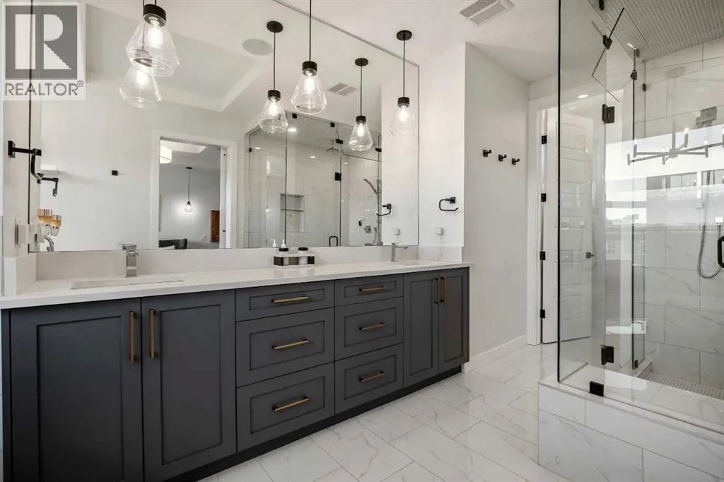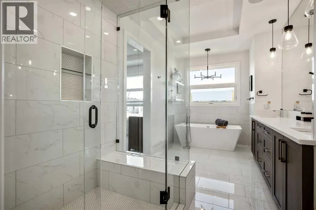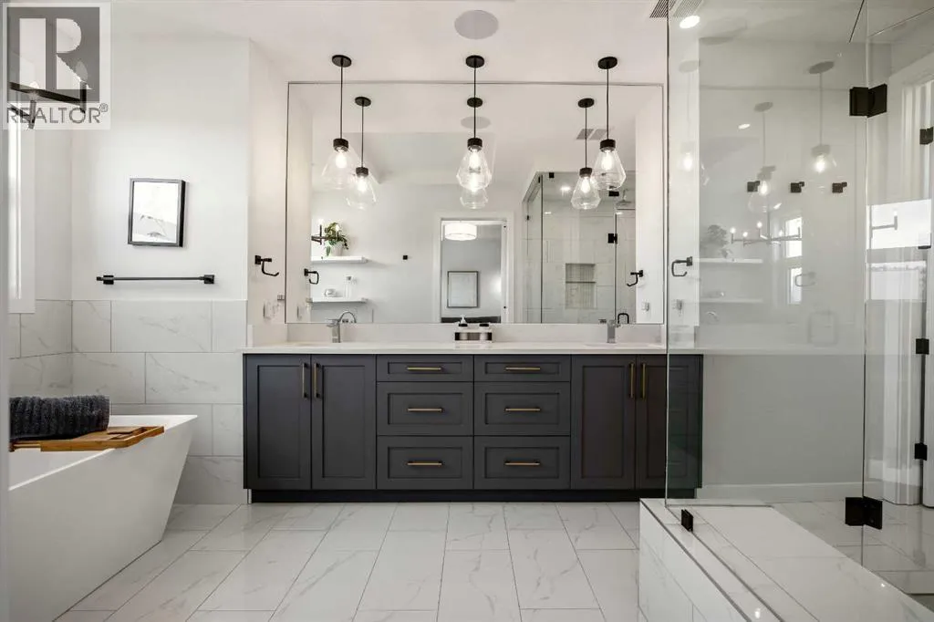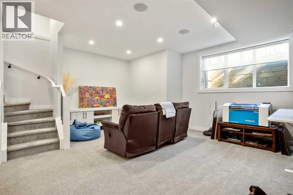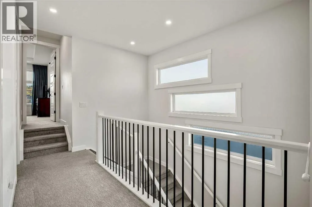 Situated on a quiet street in the highly sought-after community of Montgomery. As you enter this stunning home you will notice the abundance of natural light and that no detail was overlooked from the luxurious wide plank hardwood floors, high paint finish ceilings, 8â solid core doors, elegant railing, in ceiling speakers and designer lights. The spacious front dining room opens to the central gourmet kitchen. This is a focal point with an expansive 16â kitchen island, gorgeous quartz counters, a timeless herringbone tile backsplash, SS built in appliances including a gas cook top and wine fridge. All highlighted by a custom wood hood, two-tone cabinets that reach to the ceiling with glass inserts, under-cabinet lights, slow-close cabinet doors, as well as plenty of storage with additional built-in features such as spice racks and pull out details. The kitchen opens to the inviting living room with soaring 12â ceilings, a distinctive gas fireplace with brick surrounds and built ins, plus floor to ceiling patio sliders creating a great indoor outdoor space, making this home ideal for entertaining. The sunny SOUTH backyard has a low maintenance vinyl deck and a BBQ gas line ideal for gatherings. Completing the main living area is a large mudroom with bench detail and private powder room with a full vanity. Upstairs you will find two bright well sized bedrooms, a large 4 pc bath and a convenient laundry room with plenty of storage and a sink. The primary retreat is on its own separate level creating a true oasis with a tray ceiling detail, large windows and a spacious walk in closets with built ins. The spa inspired ensuite includes heated floors, a stunning free standing tub, a massive tile shower, dual sinks with stone counters, and a private water closet. The lower level has a great rec room with a built in media center, a full wet bar including beverage fridge, floating shelves and wine racks. A 4 pc bath and fourth bedroom with a walk in closet perfect for gue sts or hosting gatherings. This home also offers the comforts of air conditioning, a vacu-flow rough in, plus a fully insulated and drywalled double detached garage with gas line rough in for a heater. Steps away from scenic parks, walking trails, cafes, restaurants and shopping. Schedule your private showing or view the virtual tour today. (id:27476)