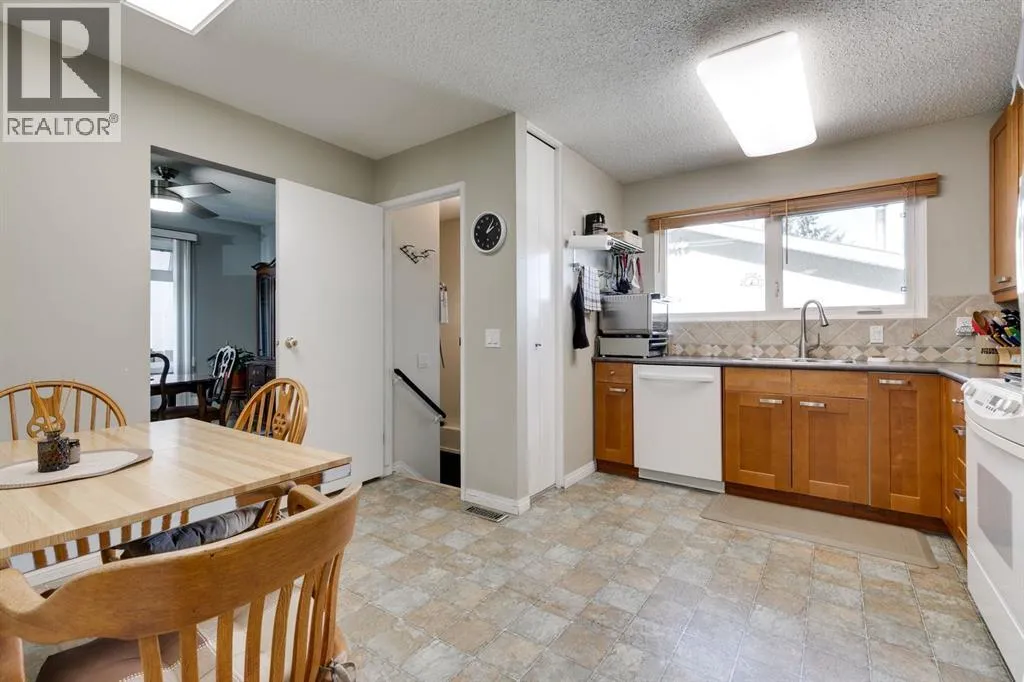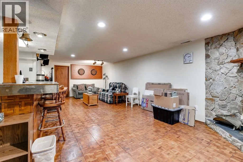 Welcome to this spacious 4-bedroom, 3-bathroom bungalow that perfectly blends comfort, functionality, and updates throughout. Step inside to a large living room and dining space thatâs ideal for gatherings, an updated kitchen with thoughtful storage solutions, a beautifully refreshed bathroom, and a nice-sized primary bedroom with its own ensuite. The fully finished basement expands your living space with a wet bar, wood-burning fireplace, 4th bedroom, and additional bathroomâperfect for entertaining or hosting guests. Outside, enjoy a huge front yard, a private backyard oasis, and a mechanicâs dream garage â oversized, heated, and complete with a beam for hoist options. Youâll also love the additional parking behind the garage and plenty of street parking out front. Added features include irrigation, new windows, A/C, a newer furnace, and newer shingles, giving you peace of mind and efficiency for years to come. This home is move-in ready and offers the space, updates, and functionality every buyer is looking for! (id:27476)