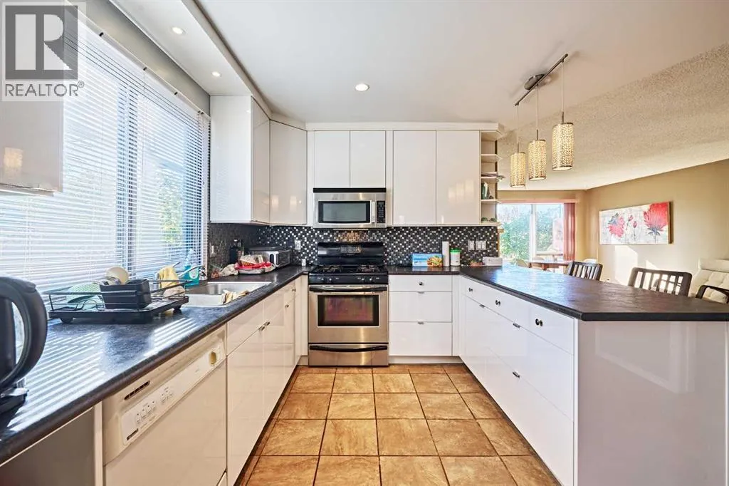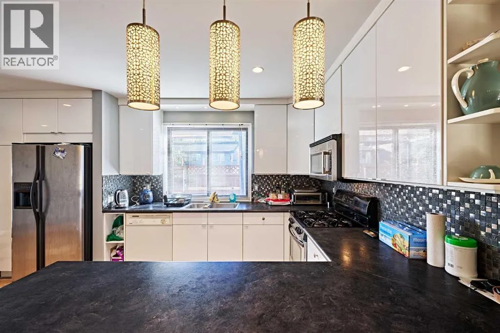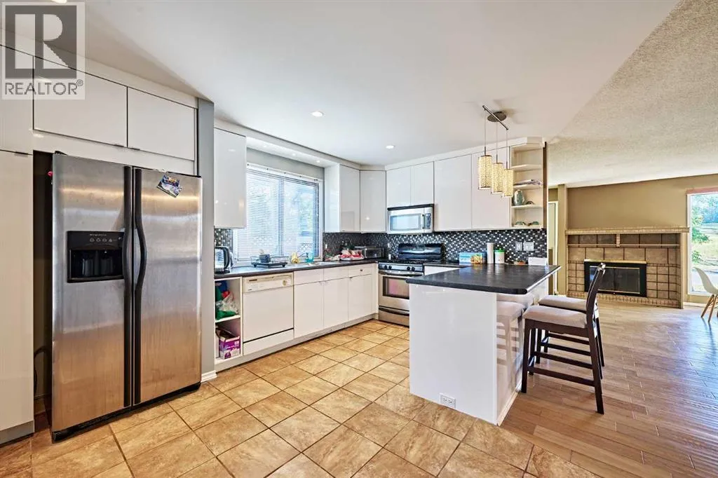 Over 2,000 sq. ft. of bright, functional living space directly facing a beautiful park with open fields, a toboggan hill, and a baseball diamond â perfect for families, pet owners, or anyone who loves outdoor living. Step inside to an open-concept main floor featuring a spacious living room filled with natural light and a cozy wood-burning fireplace. The modern kitchen includes a gas range, white cabinetry with custom pull-outs for smart storage, a breakfast bar, and generous counter space â ideal for cooking and entertaining. The large dining area opens to a low-maintenance private yard with a deck, perfect for barbecues and outdoor dining. The king-sized primary bedroom offers a walk-in closet and a 2-piece ensuite that can easily be expanded to a full ensuite. A second bedroom or home office and a stylish 4-piece bathroom with a deep soaker tub complete the main level.Downstairs, enjoy a fully developed lower level with a spacious rec room, den, two additional bedrooms, a 3-piece bath, laundry room, and abundant storage. Outside, your private side yard features a large deck for entertaining, an extra patio area ideal for kids or a firepit, a storage shed, and a double concrete parking pad. Exceptional value in a sought-after, park-facing location â this home combines comfort, functionality, and lifestyle. (id:27476)