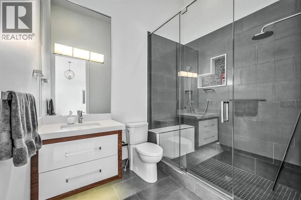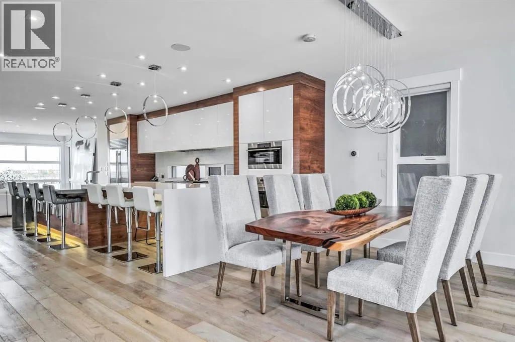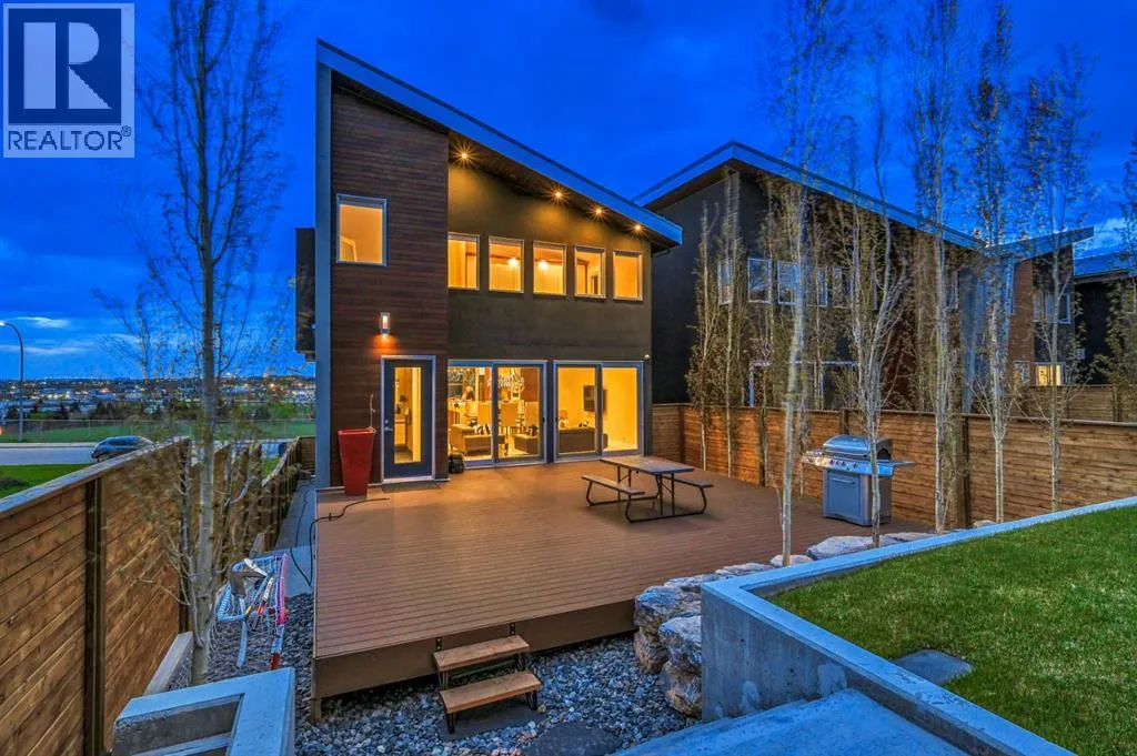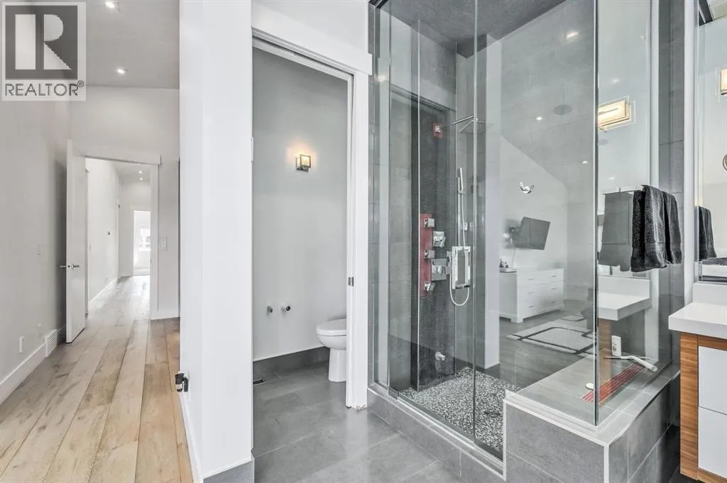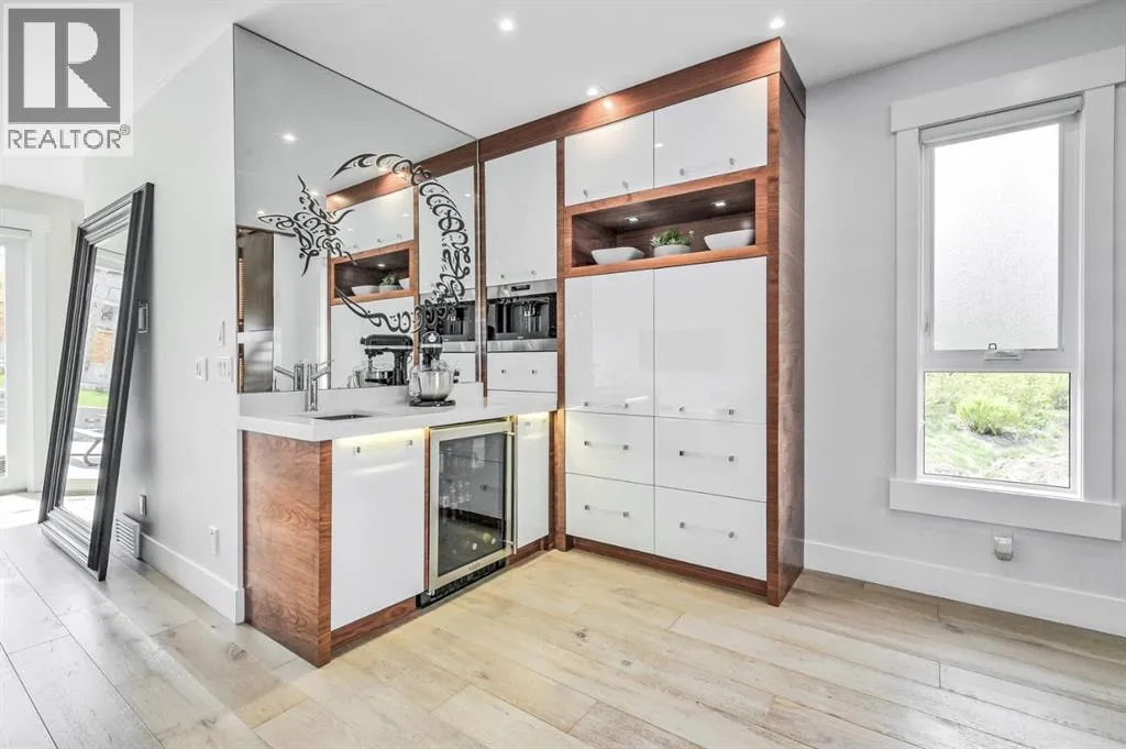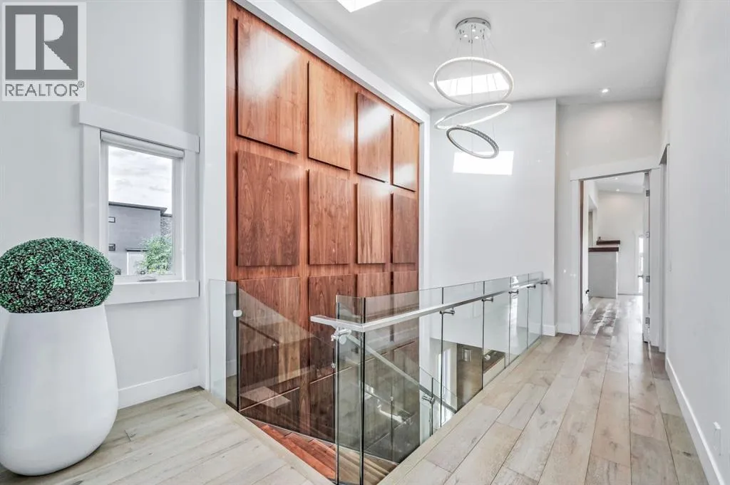 Located in Winston Heights. Welcome to a thoughtfully designed residence that seamlessly blends luxury, comfort, and timeless elegance. This stunning home features an open-concept layout, soaring 10-foot ceilings, and ambient LED lighting throughout â creating a warm and inviting atmosphere for both everyday living and upscale entertaining.At the heart of the home lies a chefâs dream kitchen, outfitted with premium Wolf appliances and a custom extended waterfall island with returns â ideal for hosting large gatherings or family get-togethers. Adjacent to the kitchen, a stylish wet bar includes a built-in Wolf coffee maker and sits beside a cozy second family room. Enjoy your morning coffee with the fresh breeze flowing in from the expansive rear sliding doors.Design details elevate every corner of this home, including a custom solid wood staircase paired with a matching feature wall, premium light fixtures, an Ortal 150 fireplace, LED accent lighting, and extensive custom woodwork â a cohesive design theme carried throughout all levels.Upstairs, the primary suite is a true retreat, featuring vaulted ceilings, an open-concept layout, a spacious walk-in closet, and a spa-inspired 5-piece ensuite. Each of the three additional upstairs bedrooms includes its own ensuite and unique charm â perfect for growing families or hosting guests without the hassle of shared bathrooms.The lower level offers even more space, including a generously sized living room with a second wet bar, a guest bedroom complete with built-in desk, and a full 3-piece bathroom â ideal for visitors, teens, or a private home office setup.Practical touches include a heated, insulated garage with custom storage cabinetry, and a beautifully landscaped backyard featuring Manitoba rock retaining walls, cedar fencing, Swedish Aspens, and an automatic drip irrigation system.Located in a highly desirable area, this home is walking distance to the Winston Golf Course, scenic walking/biking trails, off-leas h parks, and Georges P. Vanier School (Grades 6â9). Enjoy quick access to major roadways, downtown Calgary, SAIT, Foothills Hospital, and the airport â convenience without compromise.Donât miss the opportunity to own this rare and remarkable home. Call your favourite realtor and book your private showing today! (id:27476)
