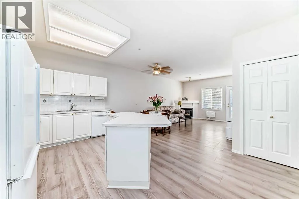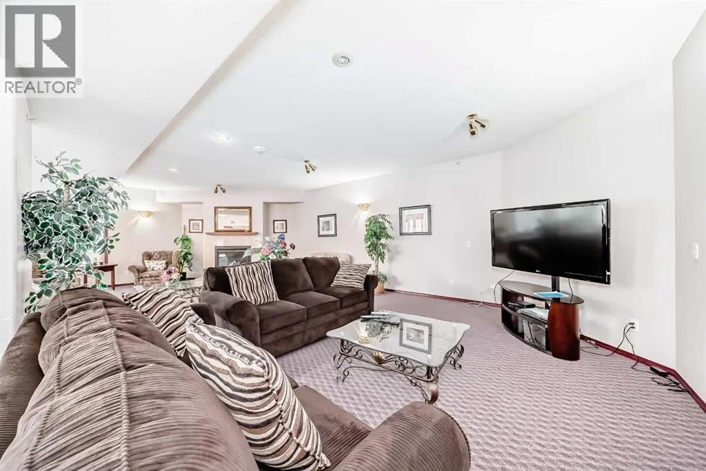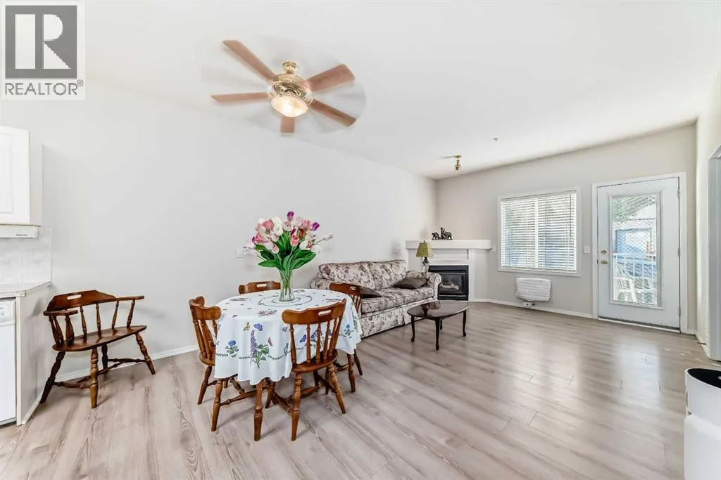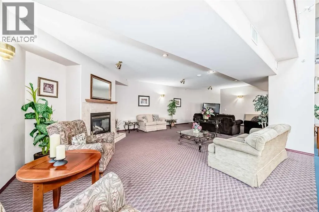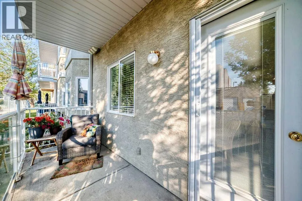 Welcome to sought-after Glenmeadow Gardens, a friendly 55+ community with wonderful amenities. This bright & well maintained 960 sq ft main floor unit offers a 2 bedrooms ( 2nd bedroom ideal for den/home office), 2 bathrooms & in-suite laundry. The open layout features fresh paint throughout, cozy corner fireplace, air conditioning & in-floor heat for year-round comfort. Enjoy your morning coffee on your private balcony with a gate leading to the green space & flower gardens allowing you to continue gardening. Youâll also appreciate the assigned heated underground parking stall (if needed), bike storage & large storage room with shelving. Glenmeadow Gardens is known for its welcoming atmosphere & outstanding amenities: a beautifully landscaped courtyard with gazebo, community garden, social room with kitchen, pool table & shuffleboard, fitness equipment, library/card/puzzle area, Telus fiber optics throughout, visitor parking & 2 rentable guest suites for visiting family or friends. This is more than a home-itâs a lifestyle of ease, comfort & community in a prime location. (id:27476)