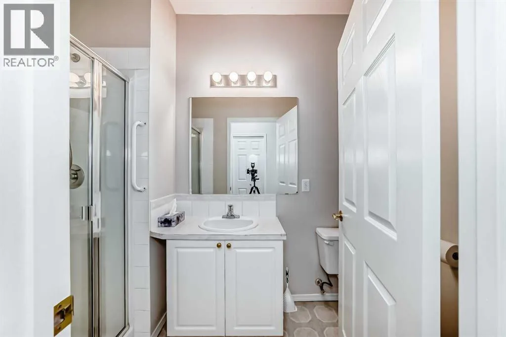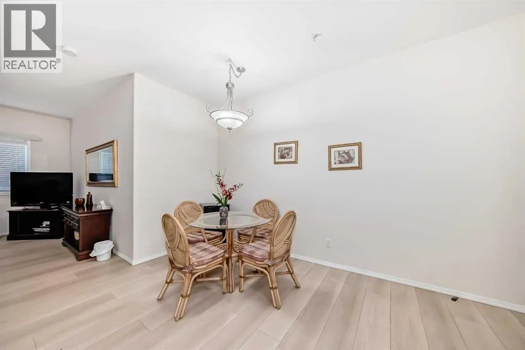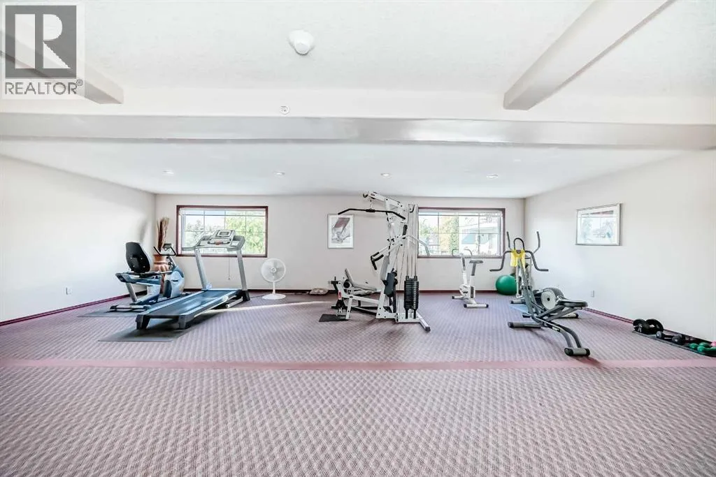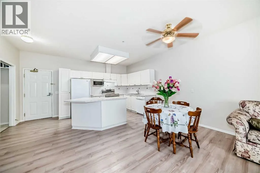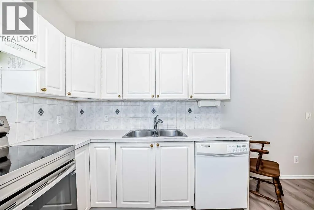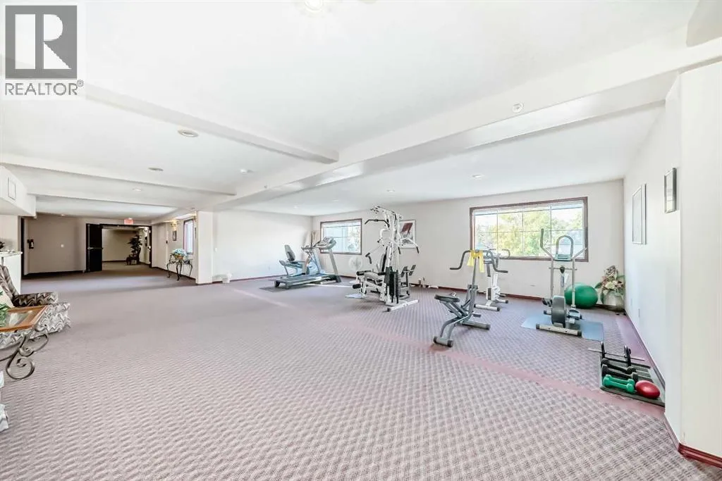 Welcome to sought-after Glenmeadow Gardens, a friendly 55+ community with wonderful amenities. This bright & well maintained 960 sq ft main floor unit offers a 2 bedrooms ( 2nd bedroom ideal for den/home office), 2 bathrooms & in-suite laundry. The open layout features fresh paint throughout, cozy corner fireplace, air conditioning & in-floor heat for year-round comfort. Enjoy your morning coffee on your private balcony with a gate leading to the green space & flower gardens allowing you to continue gardening. Youâll also appreciate the assigned heated underground parking stall (if needed), bike storage & large storage room with shelving. Glenmeadow Gardens is known for its welcoming atmosphere & outstanding amenities: a beautifully landscaped courtyard with gazebo, community garden, social room with kitchen, pool table & shuffleboard, fitness equipment, library/card/puzzle area, Telus fiber optics throughout, visitor parking & 2 rentable guest suites for visiting family or friends. This is more than a home-itâs a lifestyle of ease, comfort & community in a prime location. (id:27476)
