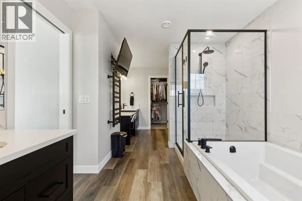 This beautifully designed Jayman built home offers the perfect blend of high-end finishes, thoughtful custom upgrades, and energy efficient features, all located in the vibrant and amenity-rich community of Seton. Inside, the home offers a bright and airy open concept layout enhanced by floor to ceiling windows, luxury vinyl plank flooring throughout, and quartz countertops that combine elegance with everyday durability. The chef-inspired kitchen showcases high end appliances, a custom designed hood fan, and a spacious walk-in butlerâs pantry, offering both function and flair. The main living area is anchored by a sleek fireplace with custom mantle, thoughtfully designed as a double-sided feature shared with a cozy den or home office, bringing warmth and ambiance to both spaces. A half bath is conveniently tucked away on the main level.Upstairs, enjoy three spacious bedrooms, a full bathroom, and a bonus room ideal for relaxing or entertaining. The showstopper, however, is the incredible primary bedroom -A true luxury retreat. This expansive space features a seating area and an ultra upgraded 5-piece ensuite with dual vanities, a deep soaker tub framed in designer tile, a large tiled shower, and a TV for next level relaxation. Inside the ensuite, youâll also find his and hers walk-in closets, a dedicated makeup vanity, and a separate toilet area, combining both indulgence and everyday practicality in one stunning space.The basement is framed and ready for future development, with a bathroom already roughed in. Outside, the landscaped yard offers year-round enjoyment with a composite deck, permanent Govee exterior lighting, a powered gazebo, and a storage shed. The attached garage is heated and includes built-in ceiling storage and cabinets for optimal organization. This home offers convenient access to the South Health Campus, YMCA, schools, restaurants, shopping, and everyday services. New HOA facility is open and designed to elevate your lifestyle with ameniti es such as a skating rink, splash pad, tennis and basketball courts, fire pits, a café, and bookable indoor spaces for events like birthdays or private gatherings. From solar panels(6) and hot water on demand to luxury finishes throughout, this home delivers unmatched value in a prime location- truly a must see! (id:27476)