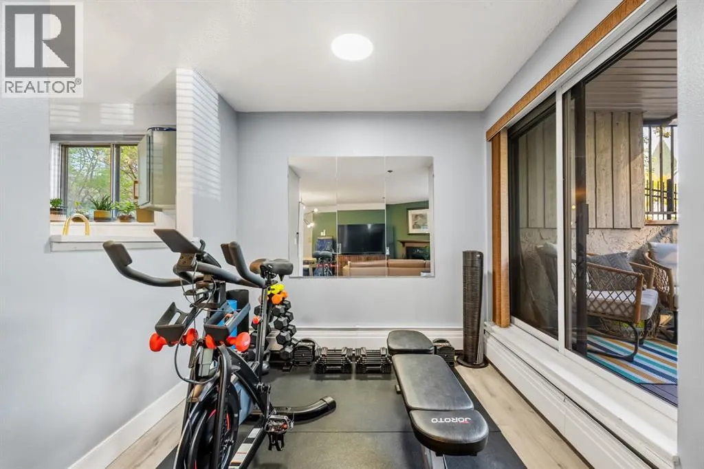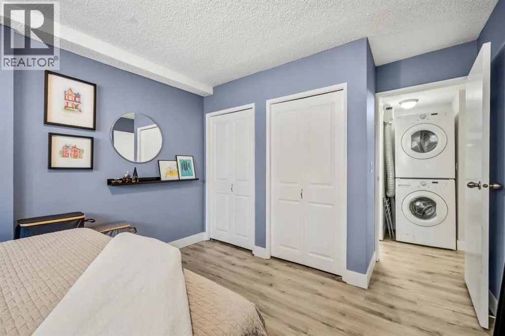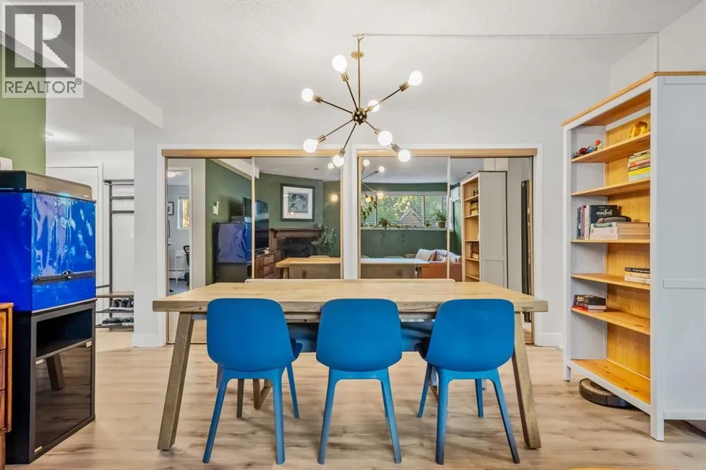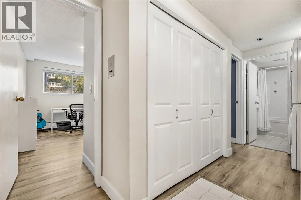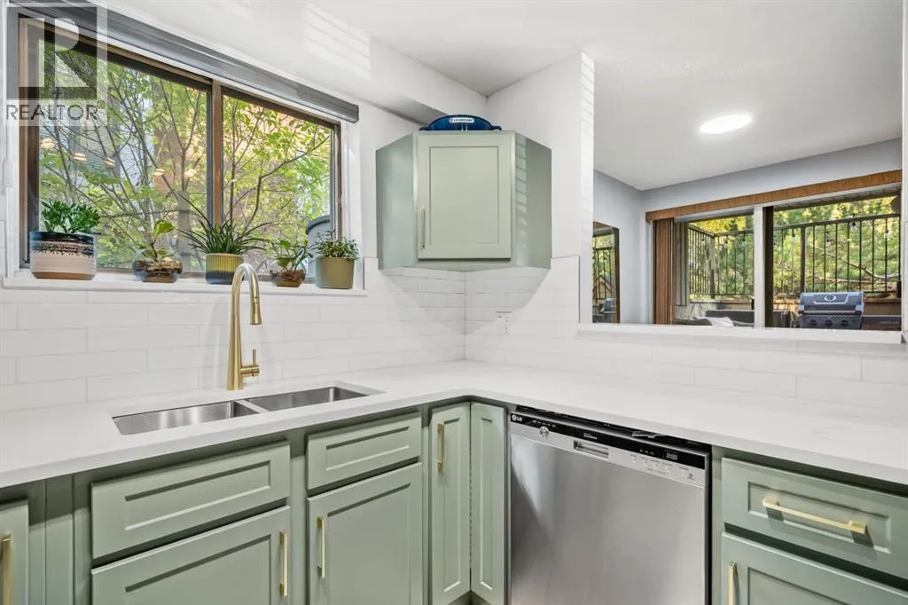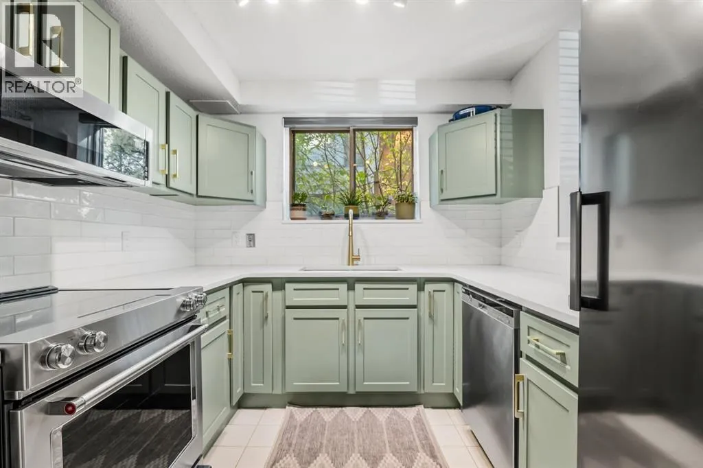**PRICE REDUCED** Located on the main floor in the "Livingstone House" building and steps from the front door. This renovated below grade 2 bed & 1 bath unit offers the perfect mix of privacy, style, and convenience. The unit is situated on a quiet one way street with a dedicated bike path right out front and steps away from Eau Claire, the Bow River pathways, Princeâs Island Park, Calgaryâs iconic Peace Bridge, Eau Claire Promenade, Jaipur Bridge, the downtown core, and LRT stations. This bright and stylish unit has been thoughtfully updated over the past few years, bringing it back to life with modern finishes and a fresh inviting feel. As soon as you step inside, youâll notice the updated modern vinyl plank flooring that flows seamlessly through the unit and the pride of ownership thatâs evident in every detail. The smartly designed floor plan separates the living, dining, and kitchen area from the bedrooms, laundry, and 4-piece bath creating a functional layout with plenty of closet space for storage. The heart of this home is the stunning chefâs kitchen that was recently renovated in 2025 with no details overlooked. Brand new quartz countertops, sleek white tile backsplash, new cabinet doors & drawers, stainless steel under mount sink, stylish faucet, and a new stove and microwave hood fan. Every finishing was carefully selected to create a space thatâs both functional and luxurious. The kitchen opens up to a spacious dining area that can easily accommodate casual meals or festive holiday gatherings. Adjacent, the cozy living room features a window and a wood burning fireplace that sets the perfect mood for relaxing evenings. Off to the side a versatile nook that can serve as an office, another dining area, or a workout space. The sliding patio door leads to a private patio space making it an ideal spot for relaxing or entertaining with space for a BBQ. The primary bedroom is tucked away for privacy, with a spacious secondary bedroom that can double as an offic e or guest room, plus in suite laundry and more closet space for storage. To top it off, enjoy the convenience of a secure underground parking stall and the comfort of a AC unit â making this a turnkey home you can move into and enjoy year round! Experience the ultimate downtown lifestyle with riverside serenity along with a fully renovated unit where modern comfort meets unbeatable location! (id:27476)