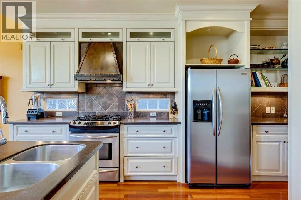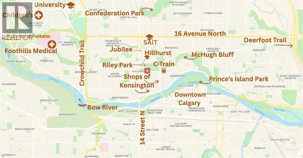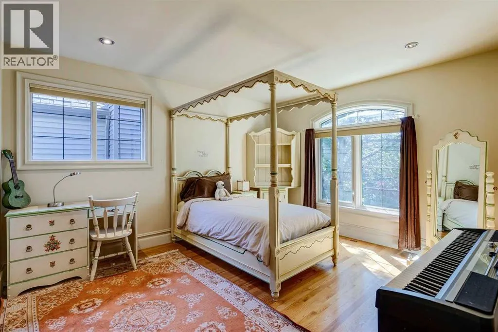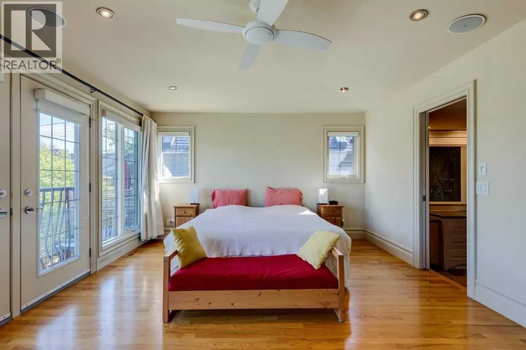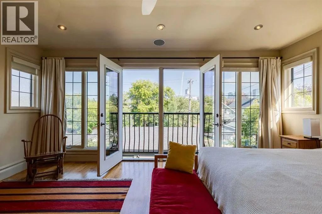 Minutes from KENSINGTON! This lovely 4 bedroom and 4.5 bathroom home with almost 3,600 sq. ft. of total living space on 4 levels is located on a 30 FT WIDE LOT, on a charming tree-lined street in one of the most desirable KENSINGTON neighborhoods: HILLHURST. The main and upper floors feature Brazilian cherry HARDWOOD throughout, and the installed SOLAR system helps you reduce energy costs. On the main floor youâll find a cozy living room with fireplace. The family-oriented kitchen, with fireplace, offers a great space to live, love and enjoy family. The classic kitchen meets all the family needs: an island, breakfast bar, two pantries, gas range and Corian countertops. The 2pc bathroom completes this level. An impressive spiral staircase brings you to the other floors. The second floor features the primary bedroom, a retreat style area with fireplace, 5pc spa-like ensuite bathroom with IN-FLOOR heating, a steam shower, large walk-in closet and a Romeo & Juliet balcony. The 2nd bedroom on this floor also offers ample room and comes with a 4pc (cheater) ensuite. The laundry room with sink and folding table completes this level. On the 3rd floor is another great space suitable for many uses. It is currently a bedroom, but make it a work and study room, an atelier for painting, a quiet area for reading; it is all possible. This level is equipped with a 3pc bathroom and ductless mini-split air conditioner. The fully developed basement with IN-FLOOR heating adds another 1,000 sq. ft. and includes a 4th bedroom, a 4pc ensuite and a huge living area currently used as family, media and rec room in one. Several large windows offer natural light in the basement. This property has an amazing outdoor space; not only is there an appealing front yard, but at the back youâll find lawn, a patio, fruit trees and 5 large planter boxes. To finish, this great inner-city home, comes on a 30 ft wide lot and offers a double, oversized and drywalled garage. The location speaks for itself, r ated with one of the highest walking and biking scores in Calgary. And it is just steps from the entertainment district of Kensington and across from Riley Park. One can easily walk to the Kensington C-Train station and the Bow River Pathway and many schools. Both SAIT and Downtown are also within walking distances. And by car, there is quick access to 16 Avenue N, Crowchild Trail and Deerfoot Trail. (id:27476)