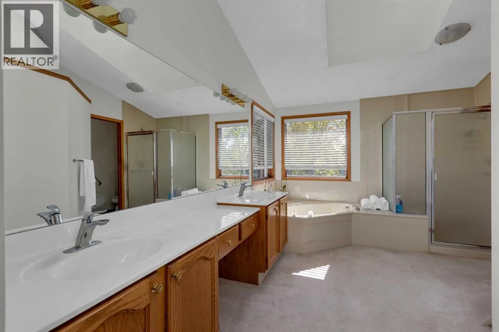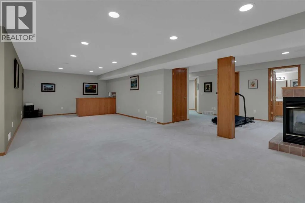 REVISED PRICE - WHAT A GREAT DEAL - Welcome to 271 Mountain Park Drive â the original Cardel Showhome âSummitâ model! Boasting over 3,400 sq. ft. of beautifully developed living space, this 5-bedroom, 3.5-bathroom home combines pride of ownership with an unbeatable location backing onto green space, complete with mountain views and lake access. The floor plan immediately impresses with gleaming hardwood featuring designer inlay, a spacious foyer, and a dramatic circular staircase beneath soaring open-to-above ceilings. French doors open to the front den, showcasing custom built-in cabinetry and two-storey windows that flood the space with natural light. A formal dining room flows into the open-concept kitchen, which includes a breakfast nook with access to the upgraded back deck and expansive backyardâperfect for family living and endless possibilities. The living room is anchored by a cozy gas fireplace and custom built-ins, while a separate laundry room and stylish powder room complete this level. Upstairs, the elegant curved staircase leads to a king-sized primary retreat with a sitting area, stunning views across the greenspace and pathways, a luxurious custom ensuite, and a spacious walk-in wardrobe. Three additional bedroomsâtwo with mountain viewsâplus a full bathroom provide ample room for family and guests. The fully finished basement extends the living space with a fifth bedroom, full bathroom, recreation/family room featuring a three-way fireplace, and a bar areaâperfect for entertaining. This exceptional home is elevated further by its location in a family-focused community with access to excellent schools, McKenzie Meadows Golf Course, ridge pathways overlooking ravines, and the nearby beauty of Fish Creek Park and the Bow River. Quick access to Deerfoot and Stoney Trail ensures easy connectivity across the city. (id:27476)