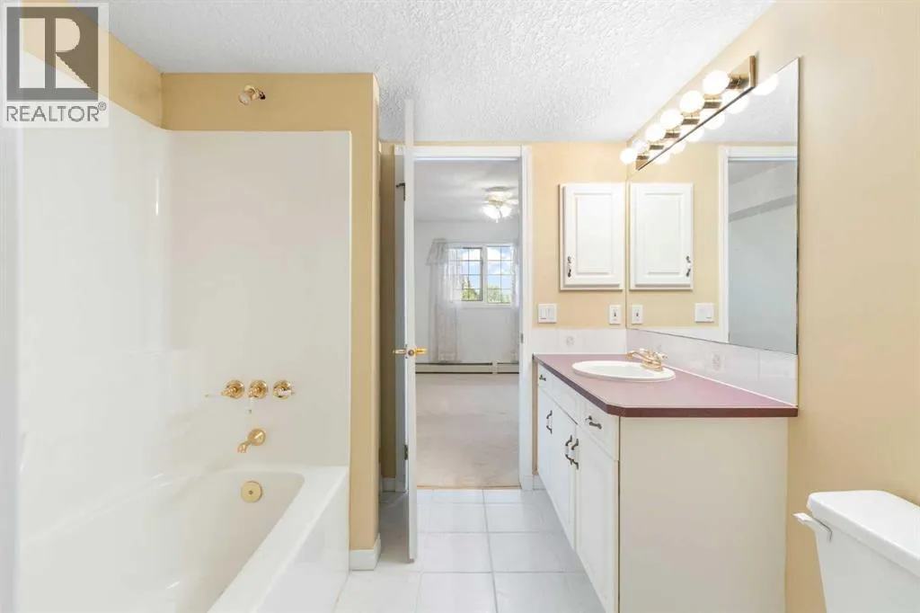 Welcome to Sierras West I in Signal Hill, a highly sought-after 40+ adult community where comfort and lifestyle come together. This beautifully maintained 1,013 sq. ft. top-floor condo features knockdown vaulted ceilings, abundant natural light, and a thoughtfully designed layout with 2 bedrooms, 2 bathrooms, and a bright south-facing enclosed sunroom for year-round enjoyment. A spacious foyer with a double mirrored closet leads into the heart of the home. The kitchen offers a ceramic tile backsplash, white appliances, a pantry, and plenty of cabinetry, opening seamlessly to the dining area and a large living room with a cozy corner gas fireplace. The primary suite is generously sized with a walk-in closet, a 4-piece ensuite, and soft carpet flooring. The second bedroom with laminate flooring works well as either a guest room or home office. A laundry room with built-in shelving and a 3-piece bathroom complete the floor plan. Additional features include air conditioning in livingroom, TWO underground parking stalls, and TWO storage lockers. Condo fees conveniently cover all utilities. Sierras West I offers outstanding amenities including an indoor pool and hot tub, fitness centre, billiards, woodworking shop, party rooms, a car wash bay, and guest suites. Residents also enjoy a welcoming sense of community while staying close to everything, from Westhills Shopping Centre and Cineplex Cinemas to restaurants, parks, walking paths, and Griffith Woods Park. This is a rare opportunity to own a bright and spacious home in one of Signal Hillâs most desirable communities. (id:27476)