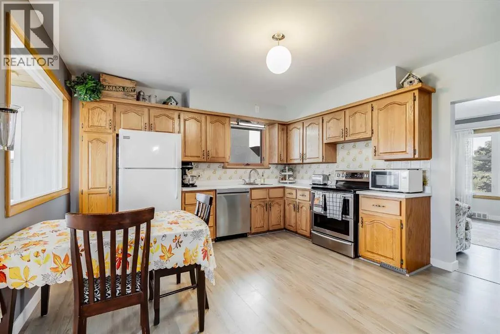Nestled in the sought-after inner city community of Renfrew, this charming 1950âs raised bungalow sits proudly on a spacious 50x120 ft lot, and offers endless possibilities for urban living. Boasting over 1,300 sq ft the main floor features a bright, inviting layout with well-proportioned rooms, attractive newer LVP flooring and new tile in the main bath. This home has seen a number of thoughtful upgrades, enhancing both its comfort and appeal. The kitchen was renovated, offering a contemporary space for culinary pursuits and entertaining guests. The fully developed lower level offering over 1100 sq.ft. provides versatile living space for extended family, guest quarters, or home office. Large windows in the lower level flood the rooms with natural light, creating a bright and welcoming atmosphere. The lower bathroom has also been stylishly updated, while six new windows (installed in 2016âfour upstairs and two downstairs) contribute to improved aesthetics and energy efficiency at the front of the home. Fresh interior paint throughout, completed in 2023, delivers a crisp, move-in ready feel. Mechanical updates include a high-efficiency furnace added in 2019 to reduce energy costs, a new water heater installed in 2022 for reliable hot water, and shingles replaced in 2016 to ensure lasting protection and peace of mind. Outside, you'll enjoy a large rear yard with hot tub and appreciate a double garage along with additional RV parking. The location of this property is truly convenient, with two schools directly out the back door and a junior high and high school just blocks awayâperfect for families with children of all ages. Excellent access to major transit routes, city transit, bike paths, and walkways makes commuting effortless, whether by car, public transport, or bicycle. Downtown is just a short commute or bike ride away, placing the heart of the city and its amenities within easy reach. Whether you're drawn to the timeless design or the unbeatable location, t his property is a rare find in a beautiful inner city location. (id:27476)