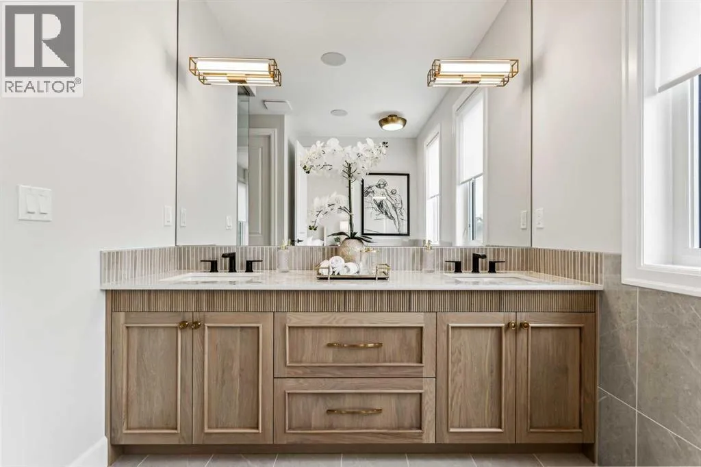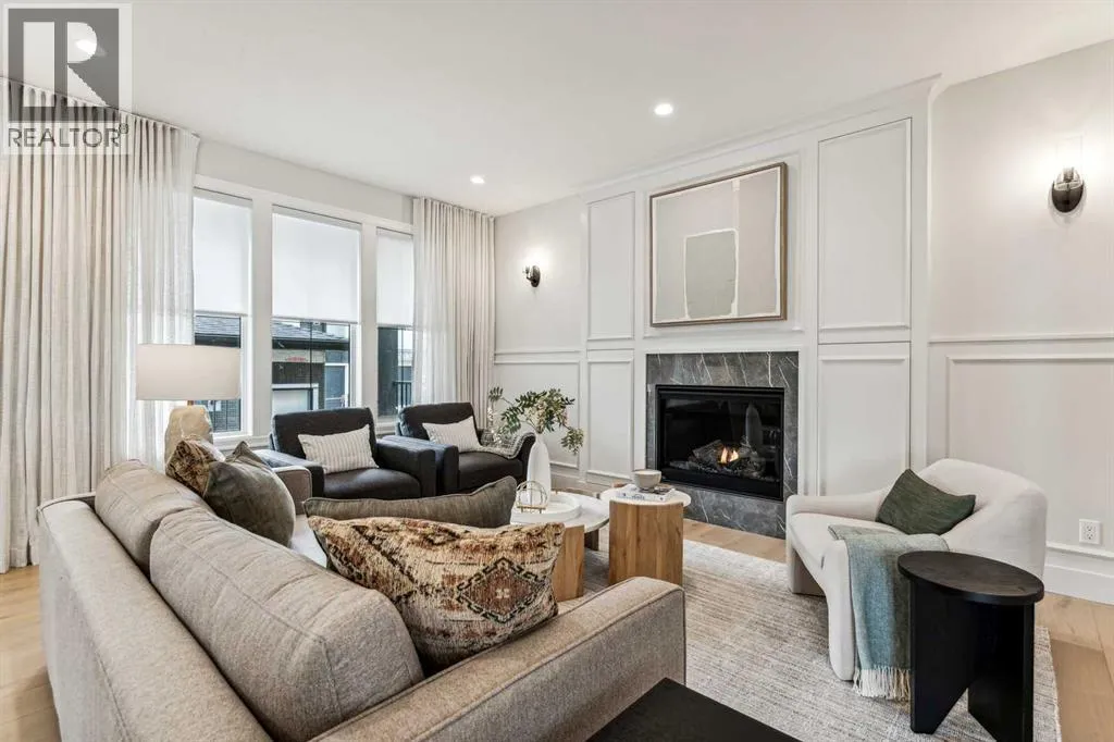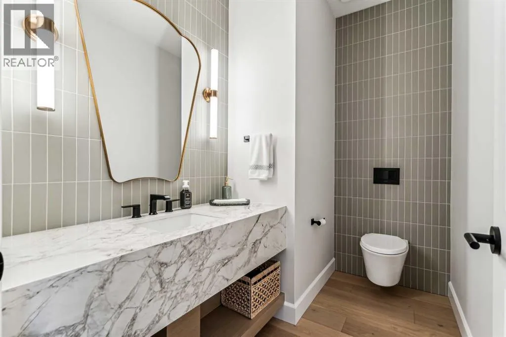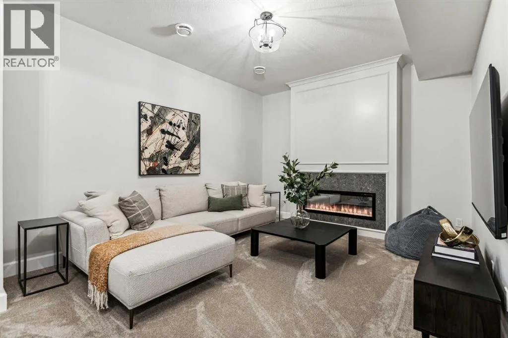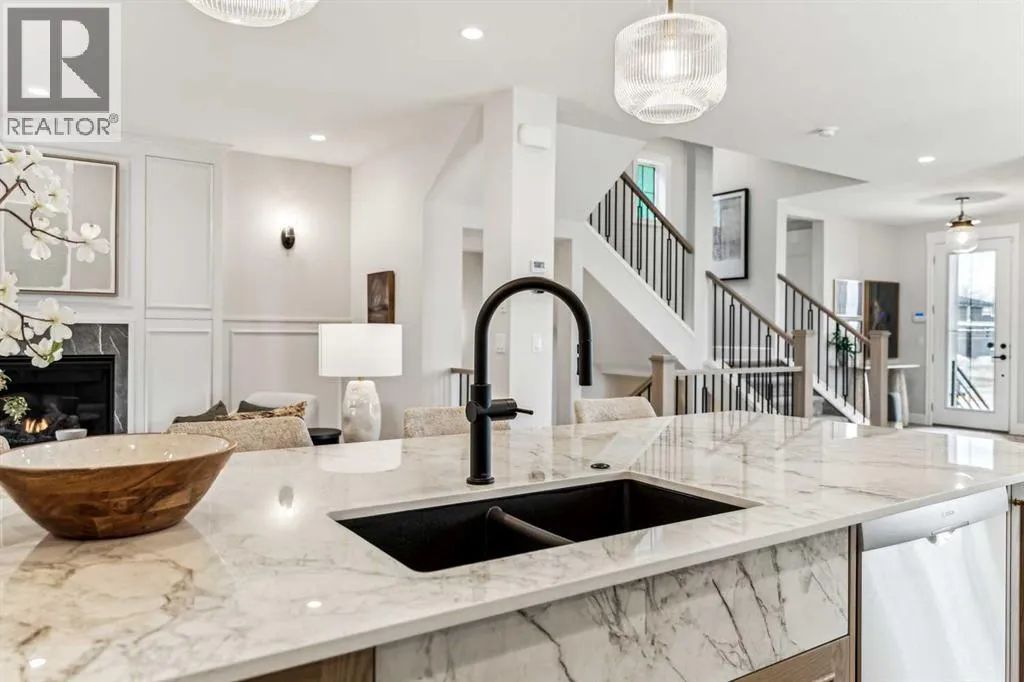 Welcome to this exquisitely crafted showhome by Homes By Us, where timeless design meets modern luxury. Located in the highly sought-after community of Currie Barracks, this home presents a rare opportunity to invest in both elevated living with a whole extra level which is ideal for multigenerational living, office space, or a private guest retreat. Inside, every detail has been thoughtfully curated. The gourmet kitchen is a chefâs dream, anchored by striking Dekton countertops and full-height backsplash, combining refined aesthetics with superior durability. The powder room exudes contemporary elegance with a bold apron sink and wall-mounted toilet, creating a sleek, minimalist look. Full height glass walls accent the den on the main floor as well as the fitness space in the basement, allowing natural light to flow while maintaining separation and style. Upstairs, youâll find three generous sized bedrooms, including a sophisticated primary suite designed for relaxation and function. The fully developed basement expands your living options with an additional bedroomâperfect for guests or a home office. This home is complete with full landscaping and fencing, offering a private outdoor space without maintenance. Enjoy more time living in this vibrant area by stepping outside your door and into one of Calgaryâs most walkable, park-filled communities. Whether itâs a stroll through nearby green spaces, a visit to local cafés, or a quick commute downtown, Currie offers urban living at its finest. This is more than just a homeâitâs a lifestyle investment, combining architectural excellence, and everyday ease. Donât miss your chance to make it yours! Please note this is a showhome, with regular showhome hours. Come by and visit Monday-Thursday 2PM-8PM or Sat/Sun Noon-5PM- Seller would consider taking trades. (id:27476)