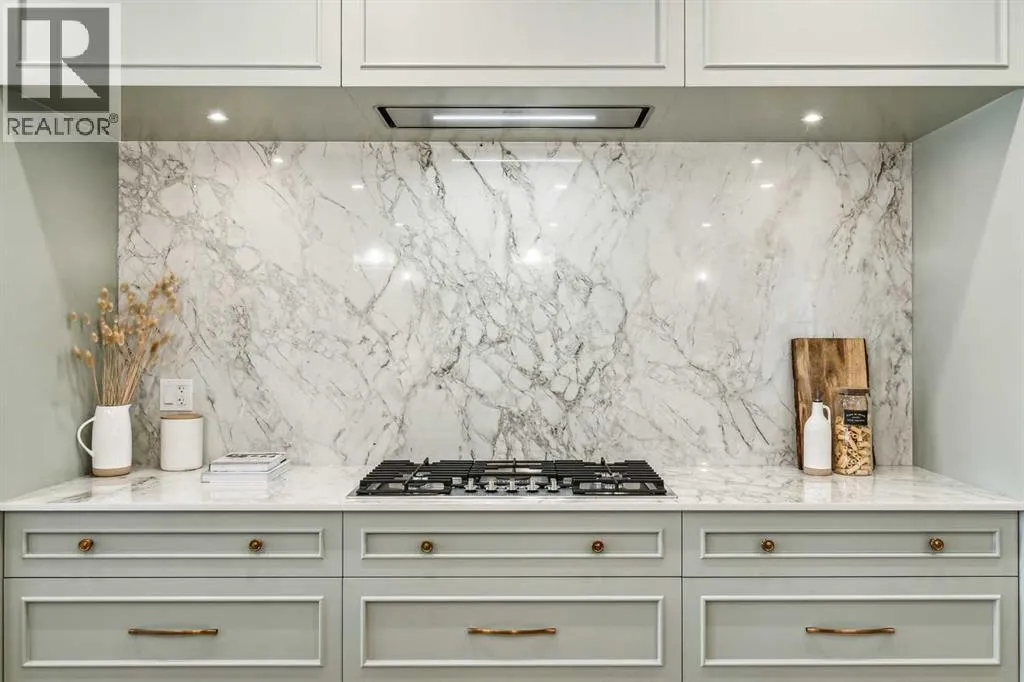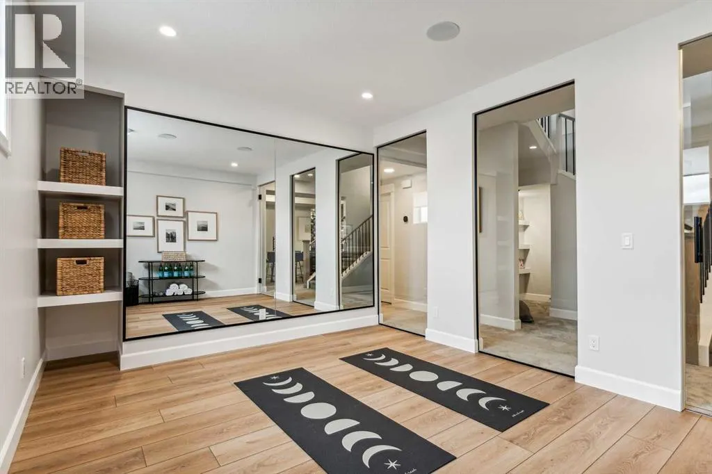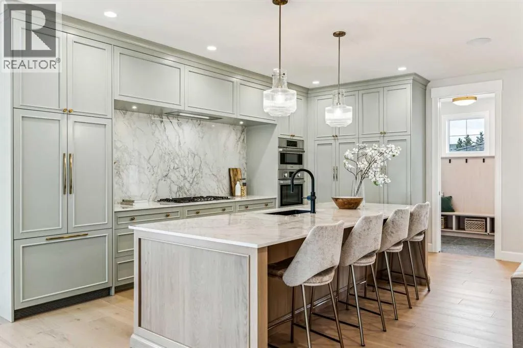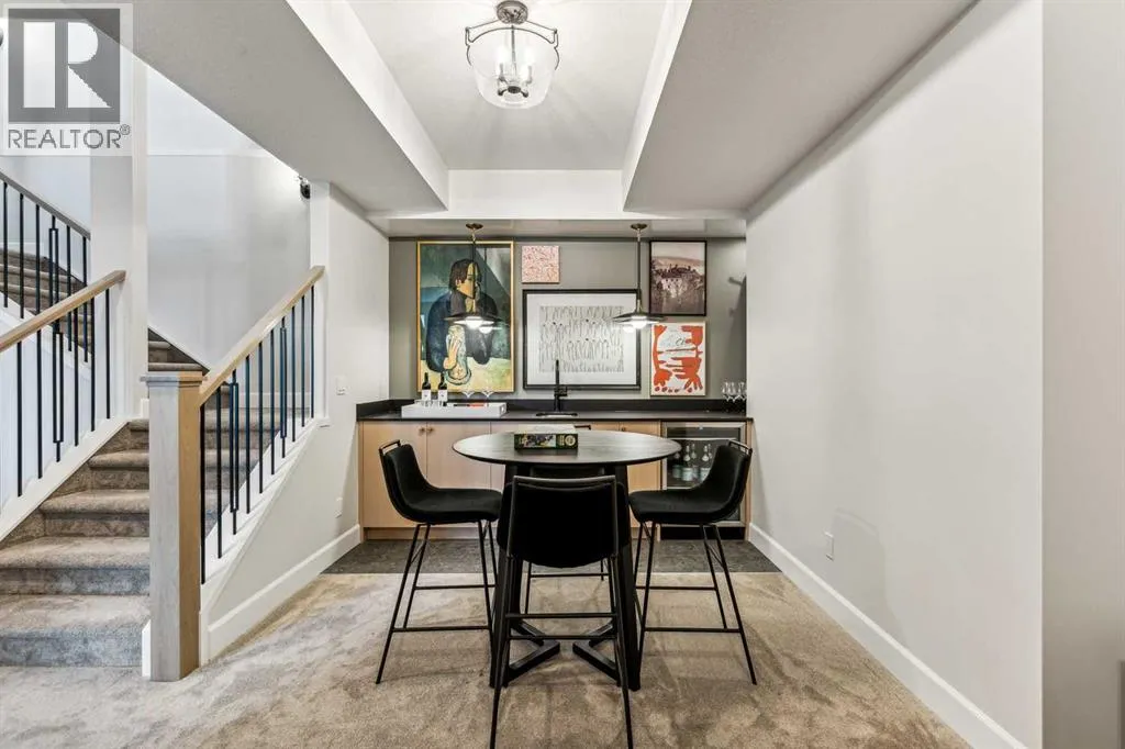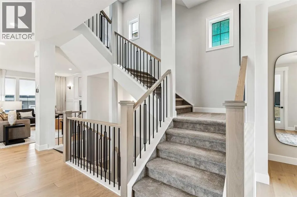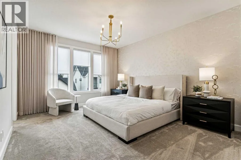 Welcome to this exquisitely crafted showhome by Homes By Us, where timeless design meets modern luxury. Located in the highly sought-after community of Currie Barracks, this home presents a rare opportunity to invest in both elevated living with a whole extra level which is ideal for multigenerational living, office space, or a private guest retreat. Inside, every detail has been thoughtfully curated. The gourmet kitchen is a chefâs dream, anchored by striking Dekton countertops and full-height backsplash, combining refined aesthetics with superior durability. The powder room exudes contemporary elegance with a bold apron sink and wall-mounted toilet, creating a sleek, minimalist look. Full height glass walls accent the den on the main floor as well as the fitness space in the basement, allowing natural light to flow while maintaining separation and style. Upstairs, youâll find three generous sized bedrooms, including a sophisticated primary suite designed for relaxation and function. The fully developed basement expands your living options with an additional bedroomâperfect for guests or a home office. This home is complete with full landscaping and fencing, offering a private outdoor space without maintenance. Enjoy more time living in this vibrant area by stepping outside your door and into one of Calgaryâs most walkable, park-filled communities. Whether itâs a stroll through nearby green spaces, a visit to local cafés, or a quick commute downtown, Currie offers urban living at its finest. This is more than just a homeâitâs a lifestyle investment, combining architectural excellence, and everyday ease. Donât miss your chance to make it yours! Please note this is a showhome, with regular showhome hours. Come by and visit Monday-Thursday 2PM-8PM or Sat/Sun Noon-5PM- Seller would consider taking trades. (id:27476)
