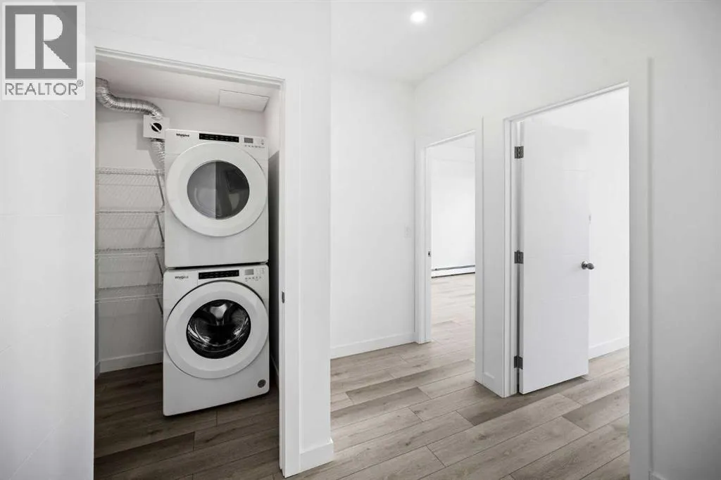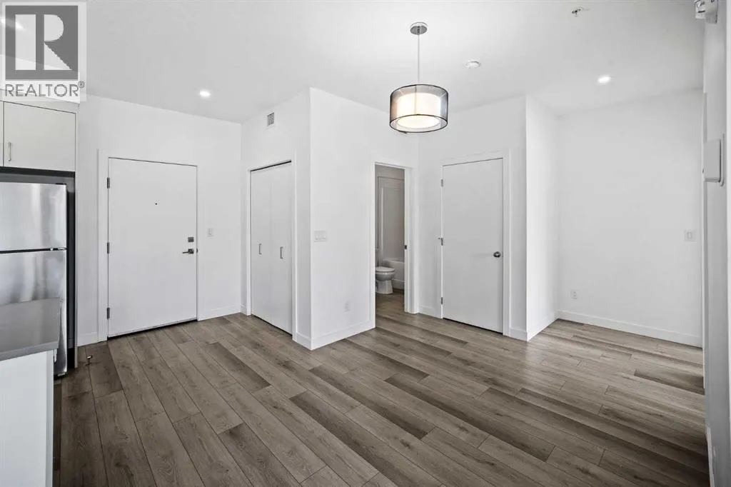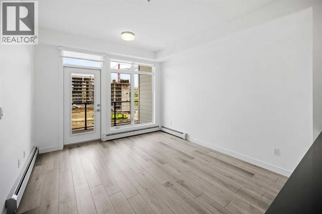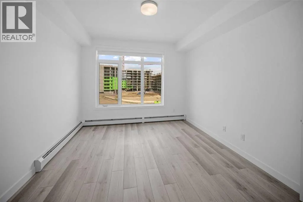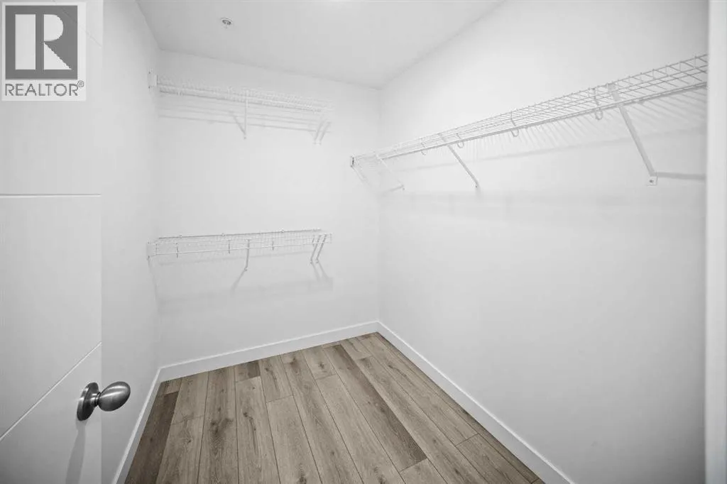 Welcome to this new upscale build in Springbank Hill! Immediate Possession! This very bright and open-concept 2 bedroom, 2 bath unit on the TOP FLOOR offers affordable luxury and convenient living near the Aspen Landing Shopping Centre, the new Aspen Village (being built) plus miles of walking paths and environmental reserves. Open floor plan features a peninsula kitchen with eating bar, high-quality cabinets, soft-close doors, under-mounted double sink, & Whirlpool stainless steel appliances. Full, private ensuite with double sinks off the main bedroom and a huge walk-in closet. Second bedroom with large window and easy access to second full bath and stacked washer/dryer with storage. Thoughtfully designed with expansive double pane windows, 9ft ceiling, warm coloured luxury vinyl plank flooring throughout, a spacious living /dining room, and bright windows and glass door to the balcony with BBQ gas line. The Orion Condos are bordered by a serene natural reserve with abundant walking trails and bike paths that connect throughout this vibrant and sought-after community. It comes with a titled underground parking stall with over-sized storage locker. Amenity room available. Amenities within walking distance include Safeway, Blush Lane, Royal Bank, TD, Starbucks, Cob's bread, Original Joeâs restaurant, Lady Bug Cafe and many more! Close to the 69 Street C-Train, Westside Rec Centre plus easy access downtown and to the mountains! Pets allowed. Fees include heat, water etc. (id:27476)